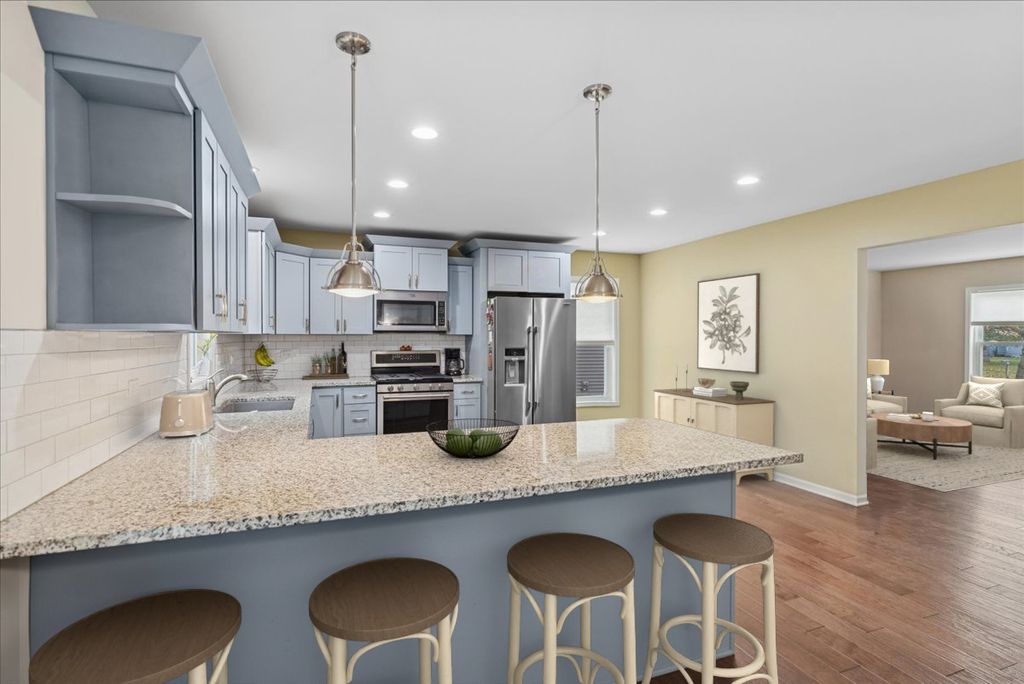 Absolutely gorgeous 3BD/3.1BTH home that has been COMPLETELY rebuilt in 2017 with incredible craftsmanship! The house has been thoughtfully updated and tediously maintained offering SO much value! Fully fenced, private yard with large deck (2020) provides area to watch the sunrise & enjoy the outdoors, surrounded by mature trees & gardens! As you approach this house, you are welcomed by the charming front porch! Bright, open floor plan, neutrally painted and hardwood floors throughout. 2 spacious living spaces: a formal living room & oversized family room featuring vaulted ceiling & wood burning stove. You will love to cook in the upgraded kitchen w/ peninsula/breakfast bar, granite counters, soft close cabinets, SS appliances & eat-in area. The kitchen flows right into the dining area, perfect for entertaining and with sliding doors to the backyard. Powder room on the main level. Unwind in the primary bedroom with a WIC & full en-suite bathroom. 2nd level also features 2 additional bedrooms & full bathroom. The basement is partially finished with huge rec room, full bathroom and laundry/mechanical room with great storage. 2.5 car attached, heated garage and shed to store all of your toys. Newer HVAC/AC w/ Humidifier (2021), Hot water heater (2023), & house also has 2 sump pumps and a Kinetico water softener. Easy access to IL23 & IL176. Minutes from historic downtown Marengo! Seller move out is flexible: can close quickly or longer term!
