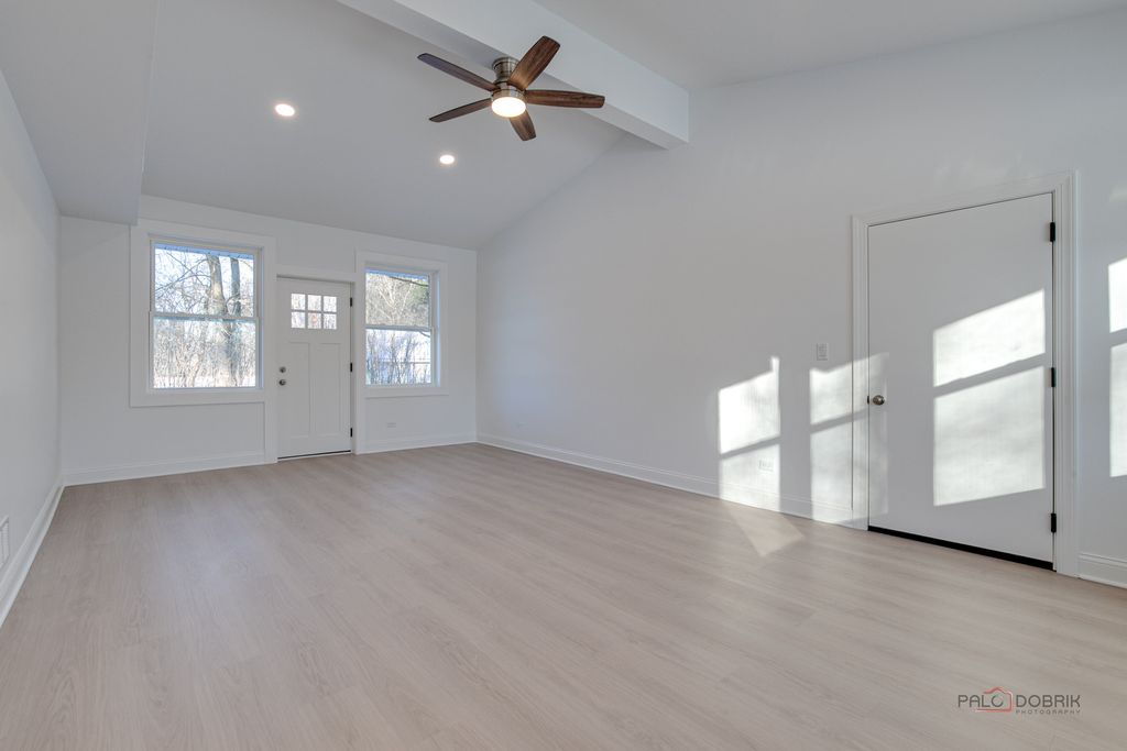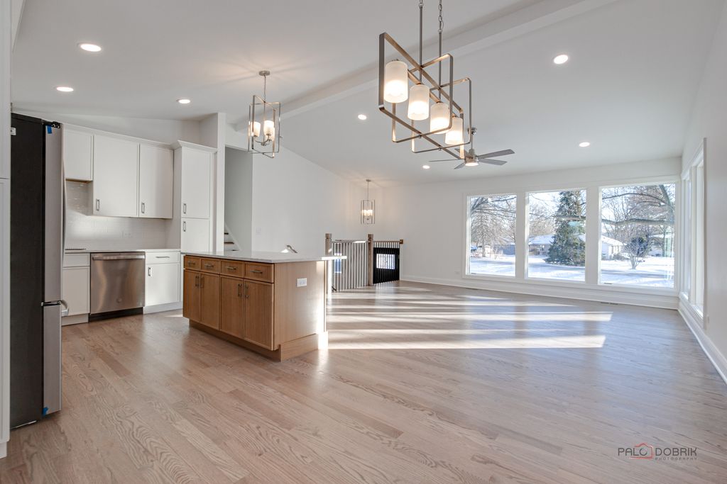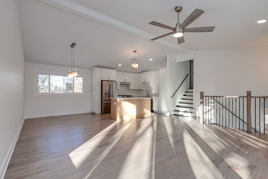 Extensively updated from top to bottom, this stunning tri-level home sits on a sprawling .91-acre lot and is truly move-in ready. Top-rated Oak Grove Schools! Low Green Oaks taxes! Enjoy true worry-free living with nearly every major system already replaced in 2025. This comprehensive renovation includes brand-new windows and exterior doors with new window capping; a new furnace, A/C, and all-new ductwork; new 200-AMP electrical panel, meter, and mast; new light fixtures, outlets, and switches; all new water supply lines; new well pump, water softener, and water heater; septic pipe to the home replaced with a new exterior clean-out; new plumbing fixtures; new tub and shower base; a new asphalt driveway and sidewalk; new garage door; completed masonry tuck-pointing; and brand-new insulation in the crawl space, attic, and vaulted ceilings-with the roof estimated new in 2023. Head into the foyer and head upstairs to a bright, open-concept vaulted main living area where the living room flows seamlessly into the dining area and kitchen with the redesigned layout. The kitchen features quartz countertops, a chic subway tile backsplash, Studio 41 white 42" cabinetry with elegant crown molding, and brand-new GE stainless steel appliances-perfect for entertaining and everyday living. The upper level offers three generously sized bedrooms with ample closet space and a beautifully updated full bath with a dual-sink vanity. The main level includes a cozy family room, second full bath, a versatile bonus room ideal for a home office, and a convenient laundry closet. This level also provides access to the finished, heated sunroom, creating additional year-round living space. Additional highlights include new hardwood flooring on the 2nd and 3rd levels, luxury vinyl flooring on the main level, freshly painted interiors in today's most sought-after color palette, new interior doors, baseboards, trim, and shoe molding, a two-car attached garage, a huge storage shed, and an expansive backyard with endless possibilities. Ideally located just minutes from Independence Grove, offering walking and biking trails, a large park, and a scenic lake for canoeing, fishing, and paddle boating. A rare opportunity to own a fully rehabbed 3-bedroom, 2-bath tri-level home on nearly an acre in a highly desirable location.