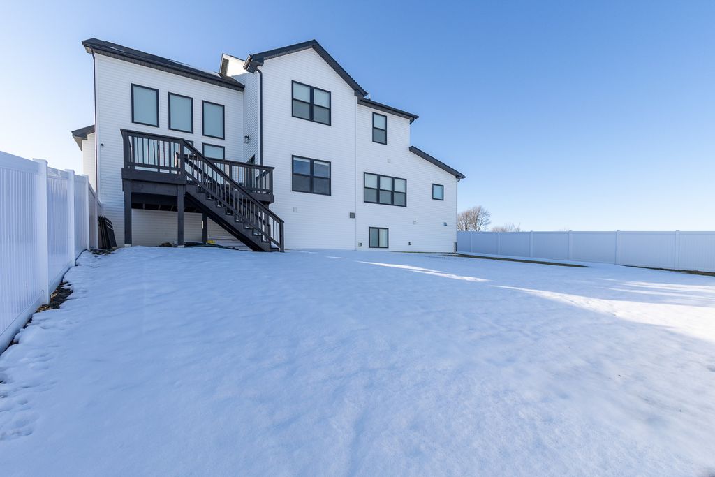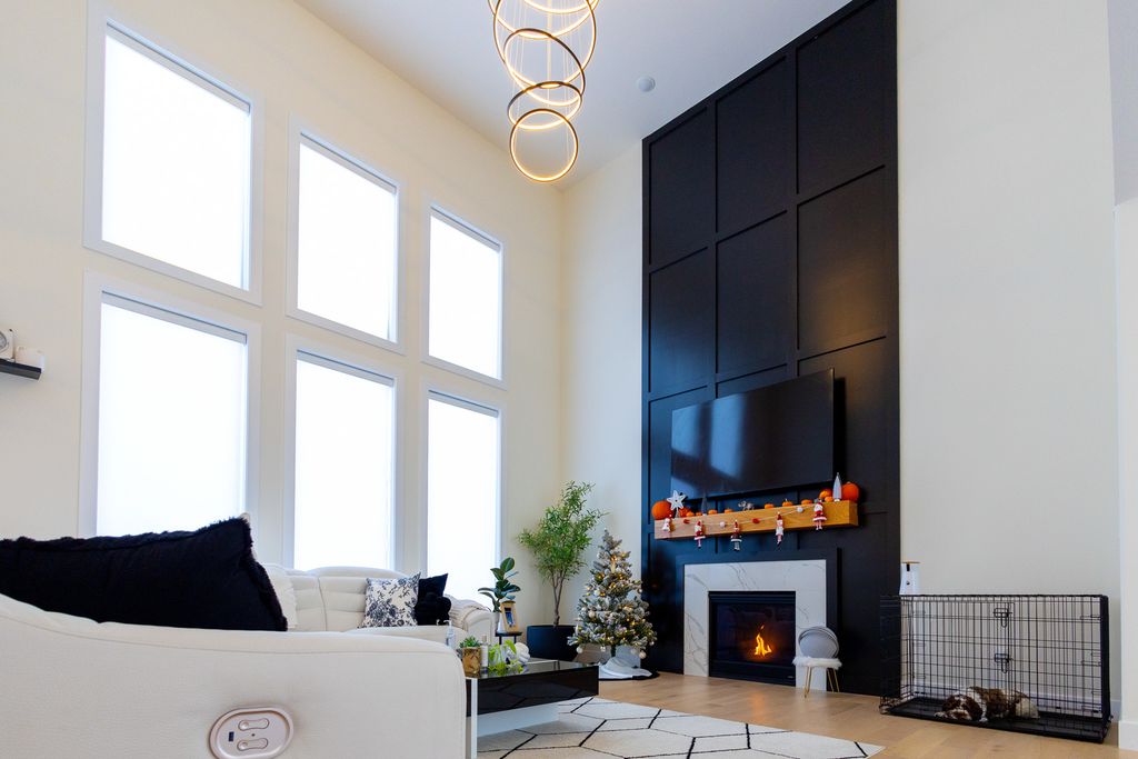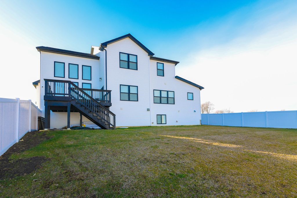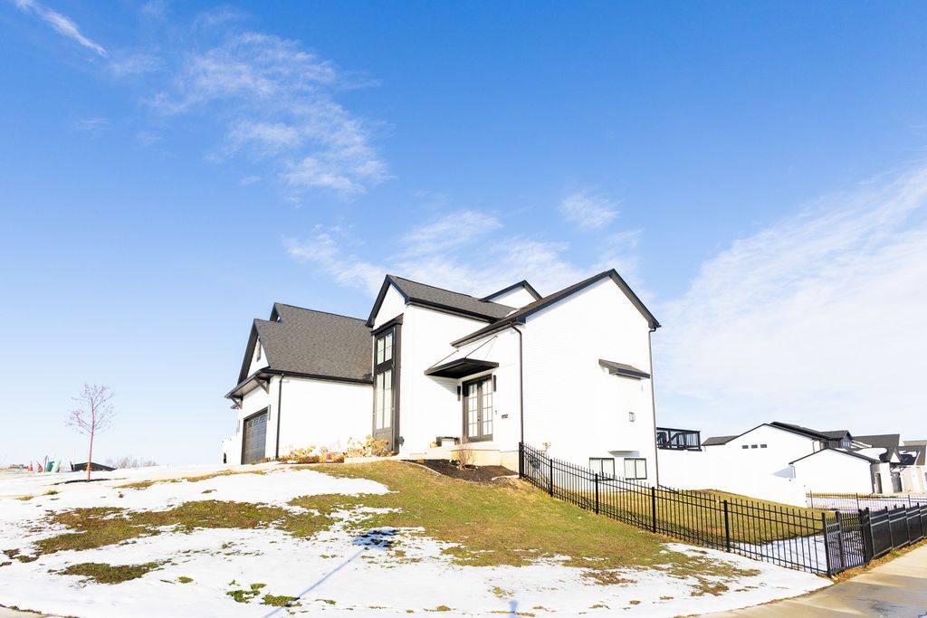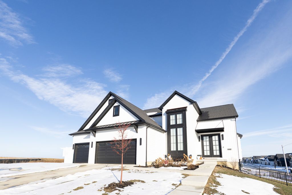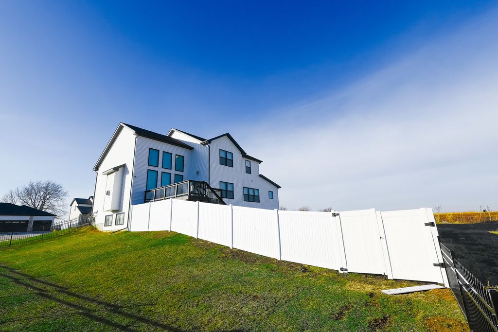 Refined newer construction on a premium elevated corner lot, featuring a striking brick facade, 8-ft front entry door, black exterior windows, and a bright white interior with dramatic 18-ft ceilings in the entry and great room. White oak hardwood floors and custom, modern lighting throughout create a true model-home feel. The chef's kitchen offers white cabinetry, a white oak island with seating, quartz countertops, designer backsplash, stainless steel appliances, and a walk-in pantry. The main-floor primary suite includes a spa-inspired bath with tiled shower, freestanding tub, dual vanity, and walk-in closet. Upper level features a loft, three spacious bedrooms, and a full bath, while the finished lower level adds a large family room, bedroom, full bath, and ample storage. Over $35K in owner upgrades, including custom blinds and premium fencing (vinyl privacy plus side grill fence). Lightly lived in for less than two years, situated on a 0.28-acre lot with deck, full sod, and professional landscaping. Rebuilding today on a lot of this caliber would cost significantly more.