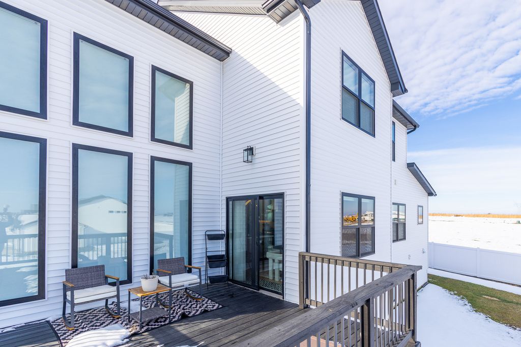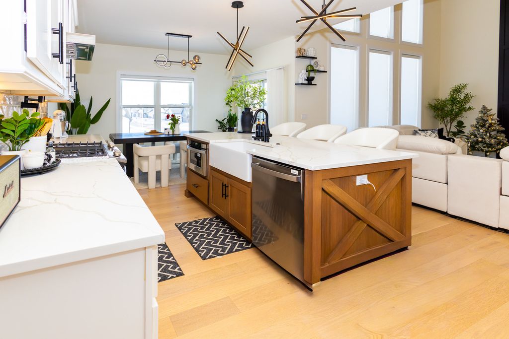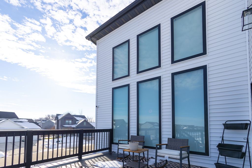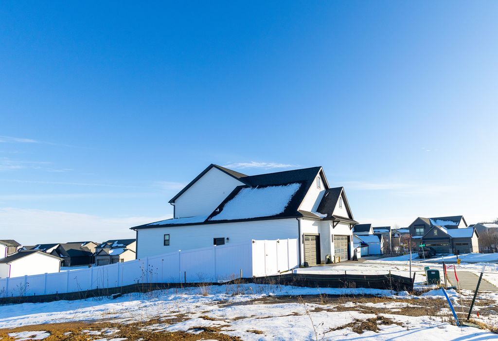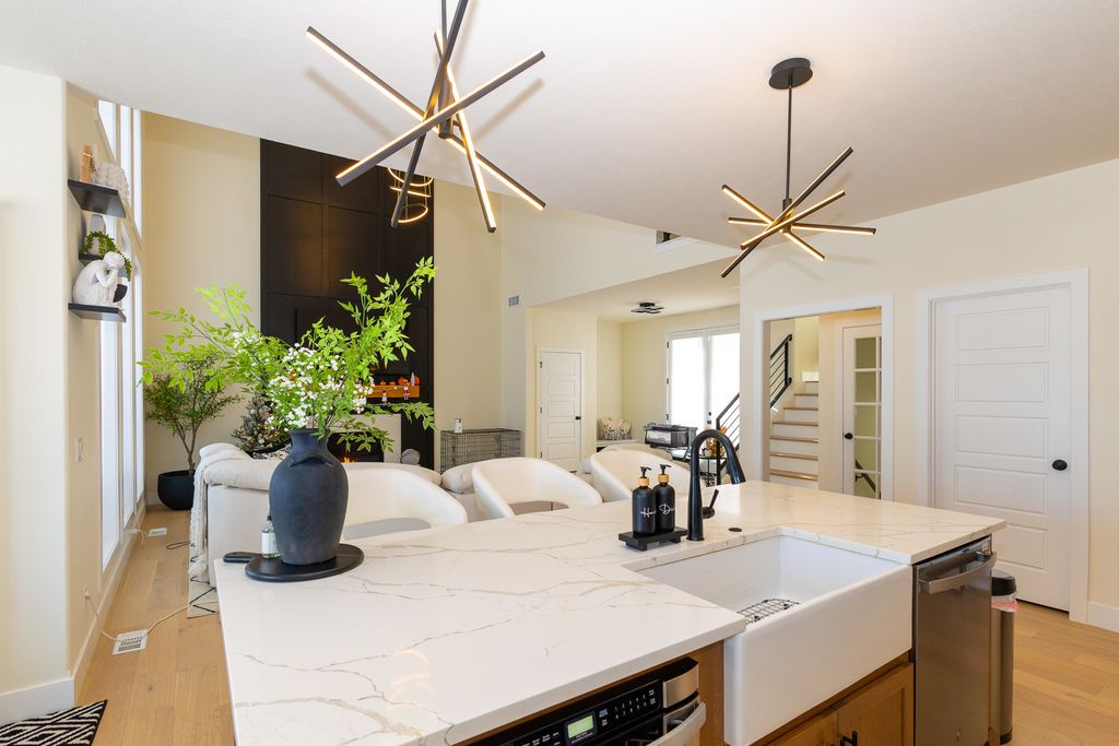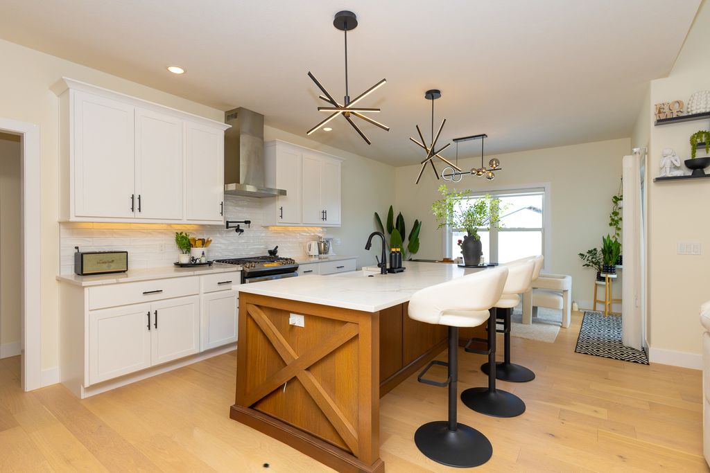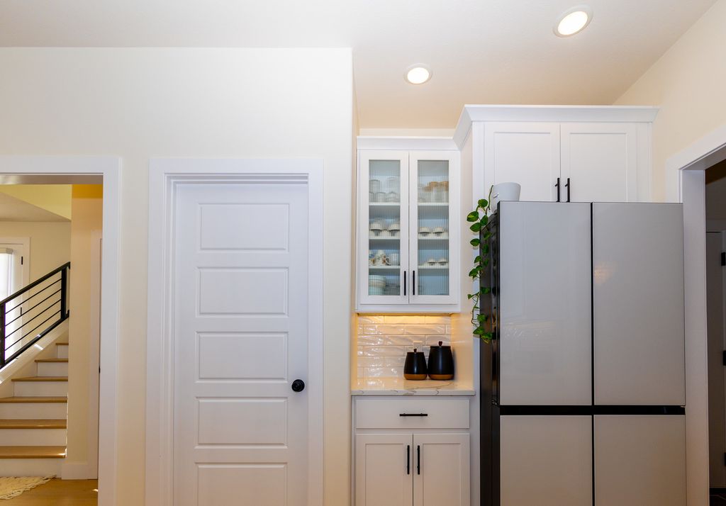 Refined newer construction on a premium elevated corner lot, featuring a striking brick facade, 8-ft front entry door, black exterior windows, and a bright white interior with dramatic 18-ft ceilings in the entry and great room. White oak hardwood floors and custom, modern lighting throughout create a true model-home feel. The chef's kitchen offers white cabinetry, a white oak island with seating, quartz countertops, designer backsplash, stainless steel appliances, and a walk-in pantry. The main-floor primary suite includes a spa-inspired bath with tiled shower, freestanding tub, dual vanity, and walk-in closet. Upper level features a loft, three spacious bedrooms, and a full bath, while the finished lower level adds a large family room, bedroom, full bath, and ample storage. Over $35K in owner upgrades, including custom blinds and premium fencing (vinyl privacy plus side grill fence). Lightly lived in for less than two years, situated on a 0.28-acre lot with deck, full sod, and professional landscaping. Rebuilding today on a lot of this caliber would cost significantly more.