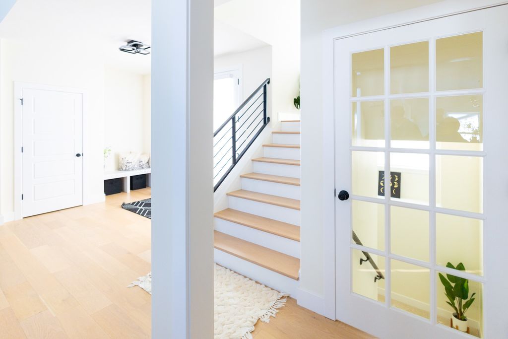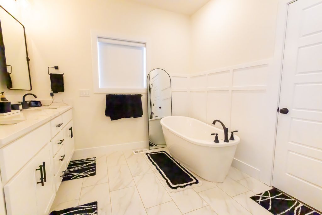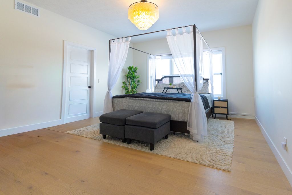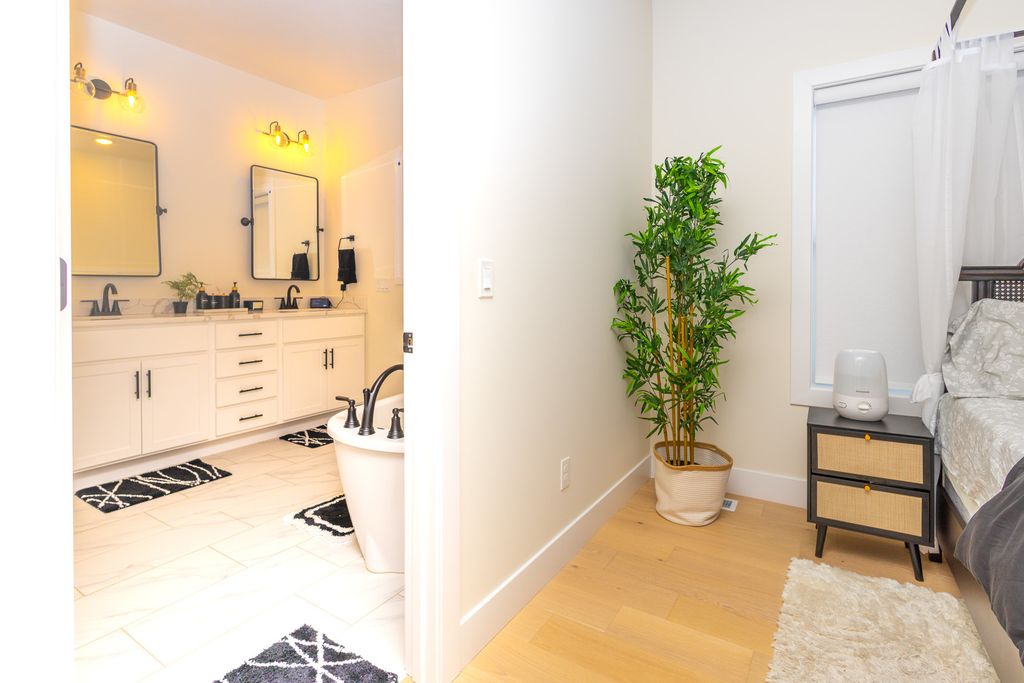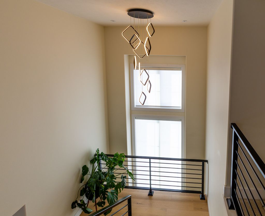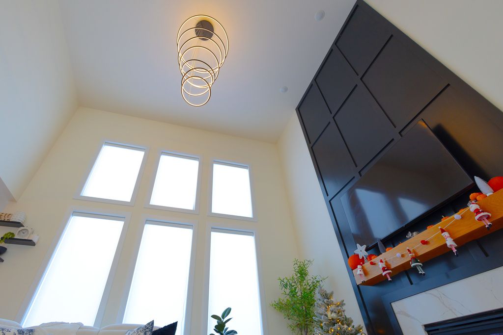 Refined newer construction on a premium elevated corner lot, featuring a striking brick facade, 8-ft front entry door, black exterior windows, and a bright white interior with dramatic 18-ft ceilings in the entry and great room. White oak hardwood floors and custom, modern lighting throughout create a true model-home feel. The chef's kitchen offers white cabinetry, a white oak island with seating, quartz countertops, designer backsplash, stainless steel appliances, and a walk-in pantry. The main-floor primary suite includes a spa-inspired bath with tiled shower, freestanding tub, dual vanity, and walk-in closet. Upper level features a loft, three spacious bedrooms, and a full bath, while the finished lower level adds a large family room, bedroom, full bath, and ample storage. Over $35K in owner upgrades, including custom blinds and premium fencing (vinyl privacy plus side grill fence). Lightly lived in for less than two years, situated on a 0.28-acre lot with deck, full sod, and professional landscaping. Rebuilding today on a lot of this caliber would cost significantly more.