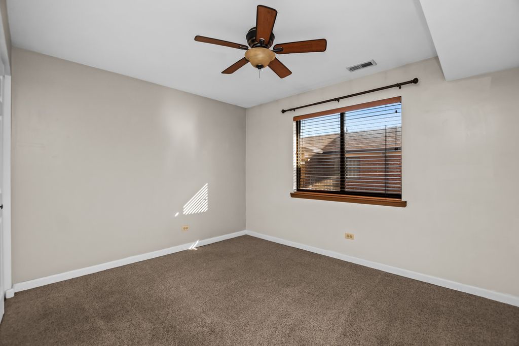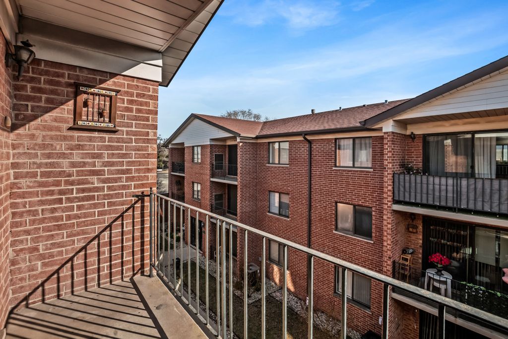 Bright and generously sized 2-bedroom, 2-bath top-floor residence showcasing vaulted ceilings in the main living area and a private balcony with tranquil courtyard views! This home offers a seamless living and dining layout accented by an abundance of natural sunlight and striking custom built-in cabinetry-ideal for hosting or relaxing in style. The kitchen is thoughtfully designed with plenty of cabinet space, stainless steel appliances, granite countertops with tile backsplash, a dedicated coffee nook, and a convenient breakfast bar. The primary suite provides a large walk-in closet and a beautifully finished primary bathroom featuring a walk-in shower and skylight that fills the space with natural light. The second bedroom is well proportioned, and the adjacent full bath includes a modern vanity with white quartz countertop and a soaking tub. Additional storage is conveniently located just outside the unit, with a separate secured storage closet and laundry room available in the basement common area. One assigned parking space (#30) is included and located just steps from the front entrance. Ideally situated near parks, public transit, expressways, O'Hare airport, and a wide array of shopping and dining options.