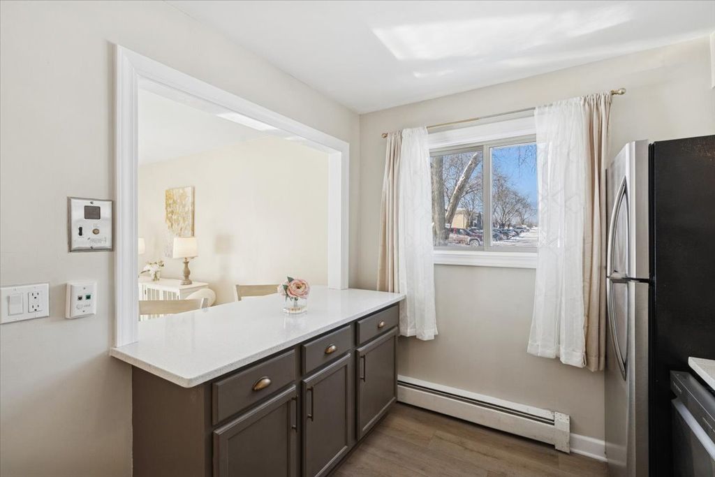 Welcome to 501 Carlysle Drive, Unit 7, a first-floor condo oasis nestled in the charming village of Clarendon Hills. This newly updated one-bedroom, one-bathroom residence offers a harmonious blend of comfort and style, designed to delight the senses and provide the ultimate in convenience and luxury. As you step through the front door, you are greeted by the warm embrace of luxury vinyl wood-look flooring that sweeps throughout the entire space, offering the beauty of hardwood with the durability to match your lifestyle. The open-concept living area is bathed in natural light, creating an inviting atmosphere that beckons you to unwind or entertain with ease. The heart of the home, the kitchen, is a culinary dream with its sleek Quartz countertops and tiled backsplash, lustrous stainless-steel appliances, and a handy dishwasher that promises to make clean-up a breeze. Every detail has been thoughtfully updated, from the chic new interior doors to the elegant trim and baseboards that frame each room with a modern touch. Retreat to the serenity of the bedroom, a tranquil sanctuary where rest and rejuvenation come naturally. The adjacent bathroom is a masterpiece of modern design, featuring a new tub, gleaming tile walls, a contemporary toilet, and a stylish vanity, creating a spa-like experience in the comfort of your own home. Climate control is whisper-quiet with new wall-mounted AC units that also provide heat when needed, ensuring your comfort year-round. Baseboard heating adds an extra layer of warmth during the cooler months, while the convenience of coin laundry and additional basement storage cater to your practical needs. Step outside to your private patio, a perfect spot to savor your morning coffee or dine al fresco while overlooking the beautifully manicured courtyard. This outdoor haven is an extension of your living space, where the sights and sounds of nature provide a peaceful backdrop to your daily life. The one-car garage offers ample space, complemented by extra storage capacity for essentials. Guest parking is also available, ensuring your visitors are always welcome. Located just moments from shopping, dining, and major highways, this condo offers both the tranquility of suburban living and the convenience of urban accessibility. Whether you're commuting to work or exploring the local boutiques, everything you need is within reach. This is more than just a condo; it's a lifestyle. A place where every detail has been curated for your utmost enjoyment. Welcome home to 501 Carlysle Drive, Unit 7 - where luxury, comfort, and convenience converge.