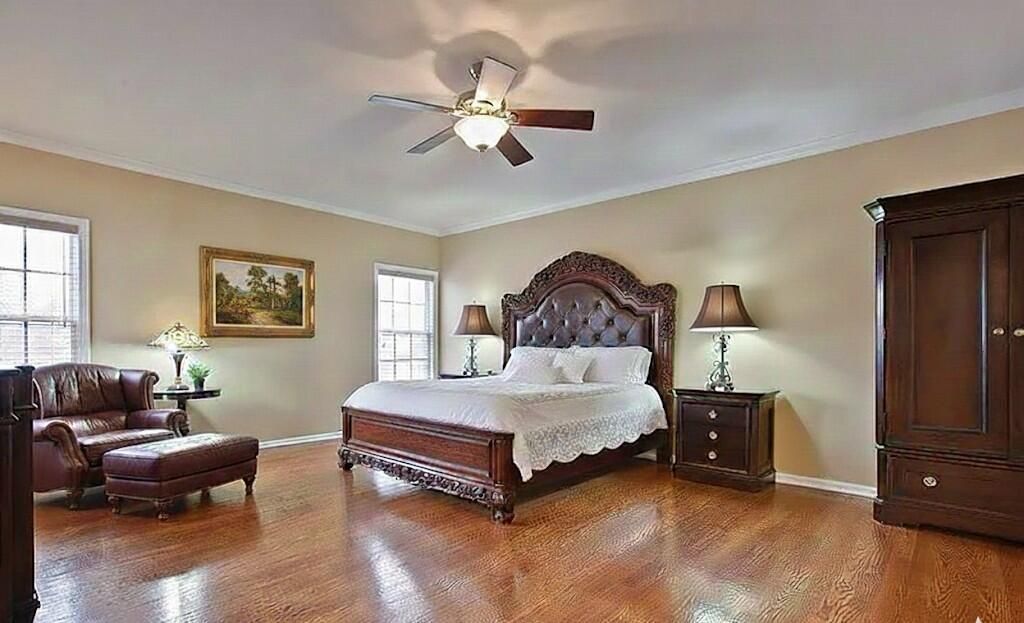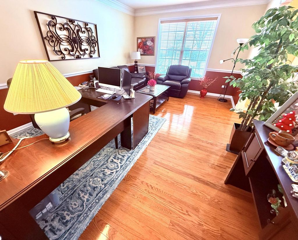 This sophisticated home is anchored by a stunning curved staircase and hardwood flooring that flows seamlessly across two levels, creating a warm and cohesive atmosphere. The thoughtfully designed layout features a kitchen with granite countertops and a striking stacked-stone accent wall. Recent upgrades include a brand-new roof and a new gas-fired water heater. Set on a professionally landscaped lot, the property also features a lawn sprinkler system and access to premium community amenities, including a neighborhood park and scenic pond.