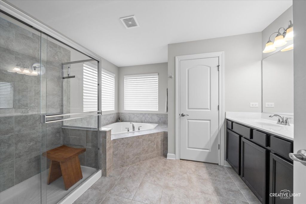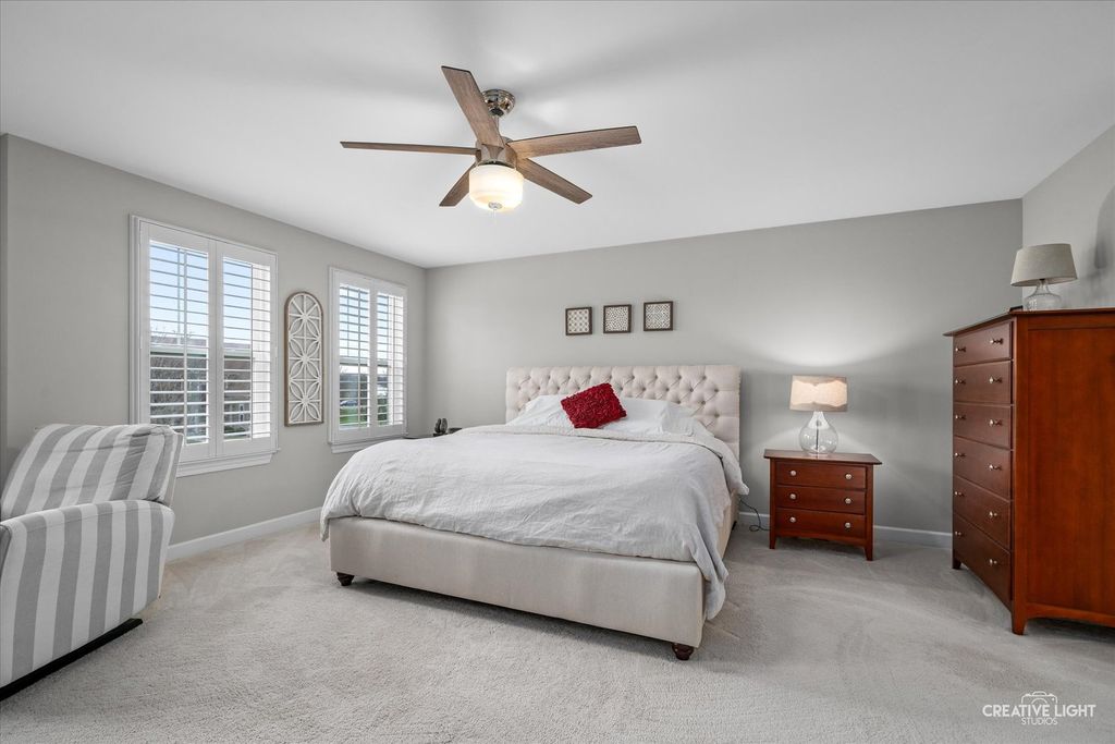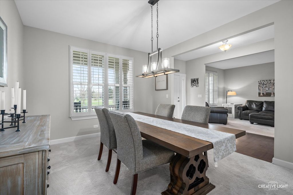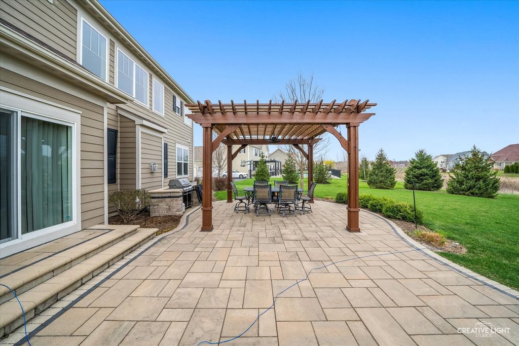 Absolutely gorgeous! Great curb appeal! Situated on a premium level lot backing to a prairie! Extended covered front porch, perfect for summer nights! Hardwood entry! Dramatic 2-story family room with stone gas log fireplace and tons of natural light opens to the gourmet eat-in kitchen with breakfast bar island, pendant lighting, 42" custom cabinetry with crown molding, granite countertops, stainless steel appliances, tile backsplash, pantry closet, extra recessed lighting and large eating area with sliding glass door to the oversized stone patio with pergola! Separate formal dining room excellent for entertaining! Separate flex/living room! Tucked away 1st floor den with great views! Convenient 2nd floor laundry! Large master bedroom with 2 closets and spa bath with dual sink vanity, walk-in shower and separate corner tub! Gracious size secondary bedrooms with #4 the size of a master suite! Huge unfinished basement awaits your finishing touches! Upgraded plantation shutters throughout! Neutral! Great condition! Can not beat this location! Just minutes to shopping and schools! Shows like a model! A 10+!
