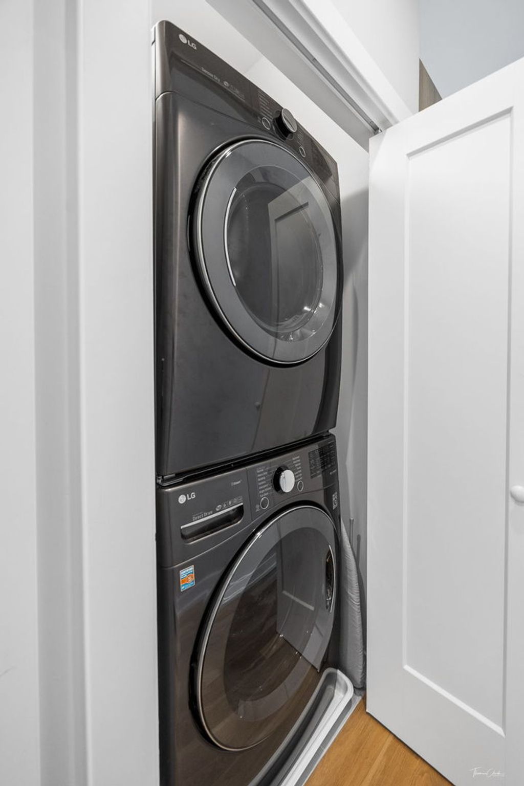 Prime Pilsen Location Just South of 18th Street! Constructed in 2020, this modern 2-bedroom, 2-bathroom condo is in pristine condition. Located directly across from Throop Park and steps away from some of the neighborhood's best restaurants, this stylish 2-bedroom, 2-bathroom unit offers the perfect blend of comfort and convenience. Inside, you'll find beautiful white oak flooring throughout and a sleek, modern design featuring flat-panel cabinetry in the kitchen and bathrooms. The kitchen is equipped with quartz countertops, a marble subway tile backsplash, and LG stainless steel appliances. Both bathrooms showcase contemporary tile work and finishes. Enjoy abundant natural light and park views from the oversized living room windows. The in-unit stacked LG washer and dryer add everyday convenience, while the primary suite includes a custom Elfa closet system for maximum organization. Additional features include LED recessed lighting throughout, generous storage space, and upscale finishes that create a sophisticated feel. Outdoor perks include a private 12'x10' rear porch, access to a shared backyard, and one covered outdoor parking space in the carport-included in the price!