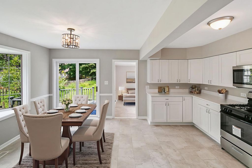 Finally, a place to call home! This charming neighborhood is friendly, walkable and takes you back in time! Step into this 1901 house and you can see the sunshine streaming in from every angle! Stunning, original hardwood floors in the family room and study/office. Your kitchen has new stainless steel Amana stove, DW, microwave and refrigerator, along with new Shaker-style cabinets (with soft-close doors/drawers) and very spacious quartz countertops! Go ahead and plan your next holiday in this extra-large dining room ~ there's enough space for everyone! New central AC condenser, new plumbing throughout, new Rheem furnace, new electric, too! Two full baths (one on each floor) and three bedrooms on the second floor, which offers a bonus room as a second study/office option. Warm, original hardwood (Douglas Fir) floors in the expansive primary bedroom. Huge his/her closet, too! New carpeting in the bonus room, as well as in the other two bedrooms! Enjoy your morning coffee on the deck while overlooking the peaceful, colorful garden. The deep backyard is so spacious - it's perfect for launching a frisbee or going deep to practice that football pass! The depth of the property is possible because of an additional lot! Large firepit area is perfect to gather with your friends to roast marshmallows and listen to the crackling fire! Very friendly neighborhood with sidewalks leading you to convenient downtown shops, the Fox River and the Batavia Riverwalk! You'll want to settle in to this home soon ~ so you can unwind in this lovely, quaint gem!