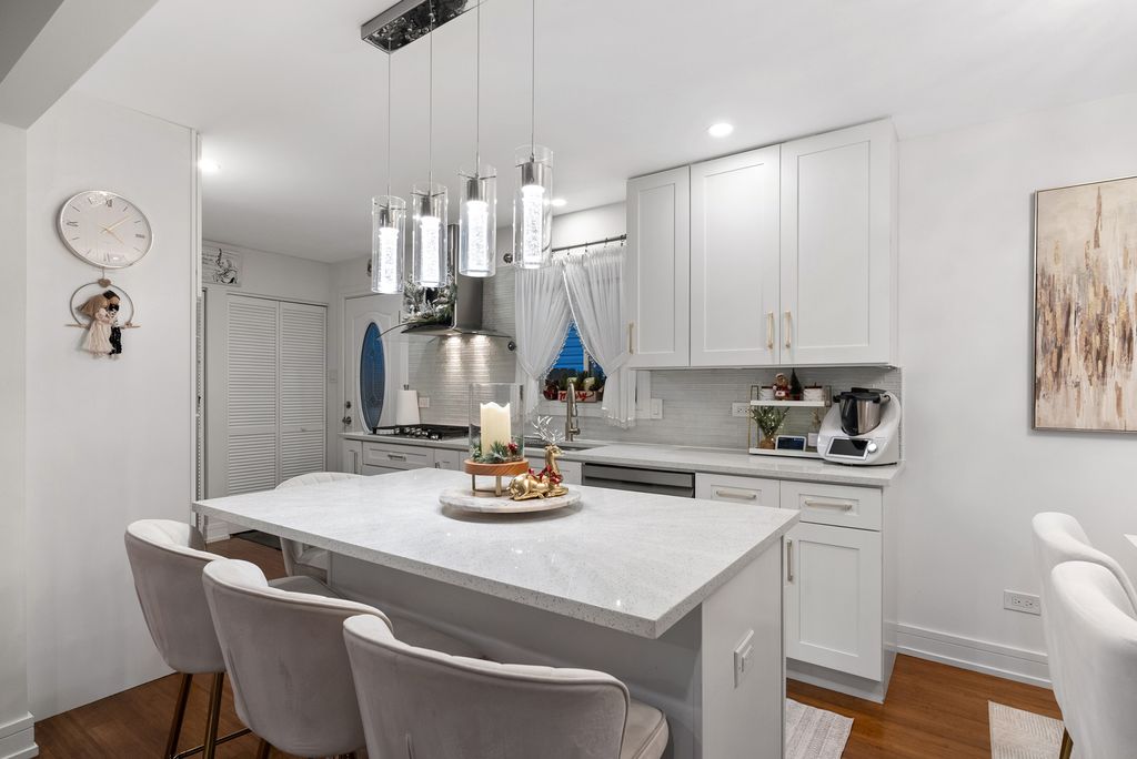 Sophisticated design meets everyday comfort in this beautifully curated 3-bedroom, 1-bath residence, ideally positioned with open views and no neighboring homes directly across the street. Instead, the front of the home overlooks a scenic park and playground, offering a rare sense of openness, privacy, and tranquility. Step inside to discover refined finishes and thoughtful craftsmanship throughout. The chef-inspired kitchen is a true centerpiece, showcasing a quartz-topped island, custom cabinetry, premium stainless steel appliances, a built-in wall oven and microwave, and a striking glass statement hood that adds modern elegance. Hardwood floors extend seamlessly throughout the home, enhancing both warmth and sophistication. The living area is designed for both relaxation and entertaining, featuring a sleek electric fireplace, recessed lighting, and a beautifully designed layout that feels both inviting and elevated. Three well-proportioned bedrooms provide comfort and versatility, while additional attic storage ensures a place for everything. Abundant storage throughout the home reflects a thoughtfully executed design where function meets style. Outdoor living is equally impressive with a covered patio complete with elegant paving stones, ideal for entertaining or or unwinding in a private setting. The oversized, tall garage is exceptionally insulated, perfect for all seasons, and offers generous space for storage, vehicles, or hobbies. Significant improvements add lasting value and peace of mind, including: * Garage roof (2021) * Windows (2021) * Siding, soffits, and gutters (2021) * Furnace, A/C, and water heater (2022) * House roof (2016) Every detail of this home has been intentionally completed, blending modern luxury with timeless appeal. Whether seeking a refined residence with high-end finishes or a move-in-ready home in a serene, park-adjacent setting, this property delivers exceptional quality, style, and comfort.