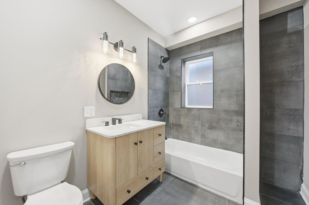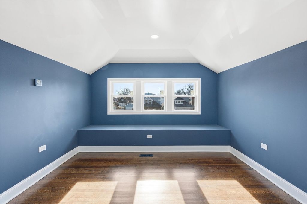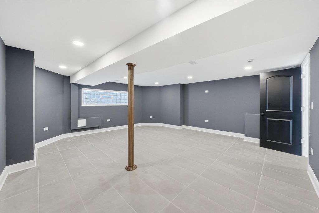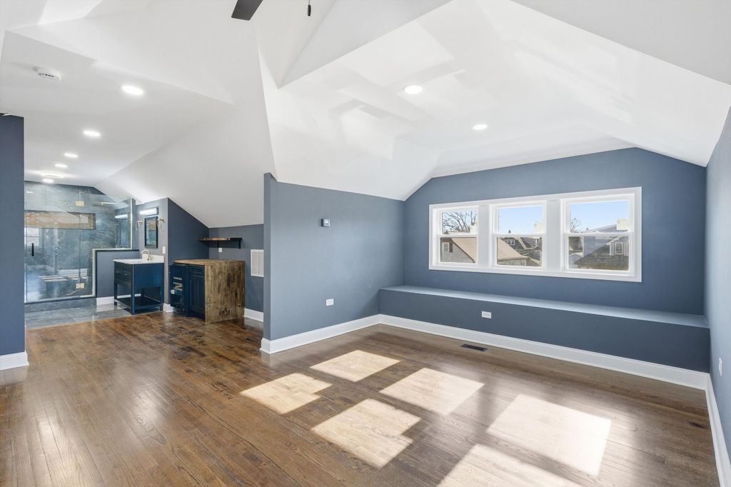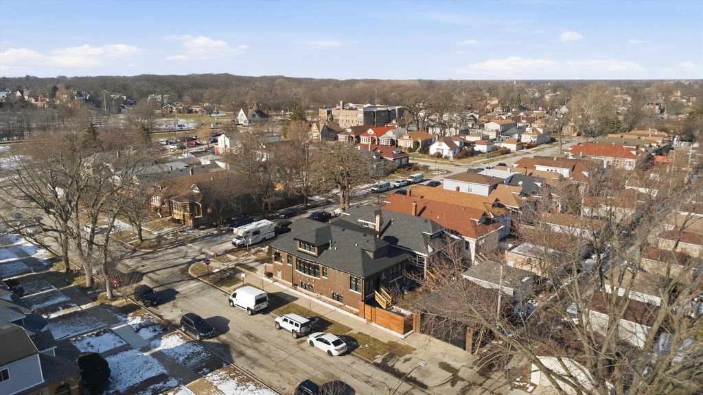 This well-maintained brick home sits on a double corner lot on a quiet, manicured block and offers 4 bedrooms and 3 full bathrooms. Hardwood flooring flows throughout the main living areas, paired with an open-concept layout ideal for everyday living and entertaining. The primary suite is thoughtfully positioned on its own level for added privacy. The home features a full finished basement with tile flooring, a wet bar, and a wine cooler, perfect for hosting or relaxing. The kitchen is updated with quartz countertops, new appliances, and a wine cooler. Additional highlights include ceiling fans, new windows, a new roof, furnace, tankless water heater, and central air for peace of mind. Enjoy the expansive outdoor space provided by the double lot, a fully fenced backyard with a privacy fence, and a solid brick two-car garage. Conveniently located near the expressway, shopping, train access, and downtown amenities. Move-in ready. Updated.