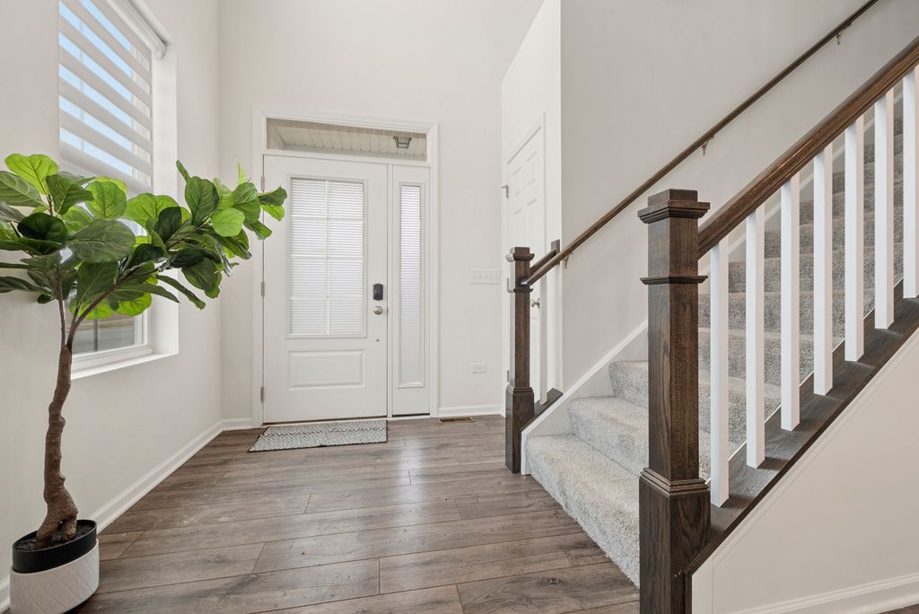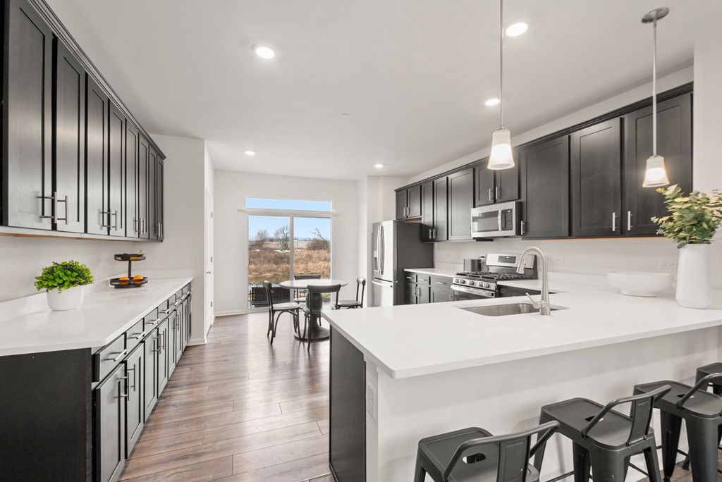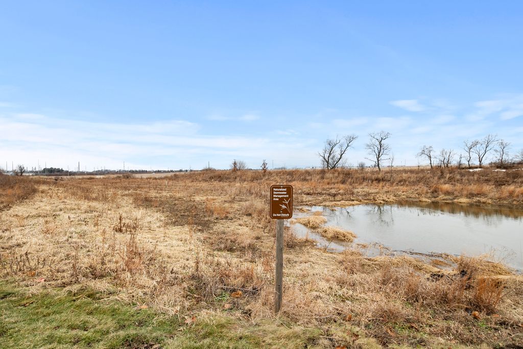Welcome to this like new, recently built end-unit townhome in the desirable Silo Bend subdivision, perfectly situated on an oversized corner lot with premium views of the pond and surrounding grasslands. Picturesque views from every window. Offering extra privacy and abundant natural light, this home combines modern finishes with a flexible, thoughtfully designed floor plan. Custom window treatments throughout and 6 panel doors. The main level features a spacious living area ideal for both relaxing and entertaining. The stunning eat-in kitchen is a standout, showcasing quartz countertops, a breakfast bar, abundant cabinetry, stainless steel appliances, a pantry closet, and a sliding glass door that opens to the patio-perfect for enjoying the peaceful outdoor setting. Also on the main floor is a convenient primary bedroom suite with a new light fixture, walk-in closet and a full private bathroom featuring double sinks and large walk in shower. A main-floor laundry room and a well-placed half bath add everyday convenience. The second level offers a versatile loft space that can be used as a family room, home office, or flex area, along with two additional nicely sized bedrooms and a full hall bathroom. The full unfinished basement provides excellent storage and endless potential, ready for the new owner to finish to their liking. Walking distance from the newly completed park. With its premium location, scenic views, and modern layout, this end-unit townhome is a rare opportunity in Silo Bend. Check out this beauty soon!