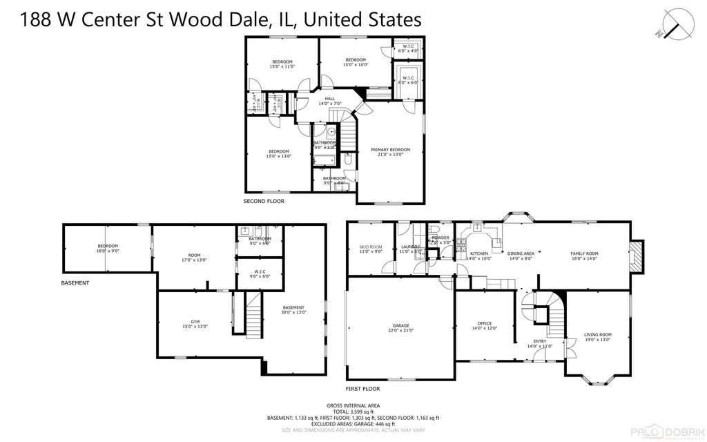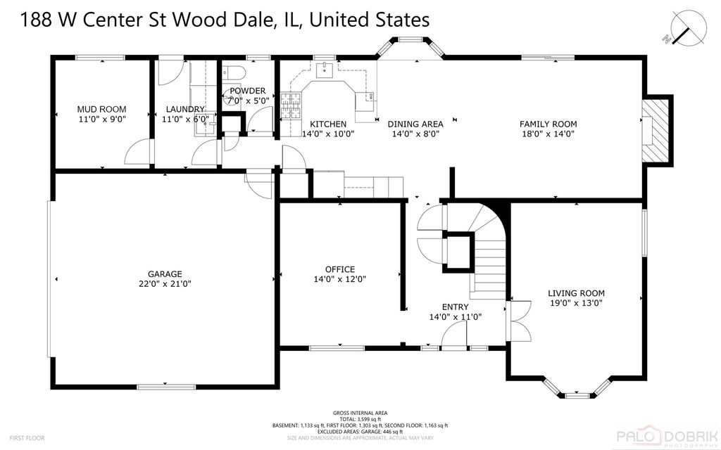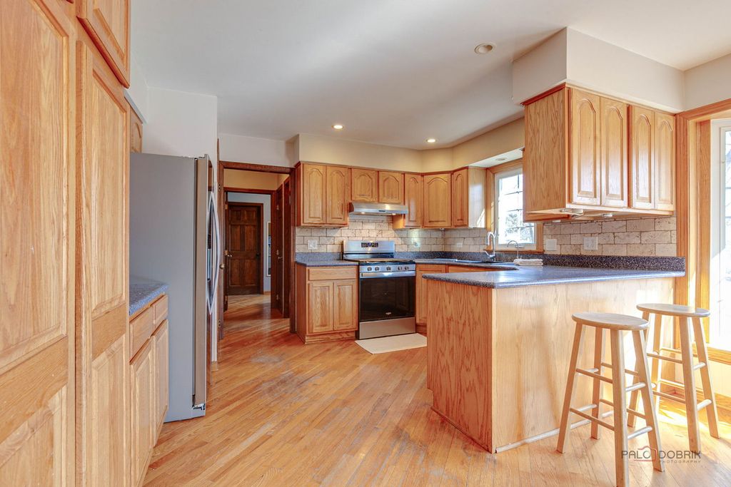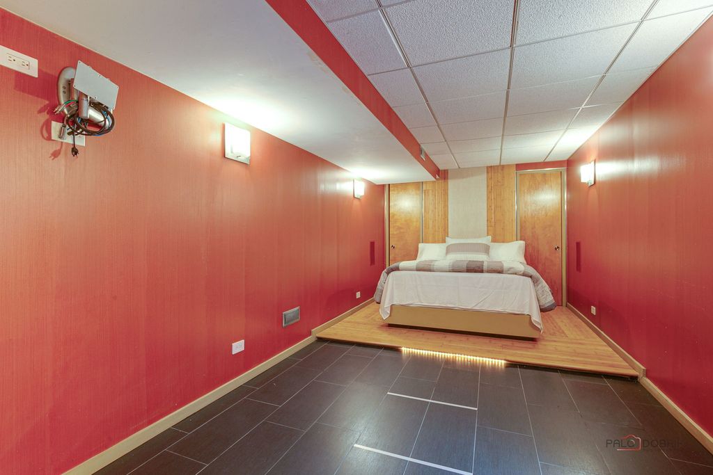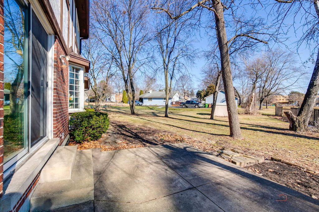 First time on the market-this solid brick Tudor-style home was custom-built and thoughtfully designed in 1979 by its original owner, a civil engineer and international businessman. Intentionally positioned for both durability and convenience, the home sits on an oversized corner lot, slightly elevated within the neighborhood to offer added privacy and pleasant second-floor views. Quality is evident throughout, featuring double-paned, sound-reducing windows and doors for year-round comfort. With 5 bedrooms and 3.5 baths, the layout was designed to comfortably accommodate a large family. The main level includes a welcoming foyer, a spacious family room, and a private office, alongside a functional kitchen featuring stainless steel appliances and a travertine tile backsplash. The bright living and dining area features a cozy fireplace and sliding doors to the backyard patio, while a dedicated laundry room and mudroom add essential everyday practicality. The upper level is highlighted by an expansive primary suite with a private bath and walk-in closet, joined by three additional generously sized bedrooms, a full hall bath, and a large linen closet for exceptional storage. The living space extends into the finished basement, which offers a fifth bedroom with dual closets, a full bath with heated floors, a large entertainment and game room, an exercise room, and a separate utility area. Practical features continue with an extra-deep attached 2-car garage equipped with workbenches and a huge asphalt driveway with ample parking. The location offers wonderful walkability, situated just two blocks from the Wood Dale Public Library and featuring convenient access to the neighborhood pool directly behind the property. Enjoy unbeatable convenience just minutes from the Wood Dale Metra station, roughly 15 minutes to O'Hare International Airport, and easy access to Route 83 and I-290 for a smooth commute to downtown Chicago. This home combines thoughtful engineering, generous space, and a premier location-schedule your private showing today to see the potential for yourself. Property is part of an estate and is being sold As-is. Seller to provide 12-month home warranty through America's Preferred Home Warranty (activated at closing).