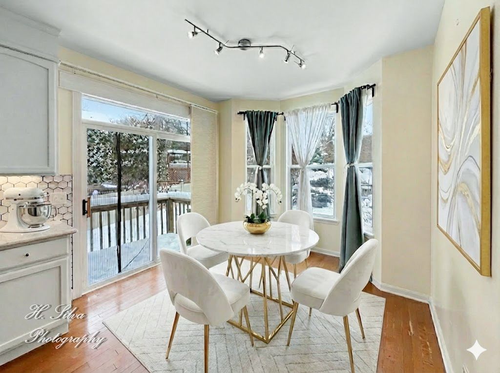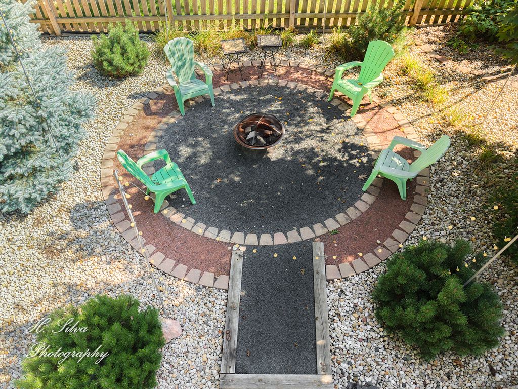 Welcome to White Oaks Subdivision! This stunning Coventry model offers 4 bedrooms, a main floor den, 2.5 baths, a finished English-style basement, and a 3-car garage. The home showcases impressive curb appeal with a mostly brick exterior, professionally landscaped grounds, a brick paver front porch with swing, new roof in 2023, and a new front and screen door installed in 2019. Inside you are greeted by a spacious open foyer with hardwood floors, updated lighting, and open sight lines to the formal living and dining rooms, perfect for entertaining. The main floor den with French doors adds flexibility, while the family room features a wood-burning fireplace, abundant natural light, and a beautiful custom farm accent wall designed for TV and entertainment. The kitchen is truly the heart of this home and a chef's dream, offering quartz countertops, upgraded cabinetry with crown molding, under cabinet lighting, marble backsplash, stainless steel appliances, coffee bar, pantry, and a spacious breakfast area overlooking the firepit. Upstairs you will find four bedrooms with hardwood laminate flooring, cedar-lined closets, custom sliding doors, and ceiling fans. The primary suite is a retreat with French doors, vaulted ceilings, double vanity, garden tub, separate shower, and a custom walk-in cedar closet with full organization system. The finished English basement offers a massive recreation space with recessed lighting, decorative cutouts, and a rough-in for a third full bath, along with plenty of storage. The private backyard oasis features a deck, firepit, mature trees, rock garden, walking paths, shed, and wood picket fence. Major updates include new HVAC with UV light and humidifier in 2024, new 50-gallon water heater in 2024, and epoxy garage floors in 2021. Located near White Oaks Park, Carpenter Park, shopping, schools, and I-90 access, this home is truly the one to see!