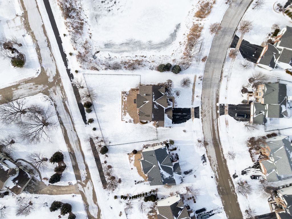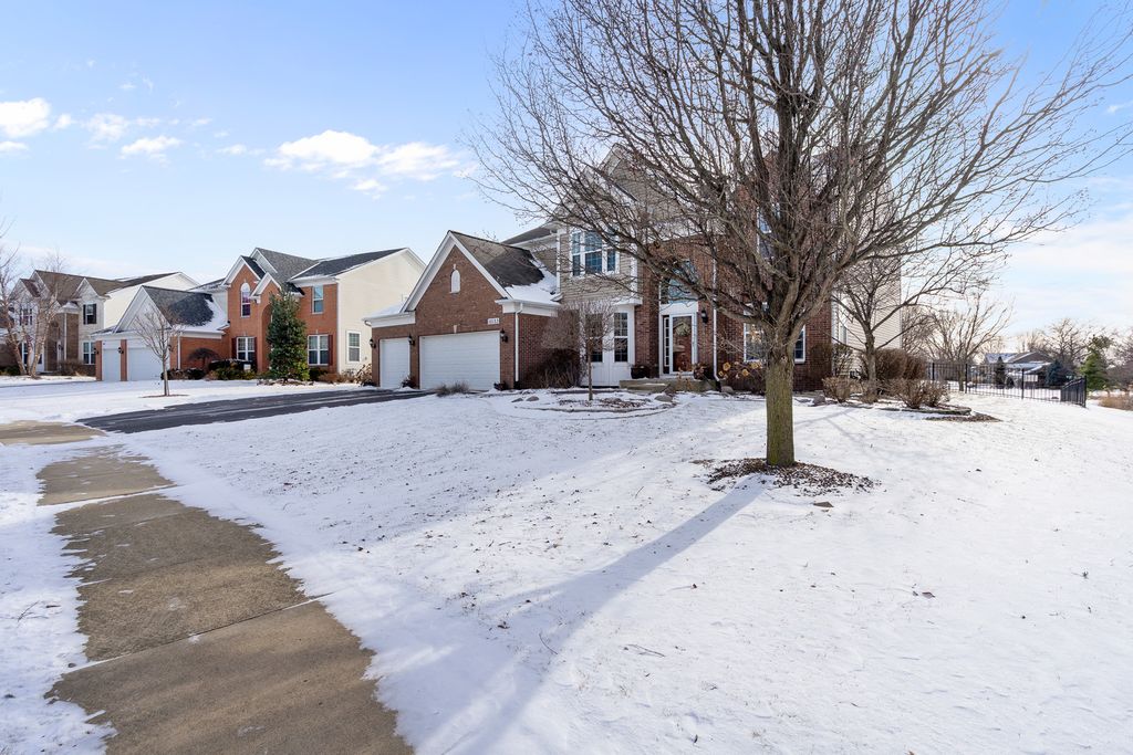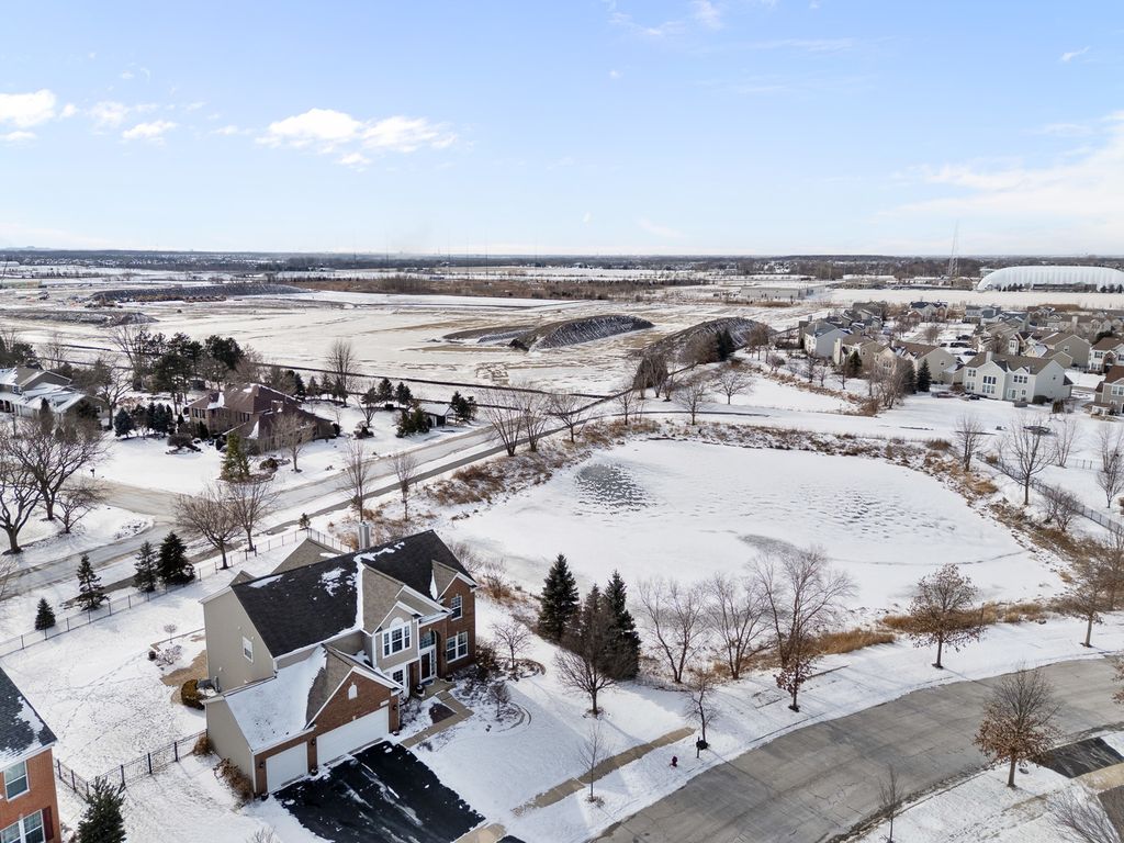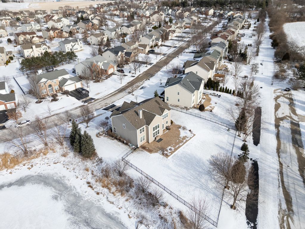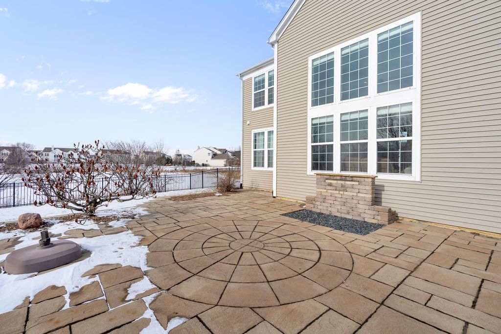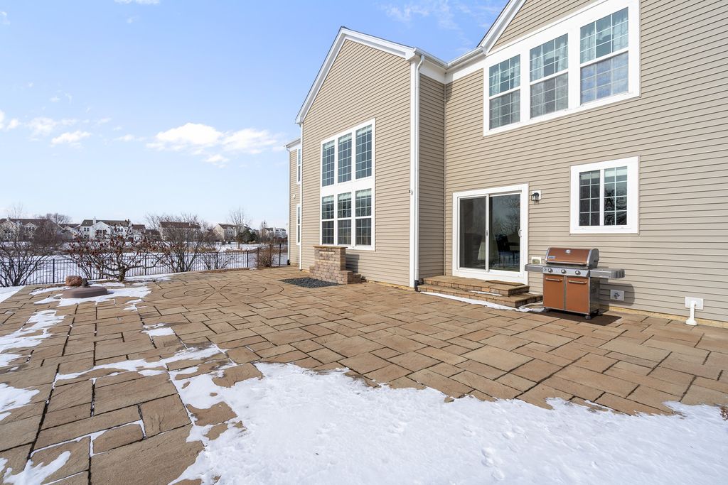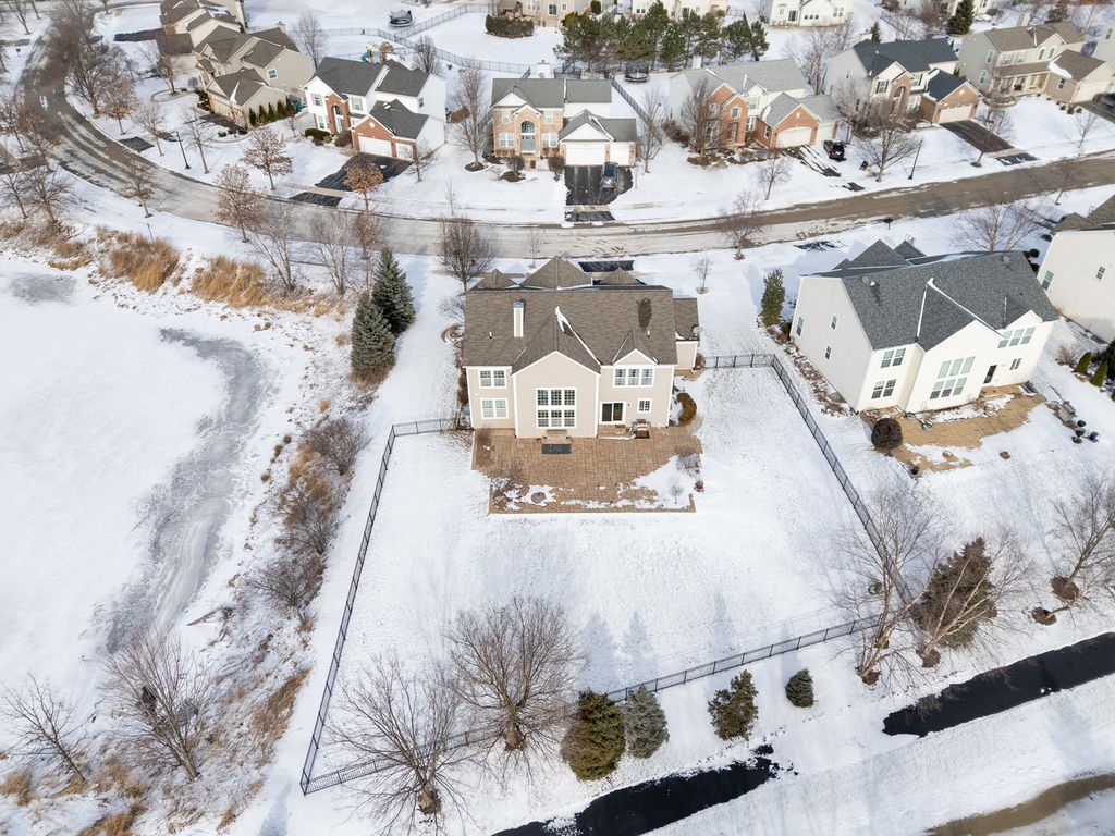 MULTIPLE OFFERS RECEIVED. HIGHEST & BEST REQUESTED. Prepare to be impressed by this stunning and spacious true two-story Birmingham model, gracefully nestled on an exceptional lot overlooking a scenic pond with direct access to winding walking paths. From the moment you arrive, this home captivates with its commanding presence, lush landscaping, and serene water views that create a resort-like atmosphere. Step inside to a grand foyer accented by gleaming hardwood floors, setting the tone for the refined elegance found throughout. The sun-filled living room and formal dining room are beautifully defined by decorative pillars, offering the perfect backdrop for entertaining and special gatherings. A desirable main-level bedroom with a full bath provides ideal accommodations for related living or guests. The heart of the home is the dramatic two-story family room, highlighted by a soaring floor-to-ceiling gas fireplace and walls of windows that frame breathtaking yard views. The expansive chef's kitchen is both stunning and functional, featuring rich 42-inch cabinetry, gleaming hardwood floors, corian countertops, a center island, pantry, planning desk, water filtration system, and stainless steel appliances. The adjoining breakfast area opens to the backyard oasis. Outdoor living is taken to the next level with an approximately 1,000 sq ft custom paver patio, complete with a waterfall water feature, ambient illumination, and a fully fenced yard-perfect for relaxing evenings or entertaining under the stars, all while enjoying peaceful pond views and direct access to the walking path. Additional main-level highlights include an elegant butler's pantry, a well-appointed laundry room with sink, and a three-car attached garage featuring RaceDeck flooring. Upstairs, retreat to the expansive master suite showcasing new luxury vinyl plank flooring and a double-door entry into a spa-inspired bath with double raised vanities, separate shower, whirlpool tub, private water closet, and an impressively large walk-in closet. Bedroom two offers its own walk-in closet, while additional bedrooms provide generous space and comfort. The full unfinished basement boasts 9-foot ceilings and roughed-in plumbing, offering endless potential for future living space. Select rooms are wired with Cat-5, adding modern convenience. Offering five bedrooms, three full baths, exceptional indoor-outdoor living, and a premium pond-side setting, this extraordinary home delivers luxury, comfort, and lifestyle in one remarkable package. Community Highlights: Located in Cedar Ridge with desirable 33C school district, enjoy access to a lovely park with playgrounds, serene ponds, and winding walking trails-perfect for outdoor adventures and family outings. Plus, you'll love the convenience of being close to expressway I-355, shops, and restaurants, train Metra, Silver Cross Hospital and more making your daily commutes and errands a breeze!