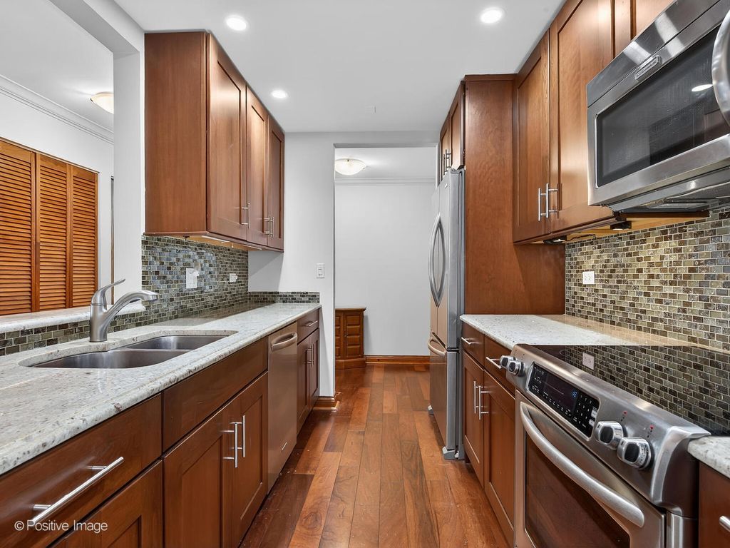 Perfectly located in the heart of downtown Downers Grove! This beautifully appointed two bedroom, 2 bathroom penthouse condo offers timeless design and effortless living. Classic, tastefully curated finishes create a warm and refined atmosphere throughout. The spacious dining room easily accommodates a full sized table, ideal for hosting and everyday living. A large living room opens to a private balcony, perfect for morning coffee or evening relaxation. Stunning kitchen with granite countertops, stainless steel appliances and warm wood custom cabinetry. The luxurious primary suite includes two closets and a private bathroom with a walk in shower. The versatile second bedroom works beautifully as a den, home office or a guest space. A second updated full bath is directly off of the hallway. Rarely available, this unit includes 1 INDOOR GARAGE parking space and one outdoor parking space along with a large storage locker. Residents enjoy access to a meeting/party room, exercise room and laundry facilities in the building. Steps to amazing shops and restaurants in vibrant Downtown Downers Grove. Walk one block to Metra train station. Don't miss this incredible opportunity! New Furnace and AC