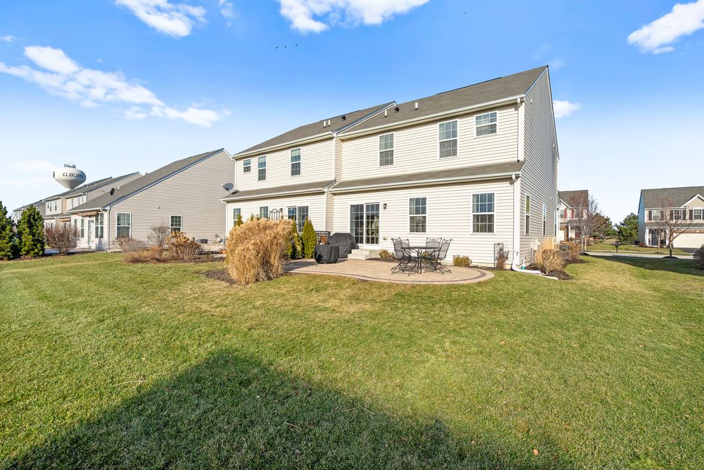 Beautiful 3 bedroom, 3.5-bath duplex townhome built in 2020, end unit in the highly sought-after Blackberry Creek community. The main level features an open-concept layout with 9-foot ceilings, wide-plank luxury vinyl flooring, an electric fireplace, and a welcoming foyer with a board-and-batten accent wall. The kitchen offers 42-inch white cabinets, walk-in pantry and a large island that opens to the dining and living areas. The second level includes three spacious bedrooms, two full bathrooms, and a convenient second-floor laundry. A flexible loft provides space for a home office. The primary suite features two walk-in closets and a private bath with a double vanity. The finished basement with a full bathroom adds valuable living space, ideal for guests, a recreation room, or a home gym. A brick paver patio and professionally landscaped grounds complete this low-maintenance home in the Kaneland 302 School District, close to shopping, dining, and everyday conveniences.