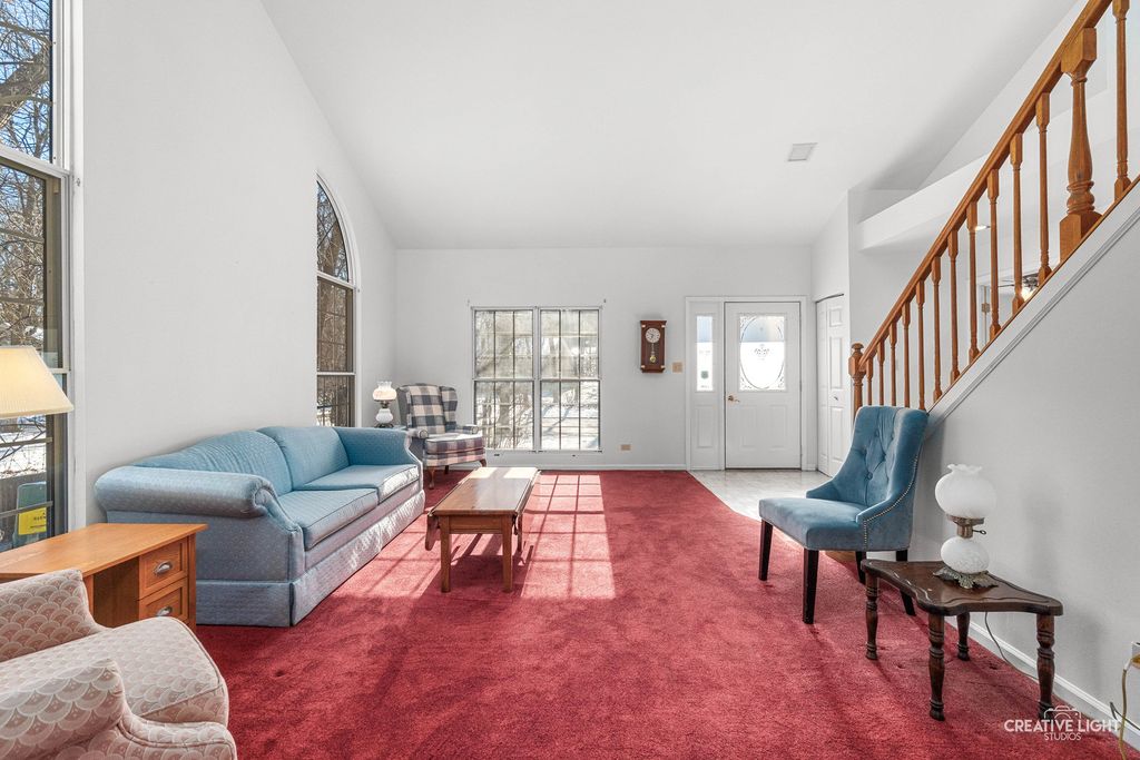 Wow! Spectacular location! Tucked away on a quiet cul-de-sac on a beautiful wooded lot! Enter into the dramatic 2-story foyer with plant shelf! Sun filled living room with vaulted ceilings and large 1/2 round windows leads into a separate formal dining room perfect for entertaining! Very functional eat-in kitchen with custom oak cabinetry, center island, corner sink, undercabinet lighting and all appliances stay! Separate eating area with bay bump out! Cozy family room with vaulted ceilings and sliding door to the beautiful yard filled with mature trees and privacy! Convenient 1st floor master bedroom with double door entry and private full bath with oversized vanity! Open spacious loft overlooks the living room! Gracious size secondary bedrooms! Huge basement has endless possibilities! Newer furnace, A/C and water heater! Exterior trim work recently repainted! Perfect quick access to I-90, Rt 59 and Rt 20 makes it great for commuters! Make an offer! We are ready to put a deal together!