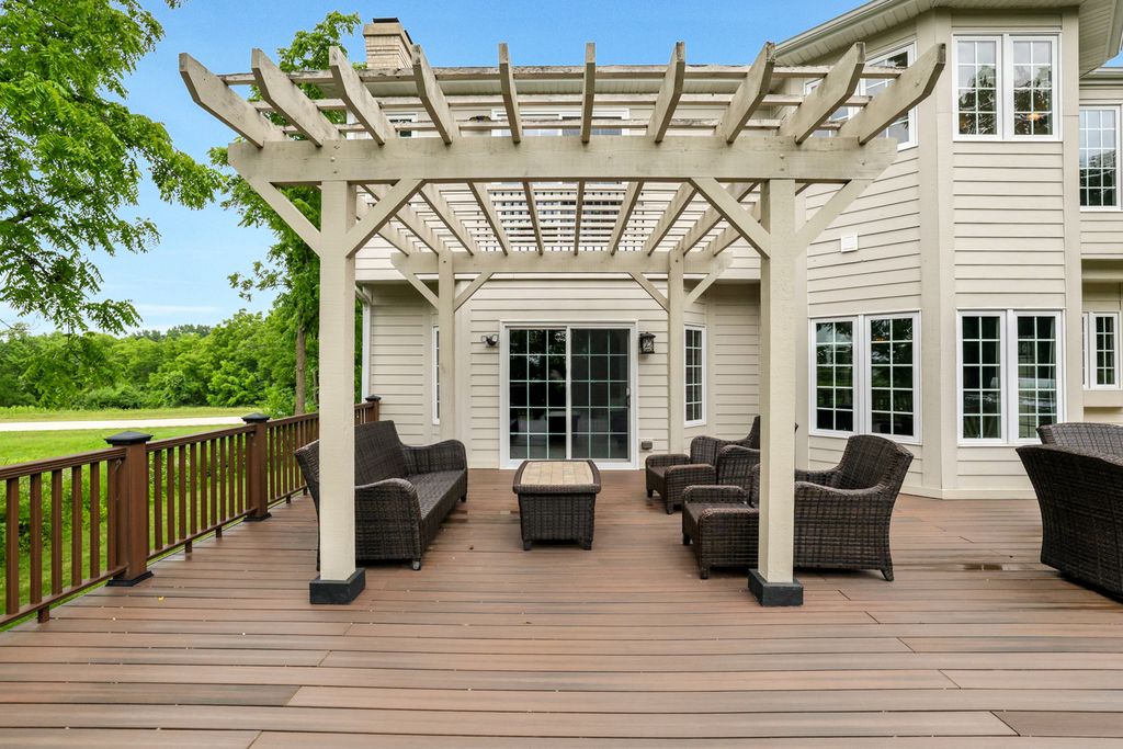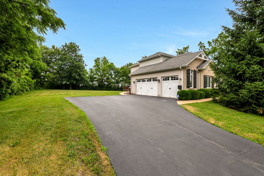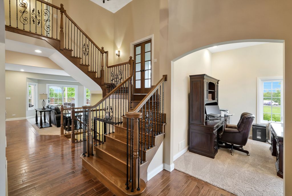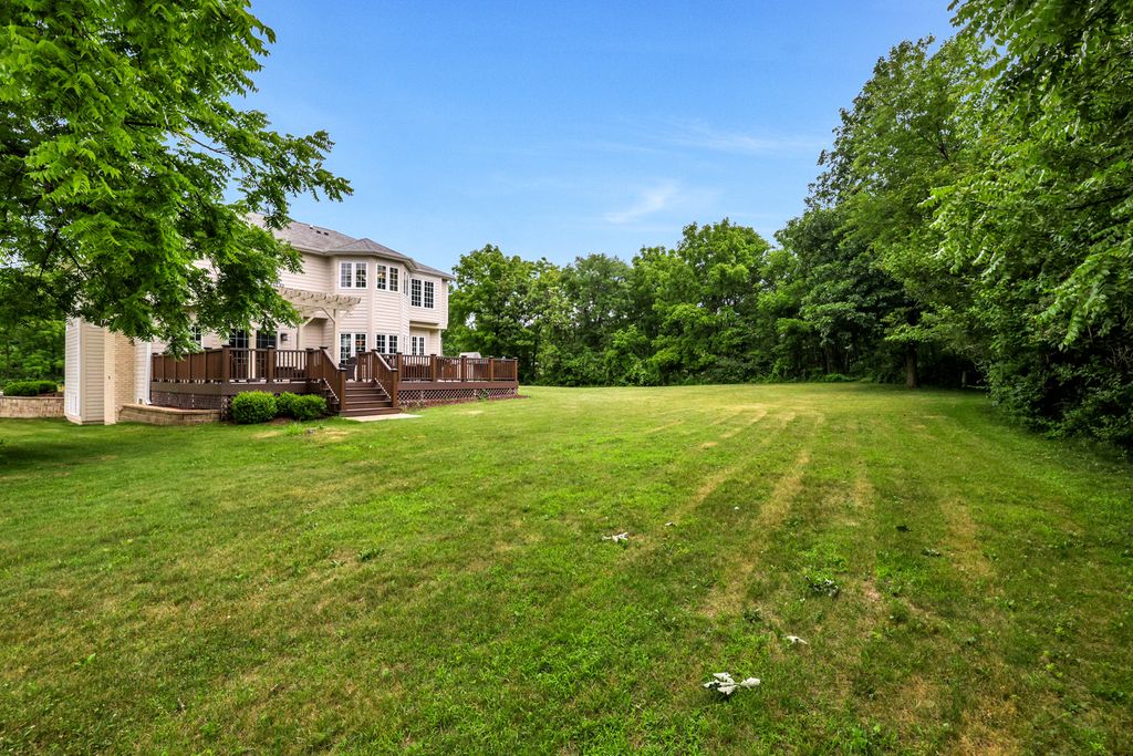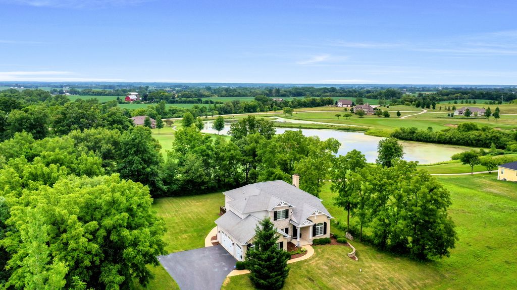 Custom home with 4 spacious bedrooms, 4.5 bathrooms nestled on the 7th hole of the prestigious Blackstone Golf Course. Dramatic open 2-story foyer, setting the tone for the elegance found throughout . 1st floor office or Living room tailored to fit your needs. Hickory hand scraped hardwood floors, formal dining room with custom built in cabinets. The gourmet kitchen boasts custom maple cabinetry, granite countertops, stainless steel appliances. Fisher Paykel double oven and Refrigerator, Bosch D.W., Kitchen Aid Convection Microwave large granite island with seating, and a sun filled eating area overlooking the backyard oasis. Enjoy relaxing in the spacious Great room with a wood burning fireplace, stunning outdoor views, and abundant natural light creating a seamless indoor-outdoor living experience. Upstairs, the luxurious master suite has a tray ceiling, claw foot bathtub, walk-in shower, double sinks, and a large walk-in closet. One bedroom includes a private en-suite bathroom offering comfort and privacy. Additionally, two bedrooms share a well-appointed Jack-and Jill bath. The finished basement is an entertainer's dream with custom cabinetry, granite countertops, fireplace, wet bar, dishwasher, beverage refrigerator, optional 5th bedroom, full bath, large entertainment rooms, and generous storage room. Hoa includes neighborhood sewer system. Home has water softener, whole house filtration system, and security system. Step outside, enjoy an expansive composite deck with a pergola overlooking a private backyard with stunning golf course views . Additional highlights include a 3-car garage, extra-wide driveway, and Hardie board siding. This home offers upscale comfort in an unbeatable setting.