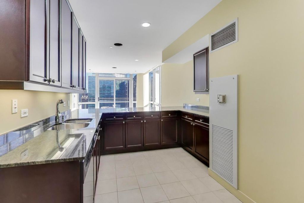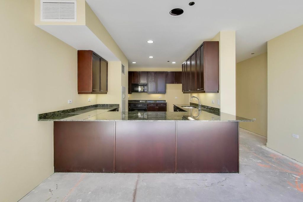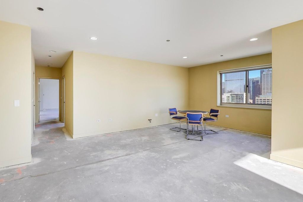 Soak in breathtaking east-facing skyline views from this bright and spacious 2 bed / 2.1 bath plus family room West Loop condo, perfectly positioned in a full-amenity elevator building. 2300+ SF unit provides floor-to-ceiling windows which flood the space with natural light and frame postcard-worthy city views from nearly every room. The open layout offers flexible living and dining options plus a bonus family room, ideal for entertaining or everyday living. Step outside to your private east-facing balcony off the living area, the perfect spot to sip your morning coffee or sunset cocktails. The spacious, open kitchen features abundant cherry cabinetry with excellent storage and granite countertops with an oversized breakfast bar. A massive walk-in pantry could also easily convert to a home office. The primary suite is a true retreat, featuring a wraparound terrace with both east and north exposures, generous walk-in closet, and ensuite bath with jetted tub, separate shower and double vanity. The concrete subfloors are ready for your finishing touch, allowing you to customize with hardwood, tile, or carpet. Side-by-side in-unit washer/dryer adds to your easy living. Building amenities include a rooftop deck, fitness center, party room, bike room, dog run, package receiving, dry-cleaner drop-off, on-site management, 24-hour door staff and a direct connect to Whole Foods. Two deeded side-by-side garage parking spaces included in price! All of these modern conveniences included in an unbeatable location just steps to Ogilvie, easy to public trans and highway, and a short stroll to the best dining, nightlife, and culture the West Loop and Fulton Market has to offer.