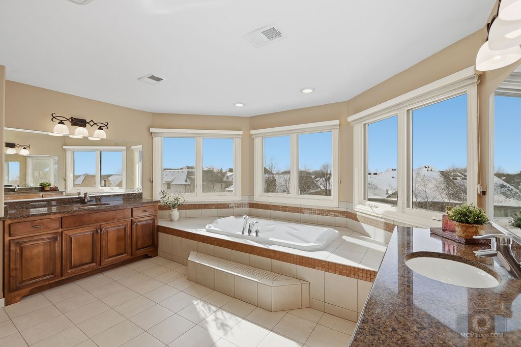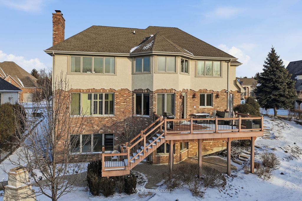 Experience luxury living in this well appointed, custom residence nestled within prestigious Briarcliffe Estates. Timeless elegance meets exceptional craftsmanship in this beautifully constructed home boasting almost 6000 sq. ft. of living space including the FINISHED, WALK-OUT LOWER LEVEL. Distinctive brick and stone architectural details blend harmoniously to create impressive curb appeal. Enter through the elegant, arched covered front entry illuminated by a pendant light. The main level showcases 8' solid doors, oversized detailed trim work, and refinished hardwood floors. A welcoming 2 story foyer introduces sun-filled interiors and a highly functional layout. The formal dining room offers an elegant setting for entertaining. Versatile office / den with glass French door entry, soaring ceilings and a beautifully integrated built-in book case. The gourmet kitchen features custom cabinetry with an island, granite countertops, stainless-steel appliances, and a spacious eating area. Elegant butler's pantry appointed with a sink and a built-in beverage cooler. The impressive family room is highlighted by a stone fireplace providing a warm, comfortable space to relax and unwind. The second floor is thoughtfully designed for elevated living, featuring a welcoming loft, all hardwood flooring, 4 spacious bedrooms and three full baths. The luxurious primary bedroom suite includes a generous walk-in closet (13x9) and a lavish, spa-inspired bathroom featuring a large shower, a relaxing bubble tub flanked by 2 vanities and a toilet closet. A coveted private ensuite bedroom pairs with two additional bedrooms connected by a Jack and Jill bathroom, delivering both comfort and privacy. The finished walkout lower level elevates the home's versatility, providing additional living and entertaining space with POTENTIAL FOR RELATED LIVING. A spacious design showcases an inviting family room with a second fireplace, game room, home theater with elevated seating, a wet bar, 5th bedroom, full bathroom, and exceptional storage. Outdoor living is equally impressive, featuring an expansive maintenance-free deck, a brick paver patio, professional landscaping and a charming outdoor fireplace, perfect for year round comfort. Additional highlights include a 3-car side load garage with direct access to a spacious mudroom and a convenient first floor laundry room. Surrounded by estate level residences, this home offers an upscale atmosphere just minutes from shopping, dining, expressway access, parks, schools and vibrant Downtown Lemont. Discover refined living in one of Lemont's most distinguished communities.