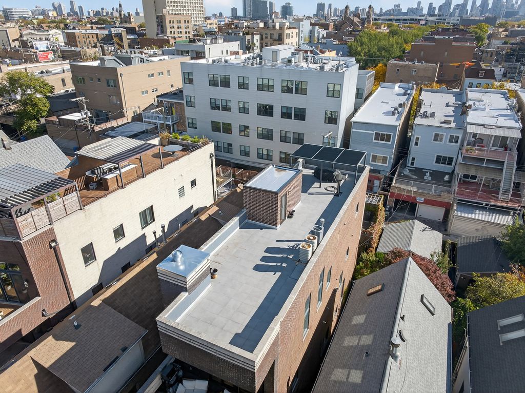 **OH Canceled. Property under contract.** Welcome to this light-filled 3-bedroom, 2.5-bath penthouse triplex located on a quiet street in an exceptional West Town location. This stunning multi-level home delivers true wow factor with soaring 18-foot ceilings in the main living, dining, and kitchen spaces and three private outdoor spaces. The living room features floor-to-ceiling windows, a corner gas fireplace, and access to a deck (replaced with composite materials in 2022) which overlooks the quiet tree-lined street. The dining area flows into the kitchen and features granite countertops and stainless steel appliances. Just past the kitchen is a main-level half bath. The second level features the private primary suite with a private balcony, dual closets and an ensuite with dual vanity, full body spray steam shower and a whirlpool soaking tub. The lower level features two bedrooms that share a hall bath and have easy access to the laundry closet. The centerpiece of this unit is the fully built-out private roof deck with a floating deck, pergola, and roof tiles (2023), chimney steel chase cover replacement (2023), and sweeping city views with sightlines to the Willis Tower. One garage parking space is included in the price. Recent building improvements include: new roof (2022), extensive brickwork and tuckpointing (2024), & refreshed shared entry and common areas (2026). Perfectly positioned just off Division Street and slightly east, this home feels remarkably private for a city condo. Blocks to the Division Blue Line, I-90/94, and multiple bus lines. Minutes to all the shopping, dining, and nightlife the city has to offer. A truly special place in an unbeatable location makes it the perfect place to start your next chapter.