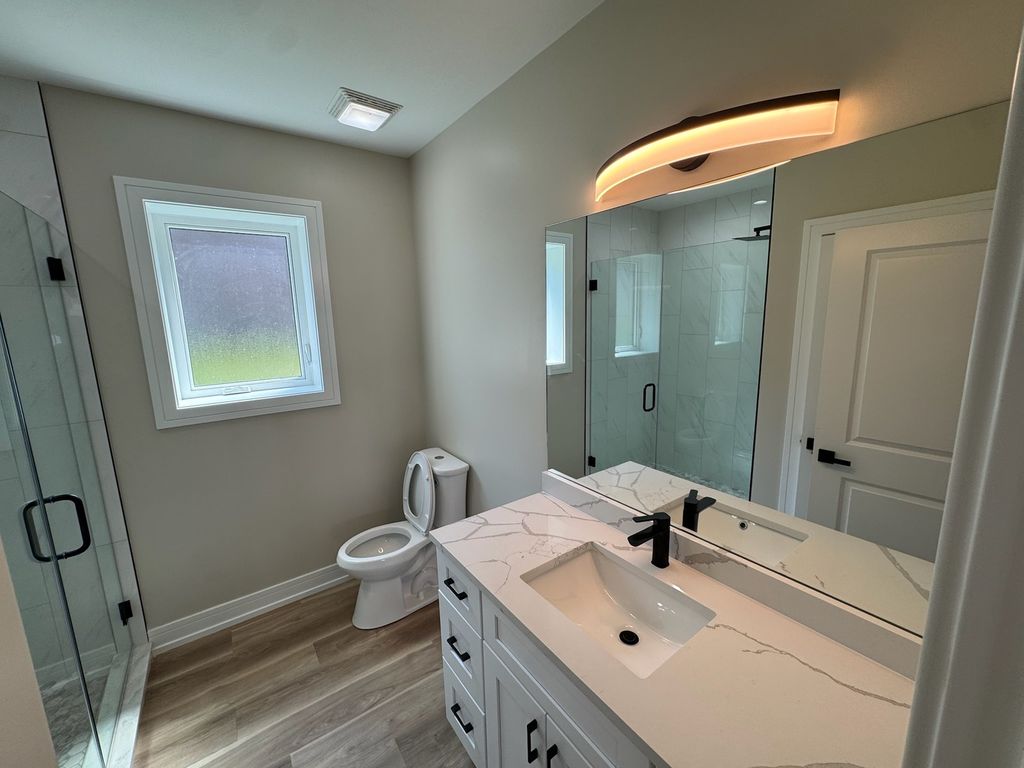 Stunning brand-new construction in Burbank - this expansive 6-bedroom, 4-bath residence offers over 4,000 sq ft of sophisticated living space. A spacious open-concept upper level welcomes you with abundant natural light and designer finishes. The gourmet kitchen features quartz countertops and stainless steel appliances, while the spa-inspired primary suite includes a custom walk-in closet and luxurious bath. The fully finished lower level, with its 13-foot ceilings, second full kitchen, and private entrance, is ideal for guest quarters or entertaining. Additional highlights include a fully finished laundry area, built-in camera security system, dedicated office spaces within the rooms, dual fireplaces, oversized windows, and an EV charger. An attached garage and exceptional craftsmanship throughout make this home move-in ready and a rare find in today's market.