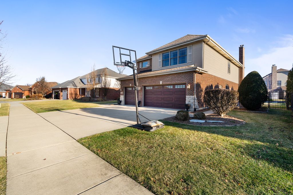 MULTIPLE OFFERS RECEIVED. HIGHEST & BEST REQUESTED BY 9AM MONDAY, JANUARY 19TH. Prepare to be captivated by this stunning and spacious Wrightwood model nestled in the highly sought-after Radcliffe Place. Beautifully updated and richly appointed, this exceptional residence offers timeless elegance, thoughtful upgrades, and resort-style amenities throughout. A sun-filled formal living room sets a refined tone, showcasing exquisite wainscoting and crown molding. The home offers five generously sized bedrooms and 31/2 luxurious baths, with the first floor updated in 2018 and the second level renovated in 2020. Enhancements include Marvin Infinity windows (2018) and new interior doors (2020). Entertain effortlessly in the formal dining room, accented by classic millwork, or gather in the spectacular chef's kitchen, featuring custom backsplash, recessed lighting, beverage refrigerator. Staggered custom beechwood cabinetry with crown molding, quartz countertops, newer stainless steel appliances, and a breakfast bar complete this stunning culinary space. The adjoining family room with gas log fireplace provides warmth and comfort for everyday living. The main level offers incredible flexibility, including a fifth bedroom, a laundry room with utility sink, and access to the three-car attached garage, complete with gas heater and epoxy flooring. A dramatic split staircase leads to the upper level, where extensive upgrades continue throughout. Retreat to the luxurious master suite, featuring a cozy fireplace, two walk-in closets, and a spa-inspired bath with double granite vanity, soaking tub, and oversized shower with rain shower head. A second full bath with granite vanity serves additional bedrooms. The full, finished basement is an entertainer's dream, offering a custom wet bar with two beverage refrigerators and dishwasher, billiards area, expansive recreation room, full bath, office or gym, and abundant storage. Step outside to your private, park-like backyard oasis, beautifully fenced and professionally landscaped with an irrigation system. Enjoy summers by the 51/2-foot in-ground swimming pool with automatic cover, or entertain in the outdoor kitchen beneath a pergola, complete with beverage fridge, bar, and built-in grill. All of this is located within the highly desirable Andrew High School District, making this home the perfect blend of luxury, comfort, and location.