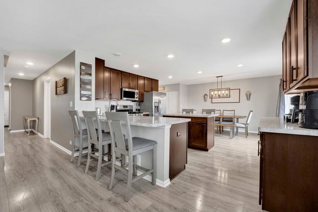 Two story home located in the Fall Creek subdivision with 2,825 sq ft of functional flow. This 4 bed, 2.5 bath really is a one-stop shop. Walk into the heart of the home from the well-kept garage with epoxy flooring and drywall. Laundry room and coat closet conveniently located upon entry. The beautifully designed, open-concept kitchen has rich wood cabinetry and is complemented by expansive counter space, stainless steel appliances, recessed lighting and center island with seating. Kitchen also features a large eat-in area, pantry and access to rear yard. This home is the perfect setup for entertaining in the fully fenced backyard. From grilling on the Trex deck, to taking a dip in the heated pool or just soaking in the serene open views. Such a warm and welcoming family room and private feeling living room with half bath. LVP flooring throughout main level. Spacious second floor with loft and 4 bedrooms. Oversized primary bedroom offers en suite stand-up shower, double sink vanity, toilet room and 2 closets, one of those closets being 10X6. Additional full bath with double sink vanity on second floor. Use your imagination for the loft area and if that's not enough living space above grade, the finished basement with beautiful wood laminate flooring really tops it off. Also, don't miss the expansive crawl space perfect for storage. Such a great location close to restaurants, shopping, golf course and easy access to highways!