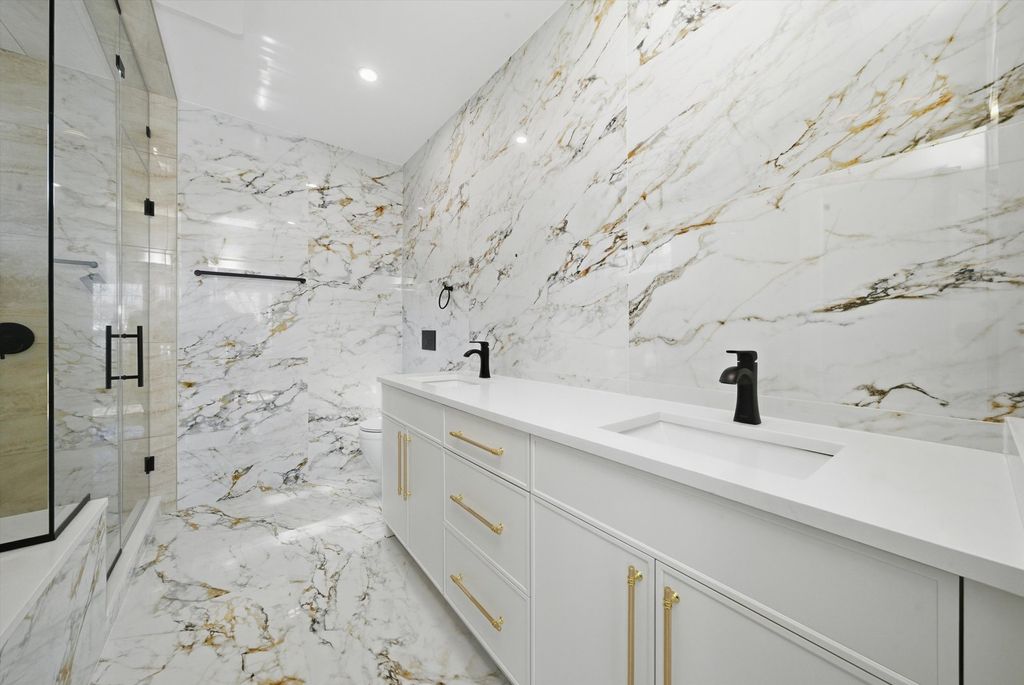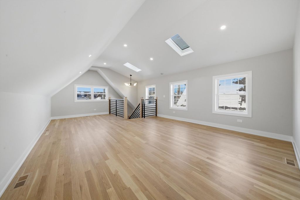 Fully gut-rehabbed residence located in the heart of Albany Park, thoughtfully redesigned with timeless style and high-quality finishes throughout. The home features new hardwood flooring, custom millwork, modern light fixtures, and luxury finishes that create a cohesive and refined living environment. The open-concept main level offers an ideal layout for everyday living and entertaining, centered around a well-appointed kitchen with quartz countertops, full-height tile backsplash, oversized island, soft-close cabinetry, and a premium stainless steel appliance package. Bathrooms are designed to feel like a private oasis retreat, featuring spa-inspired finishes, soaking tub options, and calming, elegant details that promote relaxation. The primary suite includes a walk-in closet and a serene, spa-caliber bath that serves as a true retreat within the home. All major systems have been replaced, including electrical, plumbing, HVAC, insulation, windows, and roof, providing modern efficiency and long-term peace of mind. The flexible floor plan allows for multiple living or work-from-home spaces, along with a finished lower level featuring high ceilings and ample storage. Exterior highlights include a landscaped yard and a two-car garage. Garage has electrical charging station. Conveniently located near the Brown Line, parks, restaurants, North Branch trails, and North Branch trails, and neighborhood amenities. A thoughtfully renovated home offering quality craftsmanship and modern living in a desirable location.