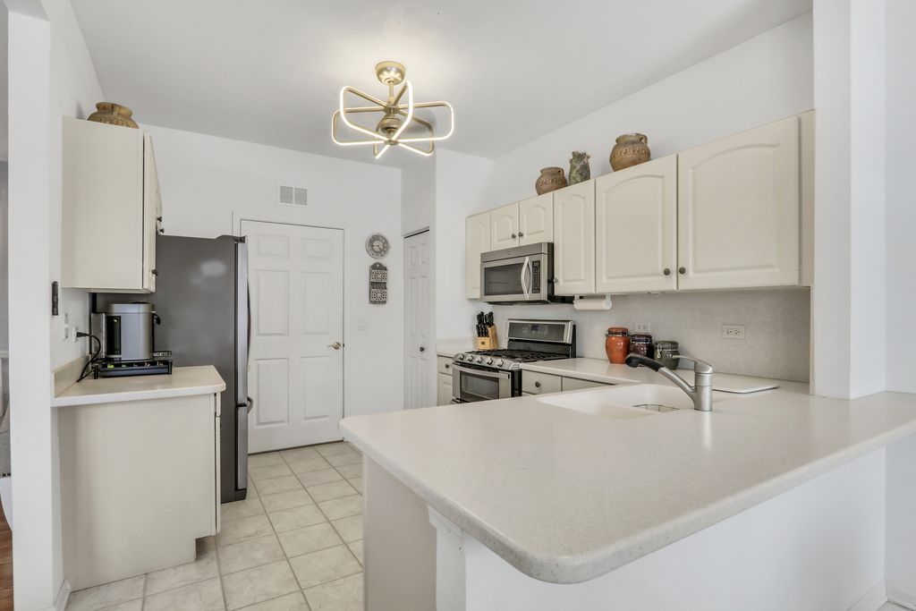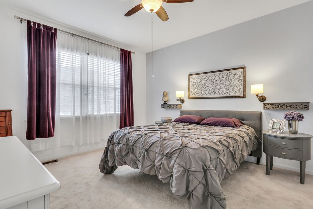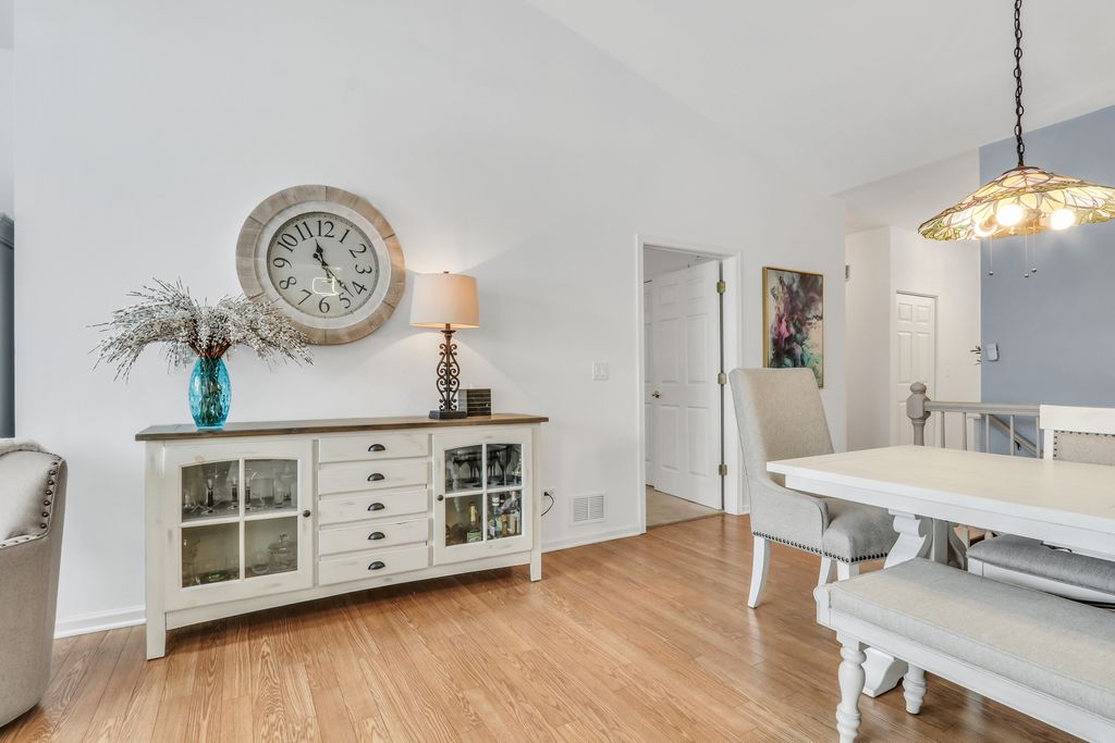 Welcome home to this beautiful townhome located in the Carillon North 55+ community. This light-filled home offers 3 bedrooms and 2 full bathrooms, including a private bedroom and bath in the finished basement-perfect for guests. The main living area features high vaulted ceilings, skylights, and an open dining and living room layout that creates an airy, welcoming atmosphere. Painted in today's most popular hues and accented with chic lighting throughout, the home feels both stylish and inviting. The spacious kitchen showcases white cabinetry, stainless steel appliances, solid surface countertops, ample table space, and a sliding patio door leading to the outdoor patio. Enjoy outdoor living with the retractable awning, installed late last year, ideal for relaxing or entertaining. The primary bedroom suite is a true retreat with a walk-in closet and attached full bathroom. Wood laminate flooring flows through much of the first-floor living area. Just off the kitchen is a convenient laundry room with a mudroom closet and direct access to the 2-car garage. The finished basement expands your living space with an oversized family room, additional bedroom, full bath, and generous storage. Chairlift to basement can stay. Recent updates include a water heater (10/25) and duct cleaning (4/25). A move-in-ready townhome offering comfort, style, and low-maintenance living-this is a must-see home. Be sure to check out the floor plans included in the photos.