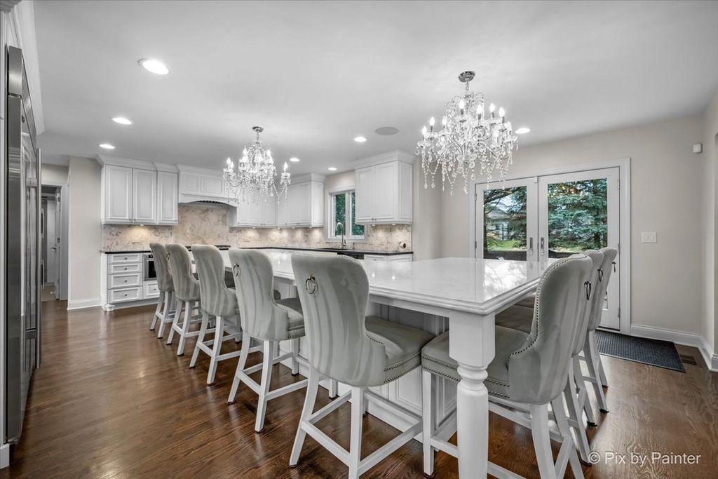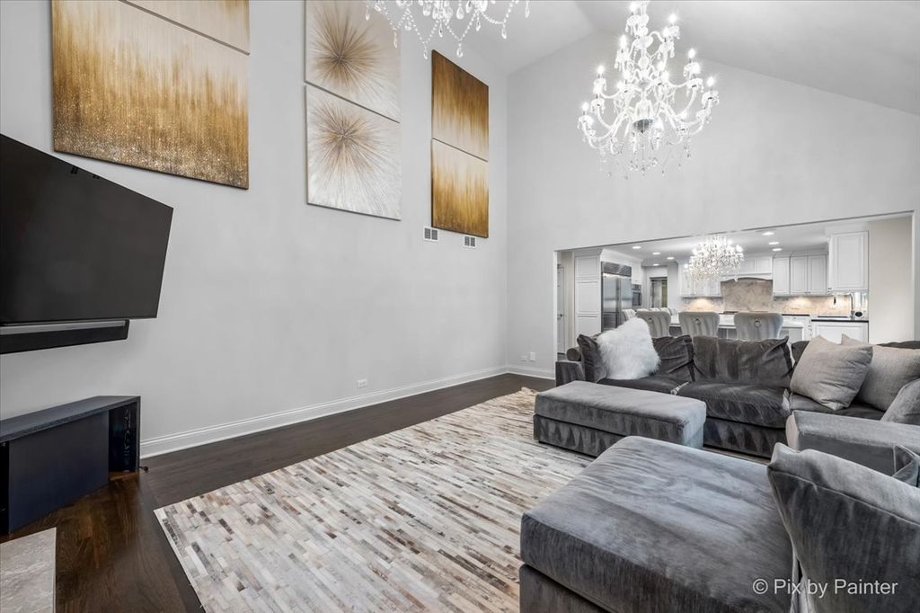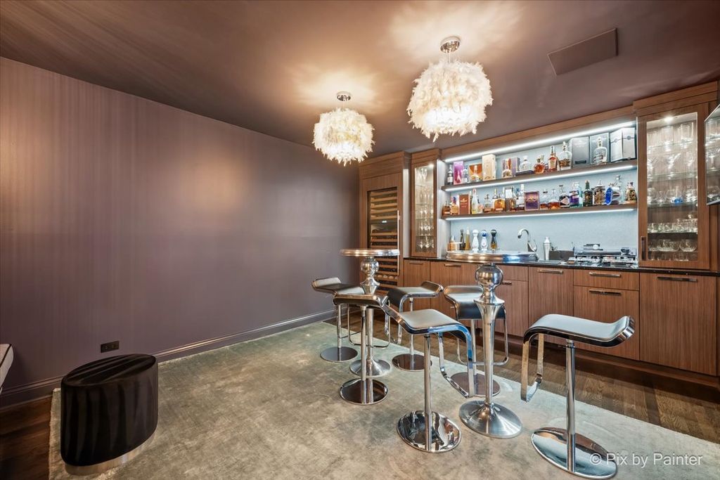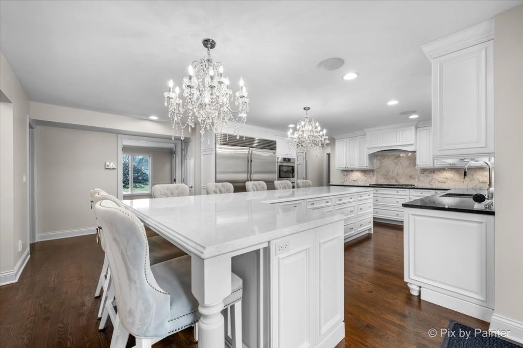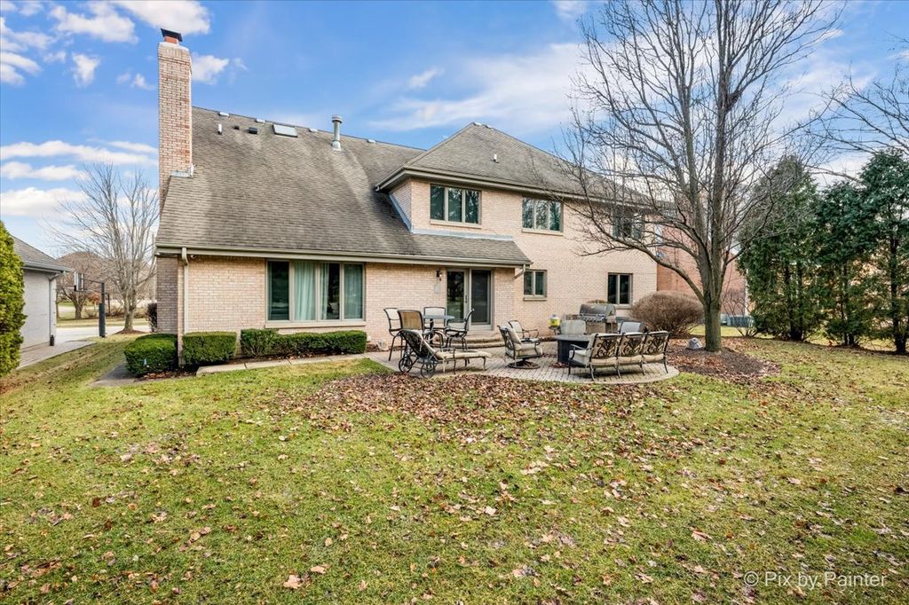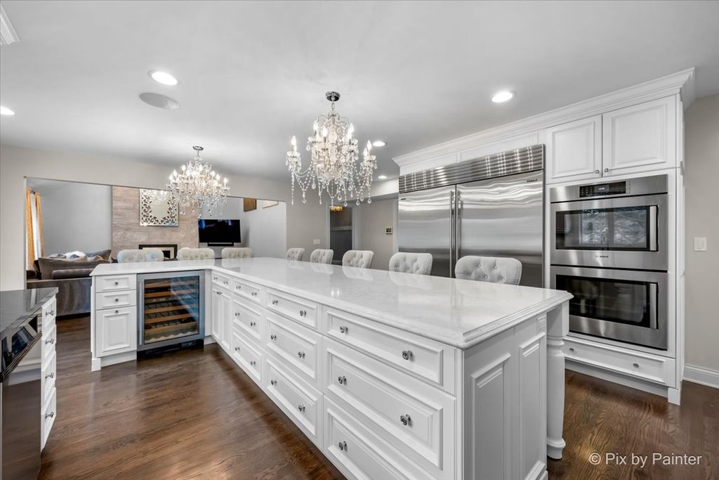 Experience refined living in the coveted country club lifestyle of Bloomfield Club, where luxury, comfort, and exceptional design converge. Meticulously renovated, this 5-bedroom, 4-bath residence seamlessly blends expansive entertainment spaces with warm, inviting areas for everyday living-perfect for both grand-scale entertaining and relaxed family fun. At the heart of the home is an exceptionally designed chef's kitchen featuring a 5-burner Wolf cooktop, Sub-Zero refrigerator/freezer, Miele dishwasher, Bosch microwave and double oven, gleaming quartz countertops, and an impressive 14-foot island ideal for gathering. The dramatic vaulted family room showcases a floor-to-ceiling modern fireplace, creating a striking yet comfortable focal point. A first-floor bedroom and full bath with curbless shower offer a perfect in-law or guest arrangement. Adding to the home's unique appeal is a chic, hidden-wall lounge complete with a built-in wet bar, wine cellar, ice maker, and mini refrigerator-an unforgettable space for entertaining. The primary suite is a true retreat, rivaling a five-star hotel, with double-bowl vanities, a freestanding whirlpool tub, oversized shower with rain fixture, separate makeup vanity, heated floors, and two large walk-in closets with custom organizers. Three additional generously sized bedrooms upstairs share a beautifully updated full hall bath. The finished basement expands the living space with a built-in TV area, pool table, wet bar, full bath, and a dedicated fitness room featuring NHL-equivalent mat flooring. Additional highlights include: Both HVAC systems replaced in 2019 ~ New windows (2016) ~ Hardwood floors throughout ~ First-floor laundry with LG front-load appliances ~ Skylights ~ Full brick exterior ~ Private backyard with paver patio ~ Located in award-winning School District 13 and Lake Park High School, with school bus service. Bloomfield Club amenities include a clubhouse, indoor and outdoor pools, fitness center with lockers and showers, a library, party room, and multi-sport court. Truly one of a kind-this is luxury living at its finest.