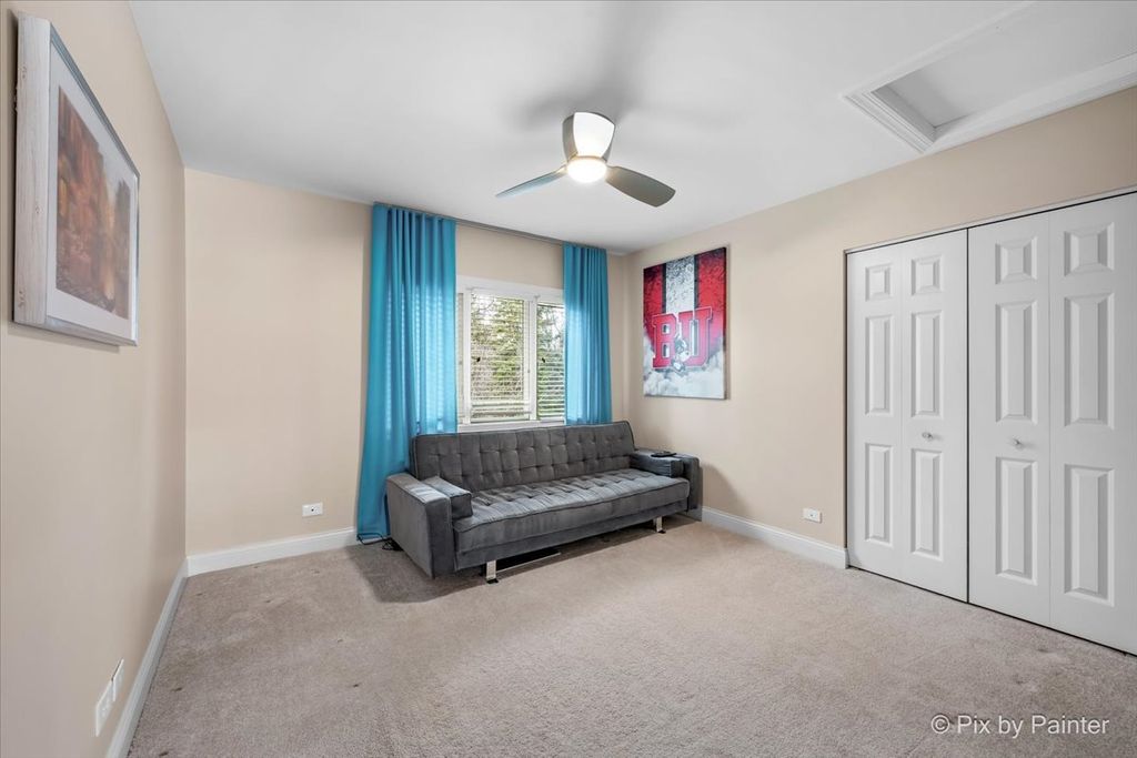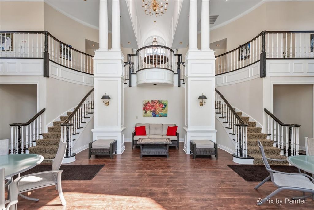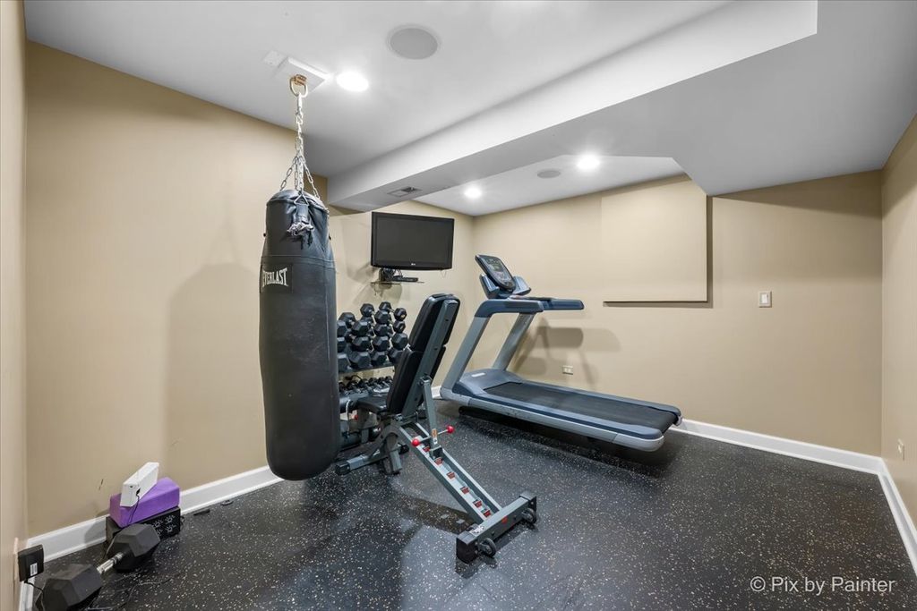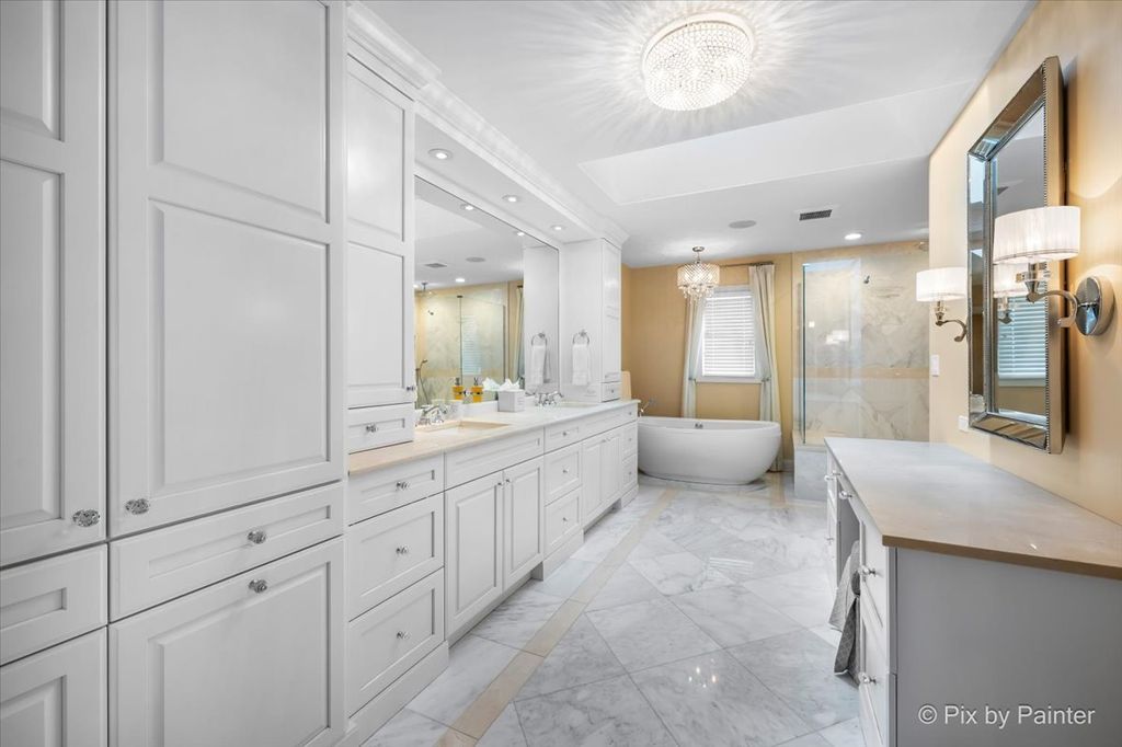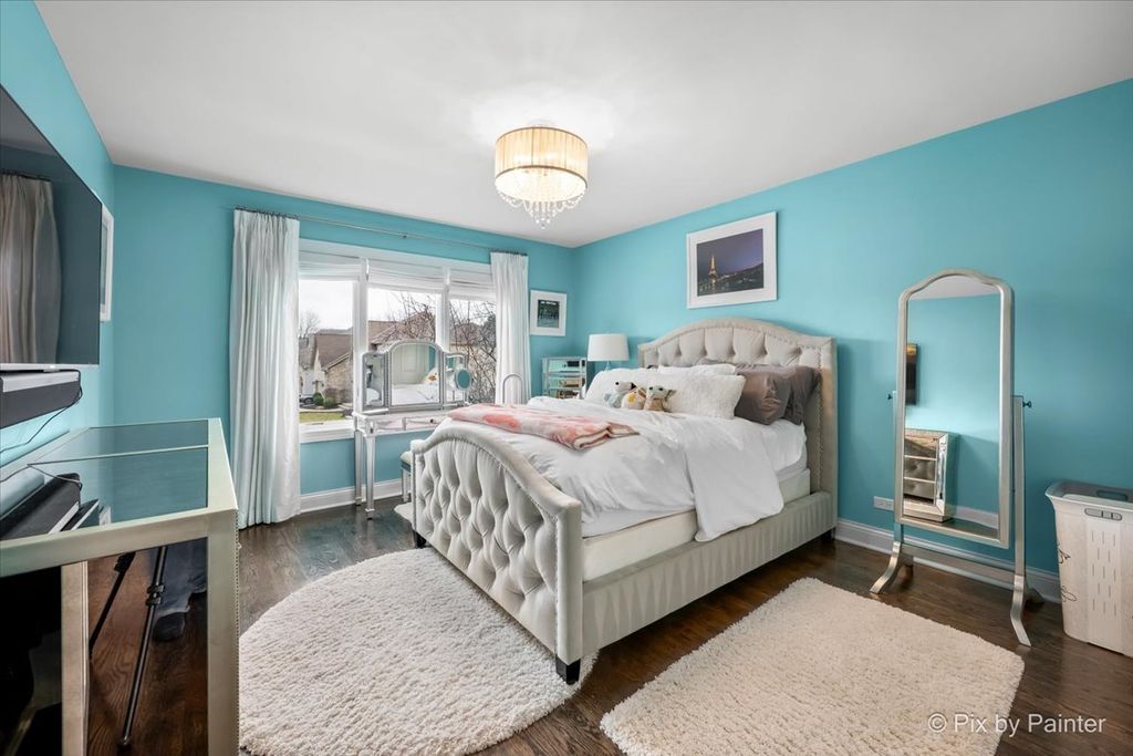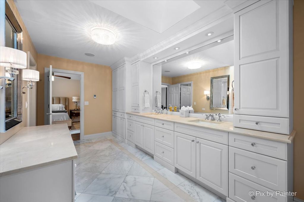 Experience refined living in the coveted country club lifestyle of Bloomfield Club, where luxury, comfort, and exceptional design converge. Meticulously renovated, this 5-bedroom, 4-bath residence seamlessly blends expansive entertainment spaces with warm, inviting areas for everyday living-perfect for both grand-scale entertaining and relaxed family fun. At the heart of the home is an exceptionally designed chef's kitchen featuring a 5-burner Wolf cooktop, Sub-Zero refrigerator/freezer, Miele dishwasher, Bosch microwave and double oven, gleaming quartz countertops, and an impressive 14-foot island ideal for gathering. The dramatic vaulted family room showcases a floor-to-ceiling modern fireplace, creating a striking yet comfortable focal point. A first-floor bedroom and full bath with curbless shower offer a perfect in-law or guest arrangement. Adding to the home's unique appeal is a chic, hidden-wall lounge complete with a built-in wet bar, wine cellar, ice maker, and mini refrigerator-an unforgettable space for entertaining. The primary suite is a true retreat, rivaling a five-star hotel, with double-bowl vanities, a freestanding whirlpool tub, oversized shower with rain fixture, separate makeup vanity, heated floors, and two large walk-in closets with custom organizers. Three additional generously sized bedrooms upstairs share a beautifully updated full hall bath. The finished basement expands the living space with a built-in TV area, pool table, wet bar, full bath, and a dedicated fitness room featuring NHL-equivalent mat flooring. Additional highlights include: Both HVAC systems replaced in 2019 ~ New windows (2016) ~ Hardwood floors throughout ~ First-floor laundry with LG front-load appliances ~ Skylights ~ Full brick exterior ~ Private backyard with paver patio ~ Located in award-winning School District 13 and Lake Park High School, with school bus service. Bloomfield Club amenities include a clubhouse, indoor and outdoor pools, fitness center with lockers and showers, a library, party room, and multi-sport court. Truly one of a kind-this is luxury living at its finest.
