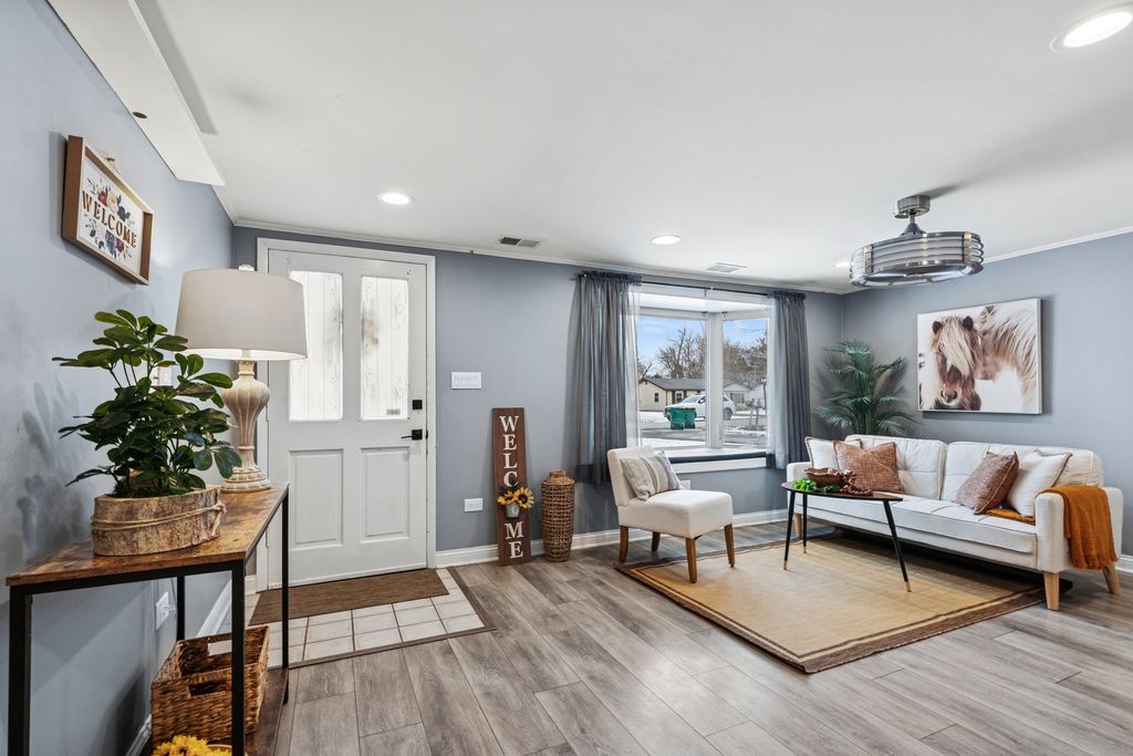 Beautifully remodeled 2 bedroom + 2 full bathroom ranch style home in unincorporated Lockport Heights with Lockport City water and very low property taxes! Extensive work has been done on this property in recent years, including complete kitchen remodel, adding spacious granite island, all stainless steal appliances, new cabinetry, garbage disposal, new window (2021-2025), adding brand new full bathroom (2021), new vinal plank flooring (2021), new drywall (2021), whole house painted (2026), new plumbing (2021) , all new lights, outlets and electric wiring (2021), Google Nest Doorbell & Google Smart Thermostat (2021) AC (2021), furnace (2026), new siding (2021), cozy gazebo (2023), 7 ft tall fence (2023), and more... Open floor plan creates flawless, comfortable connecting between living room and oversized kitchen, with plenty of counterspace - every chef's dream!!! Fully fenced in yard, with cozy gazebo, and mature trees will be your summer oasis! Great school district! Conveniently located near parks, schools, Metra, I-355, I-55, shopping, dining, and Lewis University! ***Property sold AS-IS***