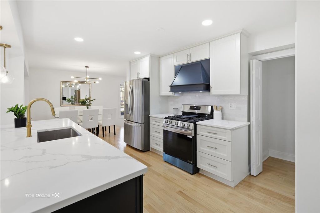 Stunning and impeccably maintained four-bedroom, two-bath home located on a charming, tree-lined street. Offering approximately 2,300 square feet of beautifully designed living space, this residence blends timeless elegance with modern comfort. Every detail has been thoughtfully curated, featuring high-end materials and refined finishes throughout. The expansive open-concept layout is ideal for both everyday living and entertaining, showcasing elegant cabinetry, a large quartz island with breakfast bar, a cozy fireplace, and abundant space for family gatherings and hosting guests. Perfectly situated near Old Orchard Mall, schools, premier shopping and dining, grocery stores, parks within walking distance, convenient access to I-94, and just minutes from downtown Skokie. This exceptional home offers luxury, comfort, and an unbeatable location-an opportunity not to be missed.