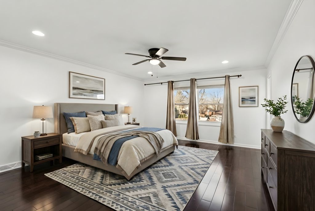 Set on a cul-de-sac, just minutes from downtown Glenview, the train station, and within the sought-after Glenview school district, this two-story 4BR/3.5Bth colonial offers approximately 2,500 sq. ft. of living space plus a full finished basement. The main-level layout provides excellent flow, combining private areas with open sections ideal for family gatherings and entertainment. Beautiful newer hardwood floors and recessed lighting throughout. An abundance of windows and sliding doors allow for natural light to fill the space. The focal point is the 2020 home addition featuring an incredible kitchen with high ceilings, custom cabinetry, quartz counters, and high-end stainless-steel appliances. The expansion was professionally completed by a licensed contractor with all required Village permits. A heated sunroom addition could perfectly function as an extra office for business use, as it has an independent exterior entry and its own access to a secondary private side yard. All upper-level bedrooms are extremely spacious, and the primary suite includes a full bath and walk-in closet. The full finished basement features a large open recreation area and a separate bonus room with adjoining newer bathroom. Ample storage is found throughout, and the utility room includes a recently installed (2019/2020): HVAC system, water heater, sump pump with battery backup, and ejector pump. A large mudroom with laundry sits just off the spacious 2.5car attached garage. Newer roof (2020) over the kitchen addition, garage and front porch plus recently replaced soffits, gutters, and downspouts. The fully fenced main yard offers a huge stone patio, and tall shrubs along the fence line for added privacy. The property has been well maintained and thoughtfully updated by the owners over the past 10 years. First time on the market - truly a rare find in Glenview's low-inventory real estate environment.