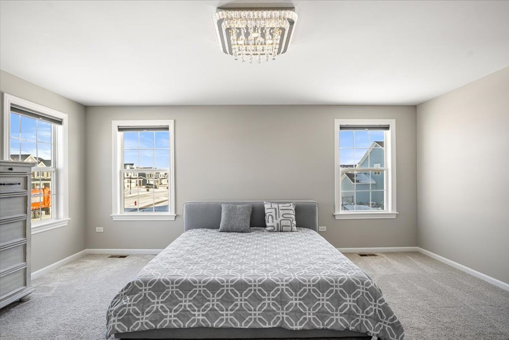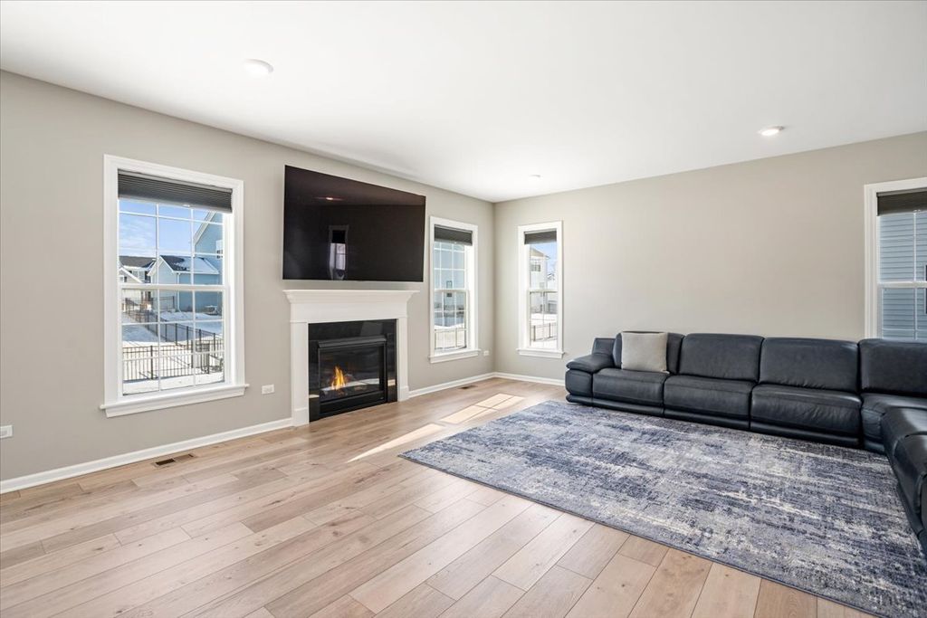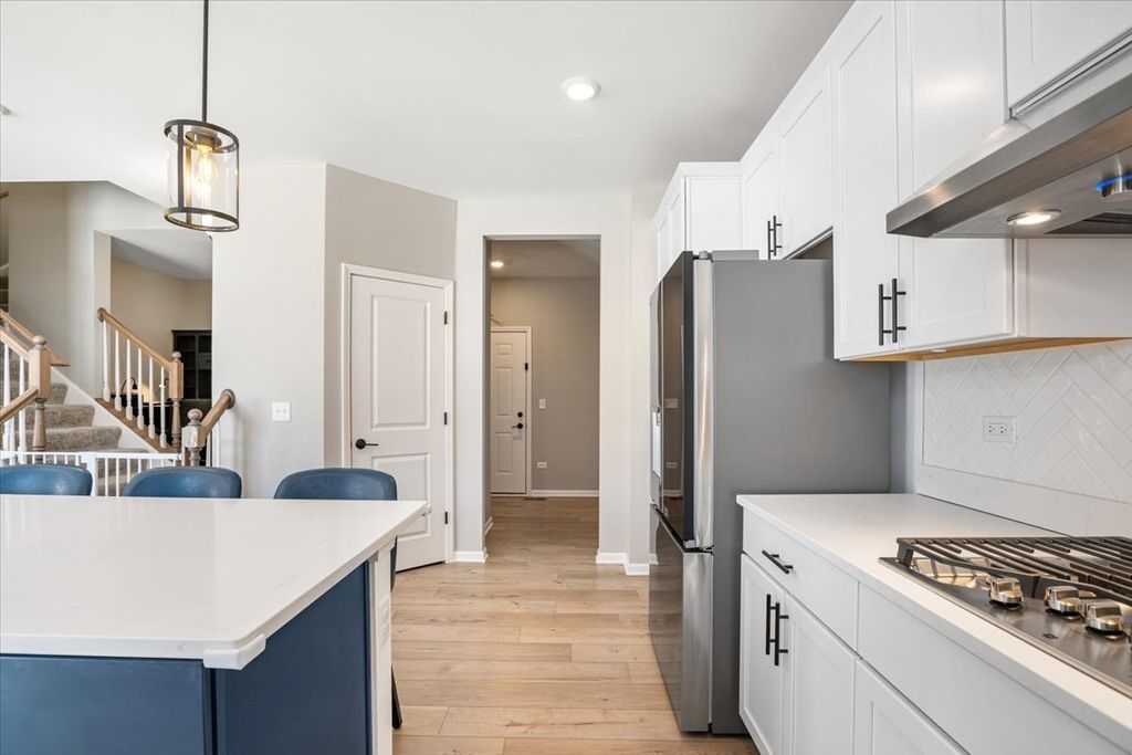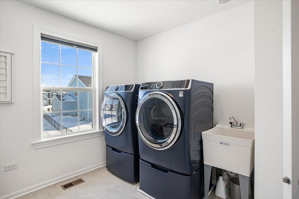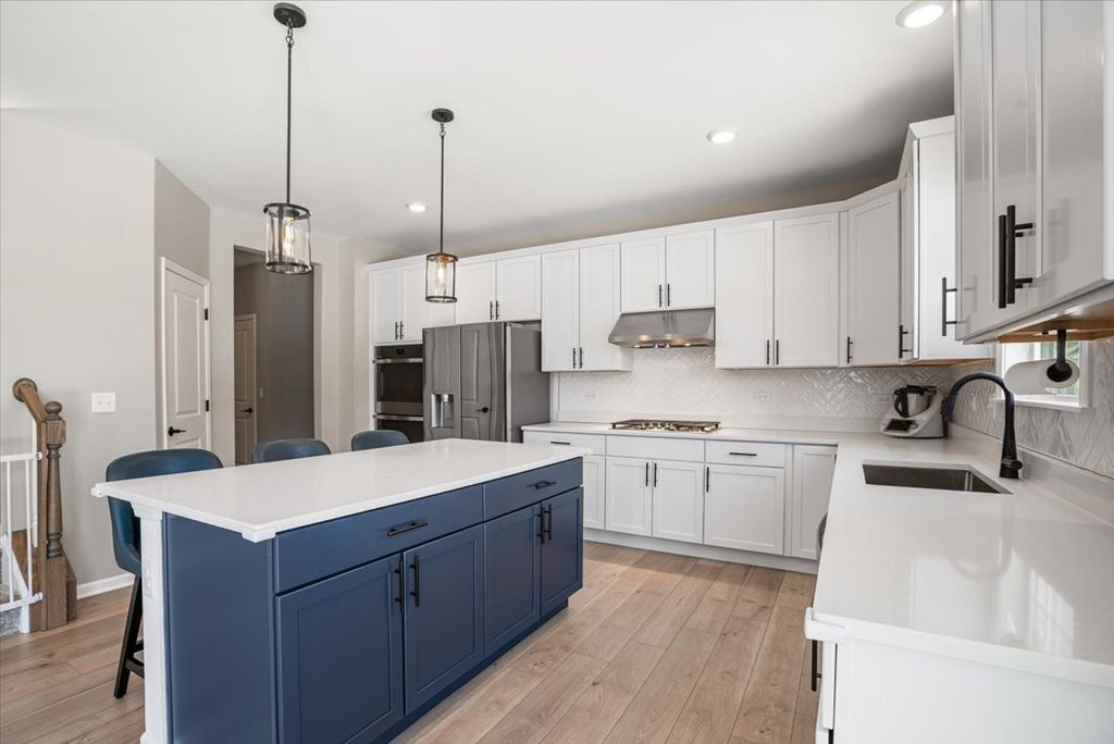Welcome home to 11306 Kinney Way, an exceptional newer construction residence in sought-after Huntley! Featuring the popular Eastman floor plan by M/I Homes, this stunning property blends timeless elegance with modern design and thoughtful functionality. Boasting a beautiful Colonial Revival exterior, this home offers a spacious, heated 3-car garage, 4 bedrooms, 2.5 bathrooms, a main-level flex room, 9-foot ceilings, and a full basement, providing space and versatility for today's lifestyle. Step inside to a dramatic two-story foyer that sets the tone for the impressive interior. Entering from the garage, you'll appreciate the convenient mudroom with drop zone, perfect for organization and everyday living. At the heart of the home is the gourmet kitchen, featuring 42" white cabinetry, a contrasting island, quartz countertops, designer backsplash, and a full suite of GE stainless steel appliances, including a smart refrigerator, double oven, cooktop, microwave, dishwasher, and brand-new washer and dryer. This space is ideal for entertaining, hosting family gatherings, and enjoying daily life. Just off the kitchen, a planning center provides the perfect workspace for homework, remote work, or managing household tasks. The main level showcases wood-look laminate plank flooring throughout, leading into the inviting family room with a fireplace and elegant three-piece mantel, creating a warm and welcoming atmosphere. Upstairs, you'll find the luxurious owner's suite and three additional bedrooms, each with its own walk-in closet. The spa-inspired owner's bath features a separate soaking tub and shower for ultimate relaxation. Recent upgrades include new window casings, custom blinds throughout, and brand-new chandeliers. The home has been freshly painted, all bathroom fans have been replaced, and every closet features newly installed shelving. Additional highlights include a full basement with rough-in plumbing for a future bathroom, a rough-in radon system, and an insulated smart home system, offering comfort, efficiency, and future potential. This home stands out on the block with professionally installed exterior night lighting and a full irrigation system-features found in only a few neighboring properties. Enjoy enhanced curb appeal, added security, and a beautifully maintained lawn all season long. These premium upgrades offer both comfort and lasting value. This home delivers elegant design, modern amenities, and exceptional craftsmanship in one of Huntley's most desirable communities. A rare opportunity to own a beautifully upgraded, move-in-ready newer construction home-don't miss your chance to make this incredible property yours!