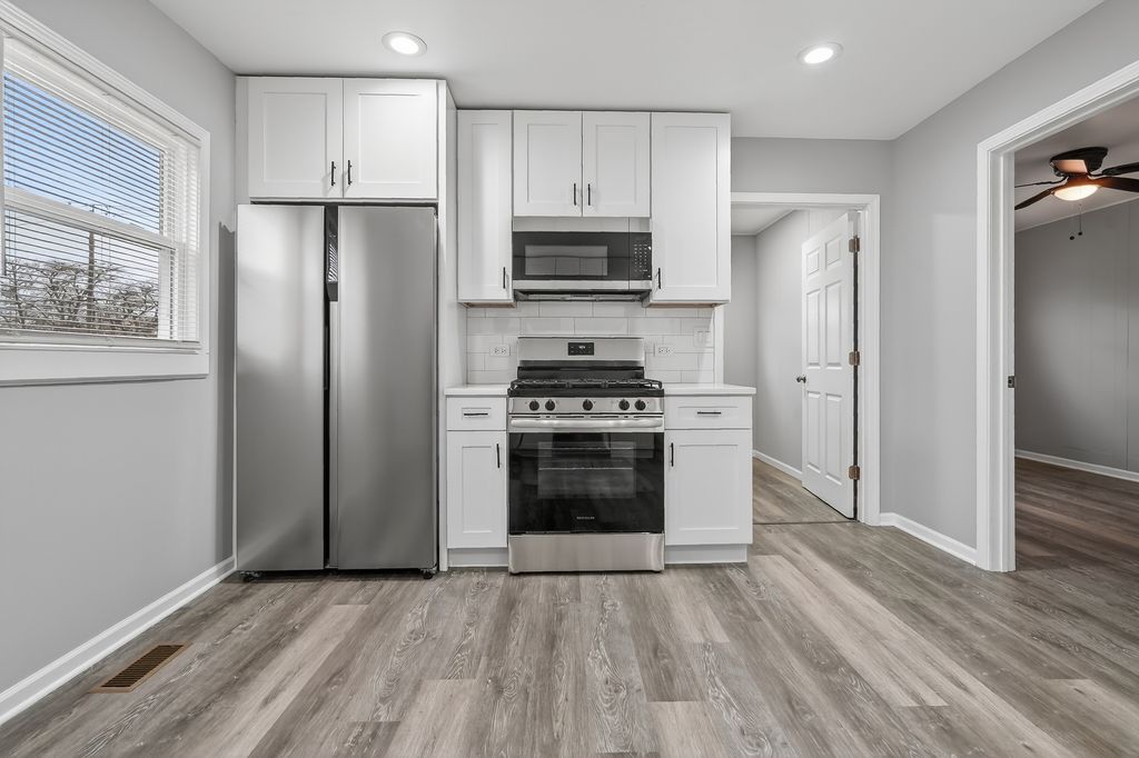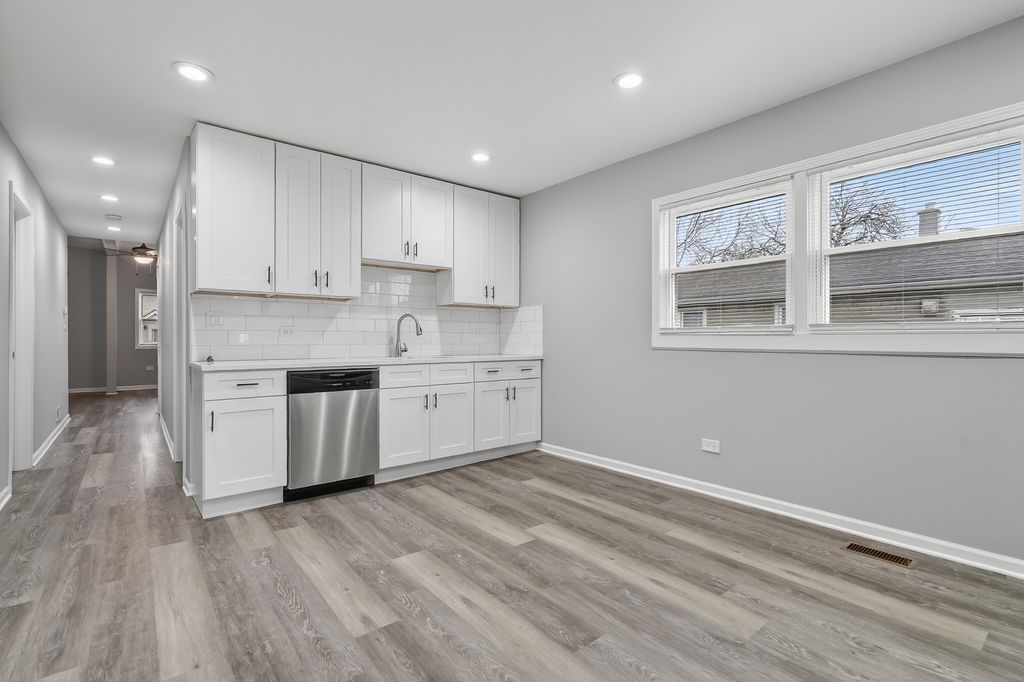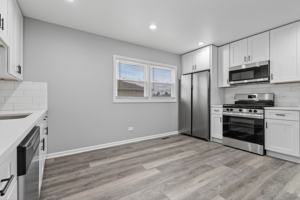 Why pay rent when you can own? Welcome to this beautiful, solid bungalow located in the desirable Avalon Trails area of Hegewisch. Situated on a well-maintained, tree-lined block and just a short walk to Mann Park, this home offers exceptional access to extensive park amenities including two gyms, an indoor pool, woodshop, ball fields, tennis courts, spray pool, playground, roller hockey court, and a fieldhouse with year-round programs, seasonal sports, fitness classes, and special events. This charming, sun-filled home is move-in ready and ideal for first-time buyers, downsizers, or investors. Thoughtfully maintained and freshly painted in 2025, the property features three bedrooms and one full bathroom. The open-concept living and dining area showcases new flooring completed in 2025, creating a bright and welcoming atmosphere. The beautifully updated kitchen, completed in 2025, is a true highlight with new cabinets, sleek quartz countertops, hardwood floors, and brand-new stainless steel appliances, along with an eat-in dining area perfect for everyday living and entertaining. The bathroom has also been updated in 2025 with modern tile work and new fixtures. Additional features include a two-car detached garage, nicely updated interiors, and a prime location surrounded by mature trees and community amenities. Hegewisch provides easy access to I-80/94, nearby Indiana, and the South Shore Line (commuter rail to downtown Chicago and Indiana), appealing to commuters who want flexibility. This move-in ready home is not to be missed-schedule your private showing today.