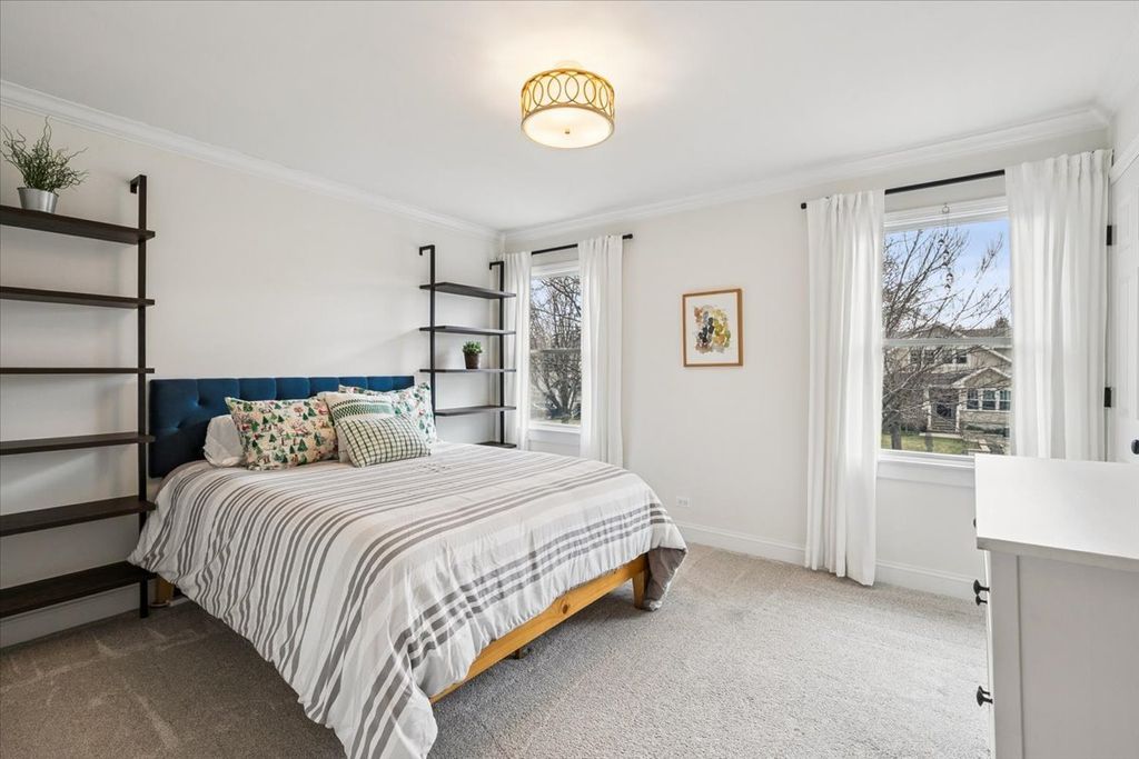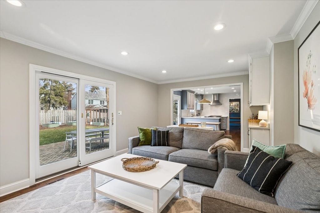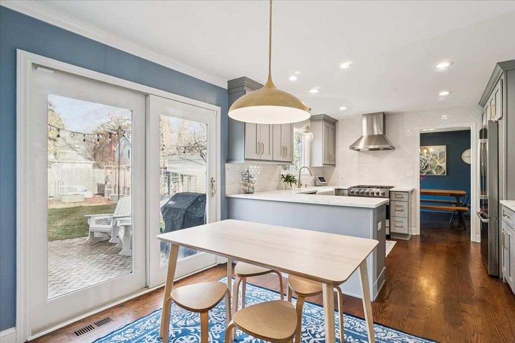 Perfectly positioned in East Lake Bluff, just east of downtown shops, dining, and the Metra - and just west of Lake Michigan and the beach - this beautiful home offers an exceptional blend of walkable convenience, timeless charm, and modern renovation. Updated in 2021, this home is truly move-in ready, showcasing thoughtful design, quality craftsmanship, and attention to detail throughout. The stunning kitchen features quartz countertops, abundant storage, a Viking range with hood, a Bosch dishwasher, Kohler fixtures, designer lighting, and wide-planked oak hardwood floors. The kitchen opens seamlessly to the family room, with a wood-burning fireplace (gas starter), custom shelving, and direct access to the brick patio - ideal for everyday living and entertaining. A separate dining room with a picture window overlooks the backyard, while the generously sized living room offers additional built-in shelving and is an inviting gathering space. The attached two-car garage and mud room provide rare year-round convenience. The primary suite includes a beautifully organized walk-in closet and a renovated en-suite bath with dual vanity and mosaic tile. Three additional spacious bedrooms and a second updated full bath with dual vanity complete the second floor. The lower level offers exceptional flexibility with high ceilings, perfect for a playroom, office, gym, or future bedroom, along with a full bathroom and laundry room. Outdoor living shines with a brick paver patio, raised garden planters ready for planting, and a charming chicken coop for fresh eggs. The sunny front porch delivers front-row seats to Lake Bluff's Fourth of July parade - a treasured village tradition. Walk to Artesian Park, the middle school, bike path, beach, and all that downtown Lake Bluff has to offer. This is a rare opportunity to own a beautifully updated, impeccably maintained home in one of Lake Bluff's most desirable locations.
