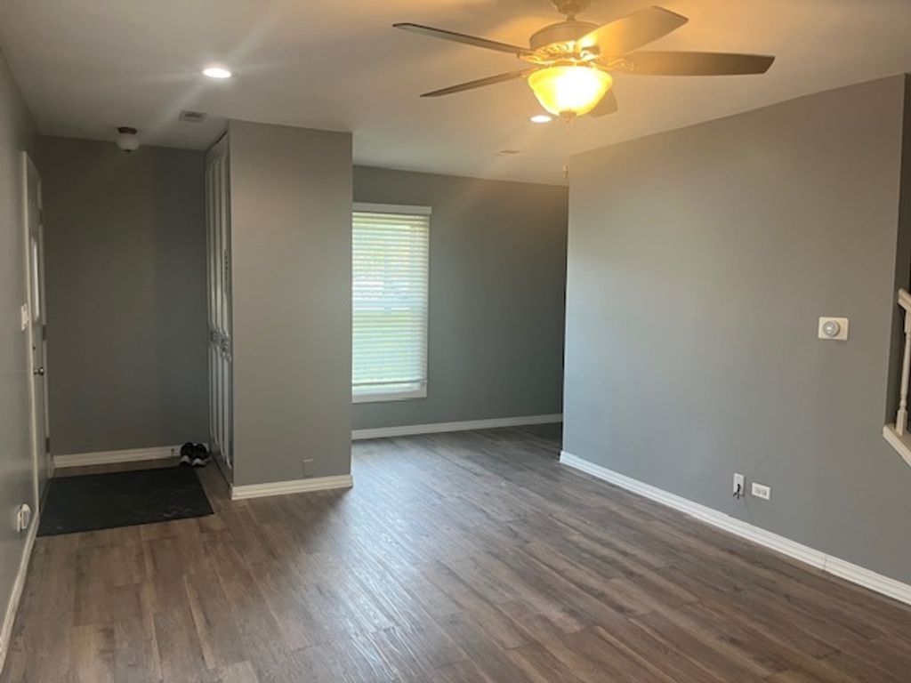 Beautifully Updated 3-Bedroom Townhome with Full Basement. Welcome to this tastefully updated two-story 3-bedroom, 1.5-bathroom home, complete with a full basement and modern finishes throughout. The spacious master bedroom features a large walk-in closet, a generous dressing area, and shared access to the updated main bathroom. Enjoy outdoor living with a private patio and a large shared play area-perfect for families or entertaining. Located within walking distance to parks, a community pool, sports facilities, and shopping, this home offers both convenience and lifestyle. Recent Updates Include: Kitchen, flooring, bathrooms, and paint (2022 & 2024), Furnace (2021), A/C unit (2023), Front and patio doors (2023). All stainless steel appliances (2022), Carpet on second level (2023), New light fixtures, recessed lighting, and ceiling fans (2022), Water heater (2019) Additional perks include two assigned parking spaces and ample visitor parking. Don't miss this move-in ready gem-schedule your tour today!