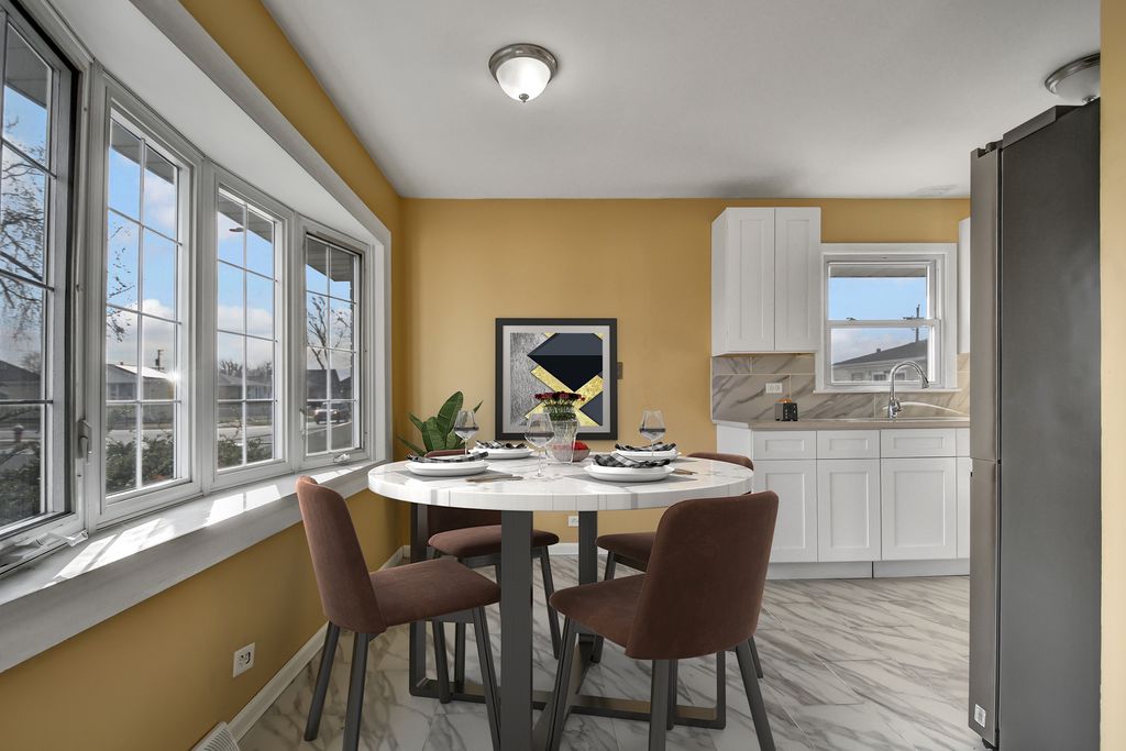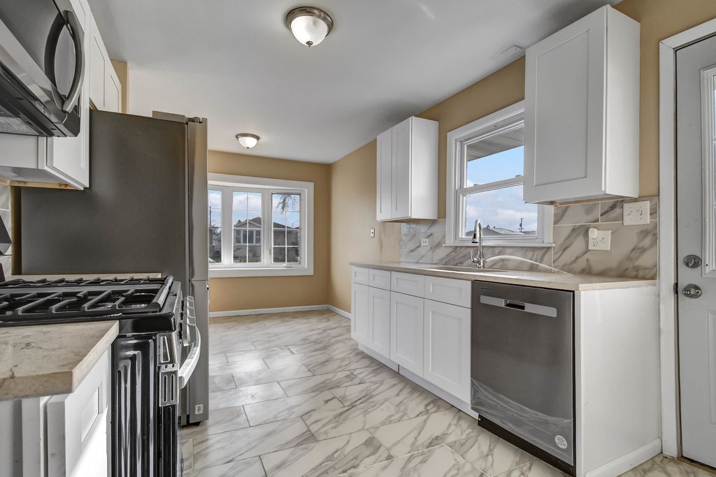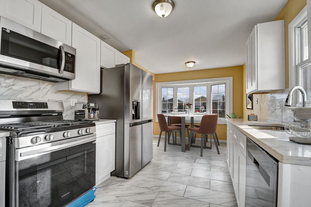 Sunshine's favorite spot is this bright and inviting split-level home featuring a nicely updated, truly move-in-ready interior. Step inside to a welcoming living room highlighted by a large bay window and warm wood-laminate flooring that opens into the brand-new kitchen, complete with modern white cabinetry, quartz countertops, stainless steel appliances, and a bright dining area accented by a second bay window. Upstairs offers three comfortable bedrooms, all with wood-laminate flooring, along with a recently updated full bathroom. The lower level features a relaxing family room, a convenient half bath, and a utility/laundry room equipped with washer and dryer. Additional improvements, per seller, include a furnace and central air approximately four years old, a one-year-old water heater, and windows replaced about three years ago. The privacy-fenced backyard includes a two-car garage with a convenient side "party door" opening to an adjacent patio, perfect for outdoor gatherings. Ideally located just minutes from Midway Airport and within walking distance to schools and parks, this home is easy to see and easy to buy-schedule your private showing before it's gone.