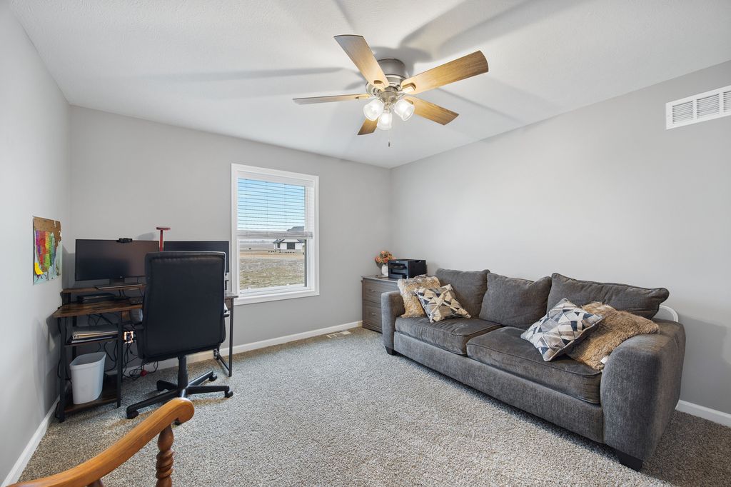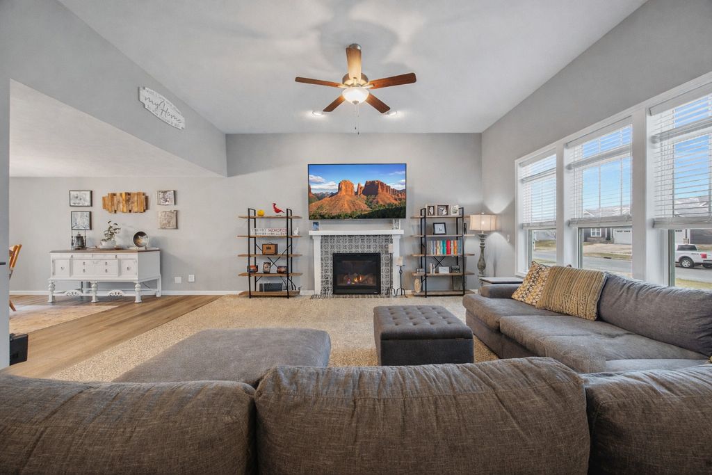 Welcome to 2745 Sedona Drive in Normal - where breathtaking beauty meets luxurious living! Located in the highly sought-after North Bridge subdivision, you'll enjoy peaceful walks along scenic paths that wind around serene neighborhood ponds. This gorgeous home offers 4 bedrooms and 3.5 bathrooms with an abundance of natural light throughout. One of the standout spaces is the grand living room, featuring oversized front-facing windows and custom blinds that flood the space with sunshine. The main floor is designed for easy living, highlighted by a spacious primary suite complete with a spa-like bathroom featuring double vanities, a linen closet, and a walk-in shower with custom tile work. Convenient main-floor laundry adds to the home's functional layout. The beautifully appointed kitchen is a true showstopper with quartz countertops, quality cabinetry accented by brushed nickel hardware, GE stainless steel appliances, and a large basin kitchen sink with a window view overlooking the backyard. The island offers additional counter space and features storage on both sides plus seating. A generous pantry provides ample space for food and small appliances. Upstairs, you'll find two large bedrooms with nice size closets. A full bathroom with quality cabinetry conveniently located between the bedrooms. The finished basement has a spacious family room perfect for movie nights, game days, or relaxing evenings. You'll also find a 4th bedroom with an egress window, a full bathroom with custom cabinetry and walk-in shower, plus a large storage room. Recent updates include a 6-foot privacy fence, stamped concrete patio, and landscape accent lighting in the front beds. This home is immaculate, thoughtfully designed, and truly move-in ready. You'll fall in love with everything about living on Sedona in Normal, Illinois!
