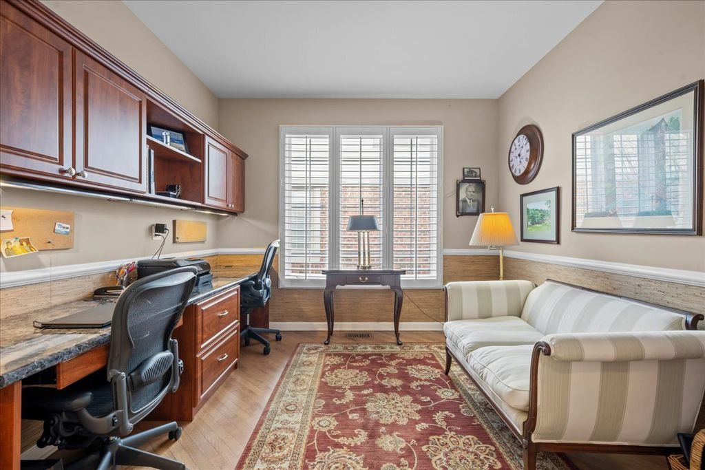 The Heatherfield enclave in Glenview...You've dreamt about it...Now's your rare chance to do something about it...Make it your own! This lovely Essex model home welcomes you with its covered front porch leading to a dramatic 2-story entrance, creating a voluminous feel upon entering. Entertain with grandeur in the formal living room with its vaulted ceiling and floor-to-ceiling windows, before hosting your guests in the spacious formal dining room. The light and bright kitchen has been updated with quartzite countertops and a timeless tile backsplash, and has a generous eat-in area creating convenience for your everyday. Open to the large family room with gas fireplace, both rooms are flooded with sunlight which can be managed with beautiful, custom plantation shutters. A sliding door leads to the bluestone patio, surrounded by lush landscaping. Savor your morning coffee or evening drink on the screened-in porch, a true highlight of the home. A handsome office with built-in desks is a welcome place to conquer your work to-dos, and a well-placed powder room and laundry/mudroom complete the 1st floor. On the 2nd floor, you'll find the expansive primary suite with sitting area, which features 2 walk-in closets, and a large ensuite bath with a dual-sink vanity and separate jacuzzi tub and shower. 2 more family bedrooms on the 2nd floor share a serene hall bath. The finished basement has a wide-open rec room, a 4th bedroom, a full bathroom, as well as a bonus room and storage galore. Plenty of space to spread out and live large!