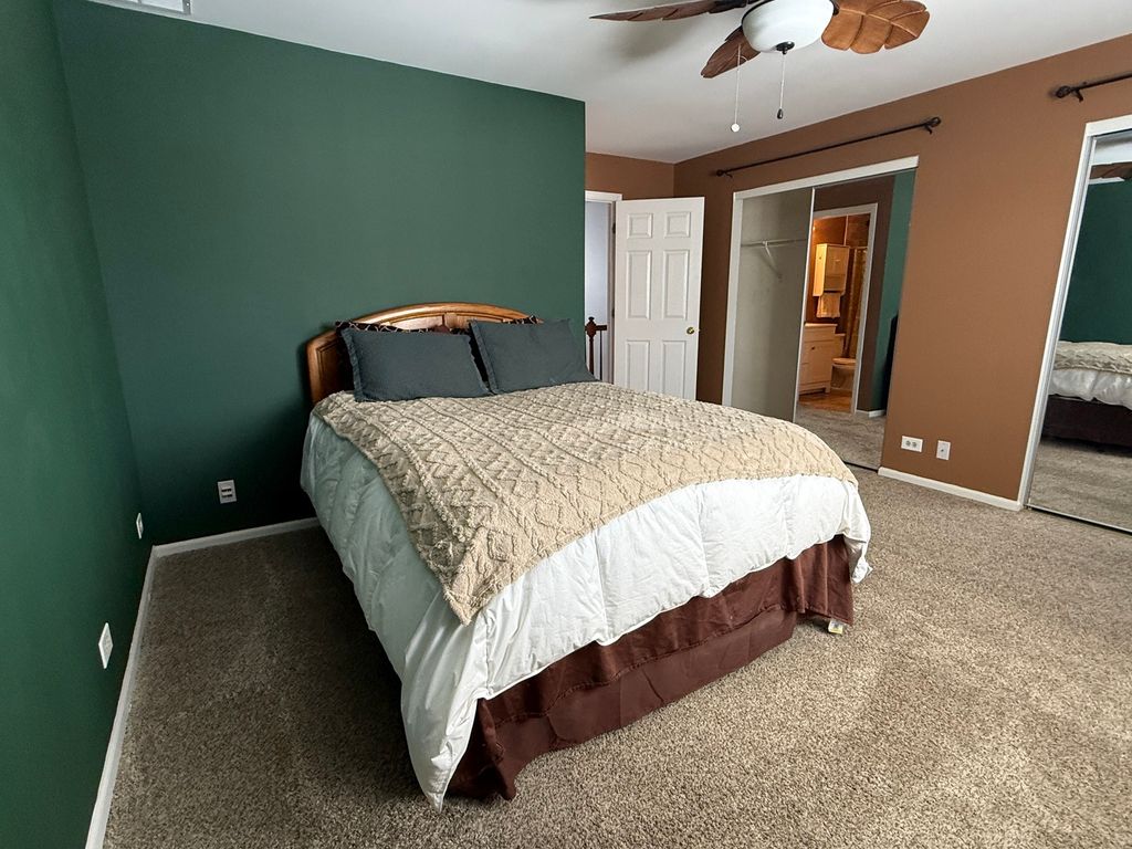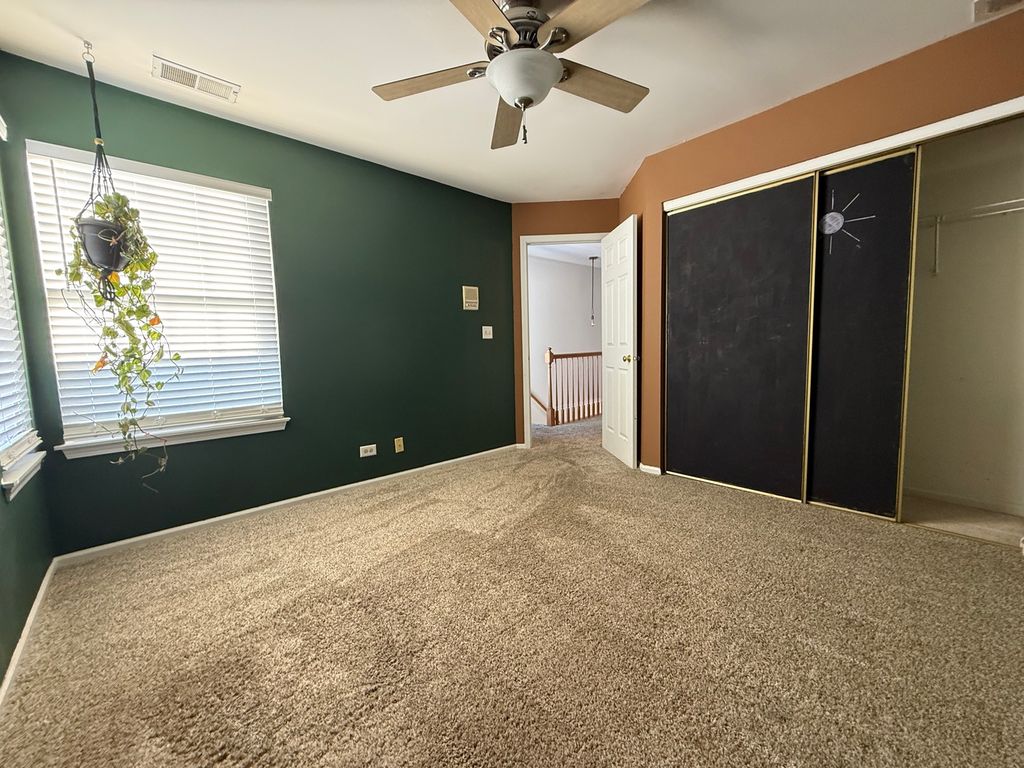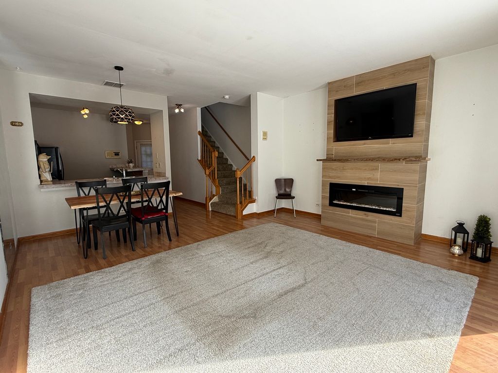 This 2 bedroom 2 1/2 bath in Bridlewood has spacious, bright rooms with 9 foot ceilings on first floor! Gorgeous electric fireplace with live wood mantle in living room! Large walk-in pantry/storage area. Main bedroom has double mirrored closets and updated full bath. Attached garage with storage. 1st floor powder room. 2nd floor laundry. New AC 2023. Ideal location with easy access to tollway and shopping. Easy to show. Move right in. Quick close possible!