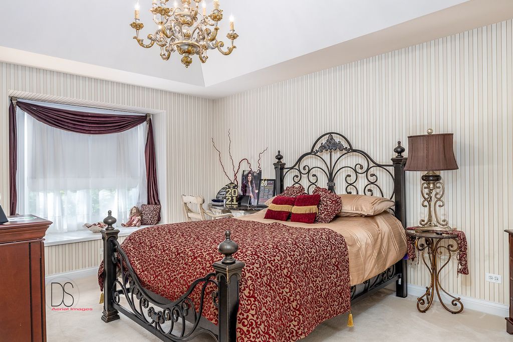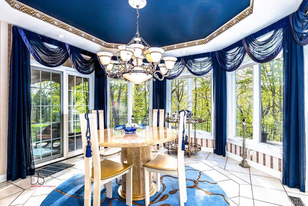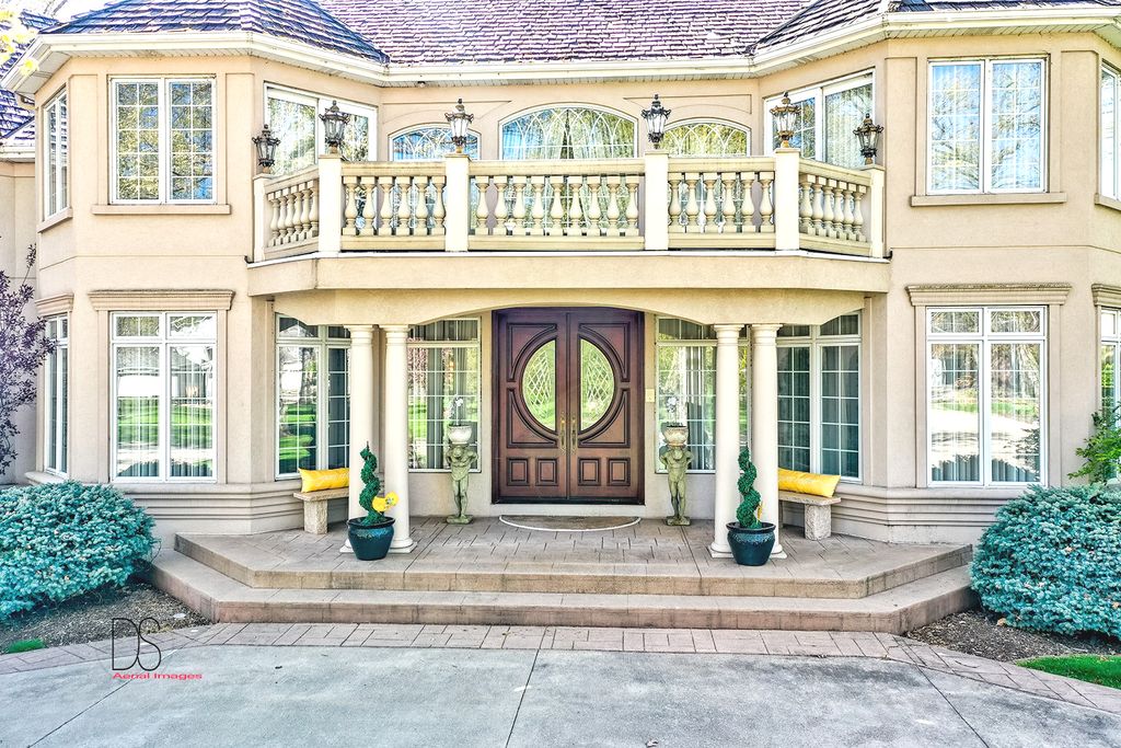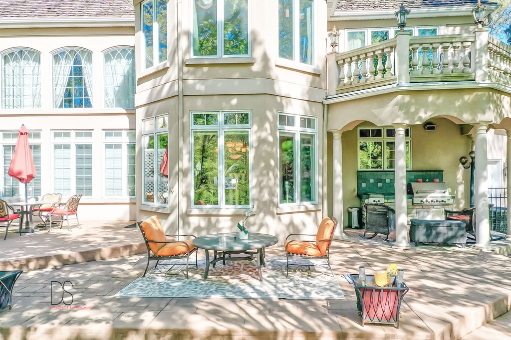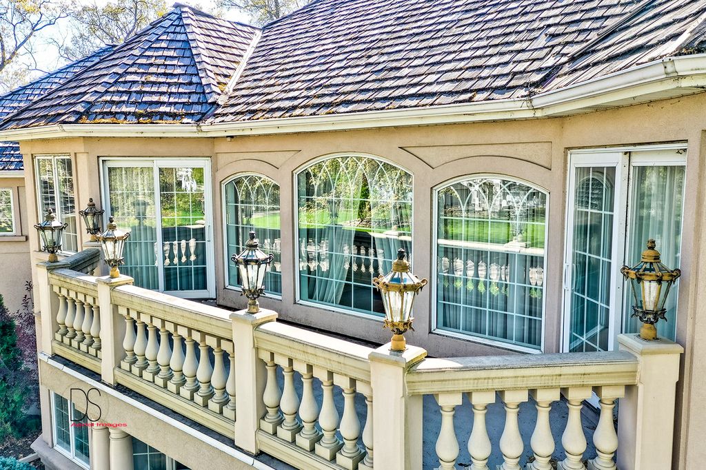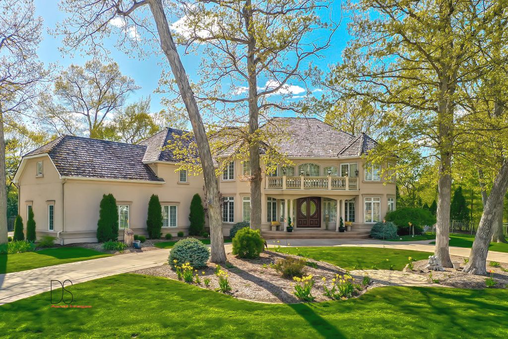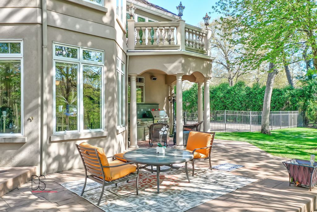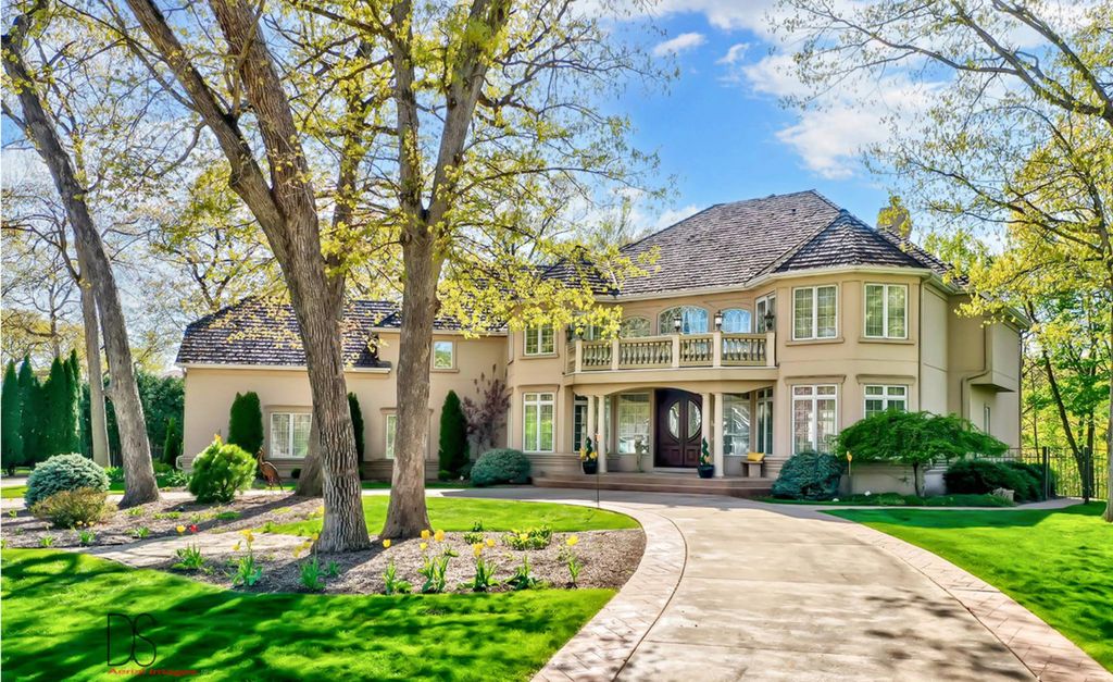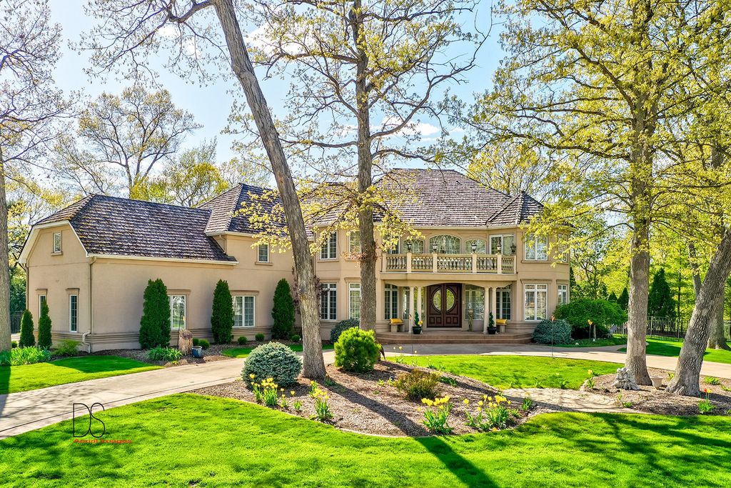 Stunning custom-built home boasting over 5 bedrooms and 5 bathrooms across two stories, nestled on nearly .83 acres of meticulously maintained grounds with mature trees within the prestigious Oak Ridge Golf course development. This prime location is conveniently close to Utica's dining and shopping venues, the entrance of Starved Rock State Park, and major highways for commuters. Upon entry through the impressive 2-story foyer, you're greeted by an open, double curved staircase and a spacious open floor plan. Flanking the foyer are the formal dining and living rooms, leading to the main floor family room featuring a wet bar and a custom fireplace with an imported mantel. Imported chandeliers with remotes and custom window coverings add to the elegance of this home. The eat-in cook's kitchen is a chef's delight, boasting glazed maple cabinetry, upscale stainless steel appliances, hard surface countertops, and a granite backsplash. Adjacent is a breakfast room which leads to yard and wooded views, walk-in pantry, powder room, and laundry room. A main floor bedroom with a private, full bathroom completes the main level. Upstairs, you'll find two bedrooms with a Jack and Jill bathroom, a junior suite with a walk-in closet and private full bathroom, and a one-of-a-kind primary suite featuring a private balcony, fireplace, and sitting area. The luxurious primary bathroom boasts a chandelier, cherry cabinetry, double sinks, skylights, an elegant soaking tub, and a multi-person walk-in shower. The primary suite also features an expansive walk-in closet with custom organizers, an office area, and an in-suite laundry area. The lower level is beautifully finished with additional quality features including a recreation room, exercise room, additional wet bar, an additional bedroom or office, built-in wine cellar, and a game room with a pool table. A 4-car attached garage provides ample space for vehicles and storage. The private backyard oasis backs up to woods for a serene retreat and features a multi-level terrace, a built-in gas grill and bar with cabinetry, perfect for outdoor living and entertaining. The fenced-in rear and side yard add privacy and security.