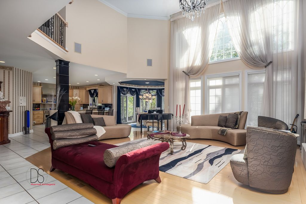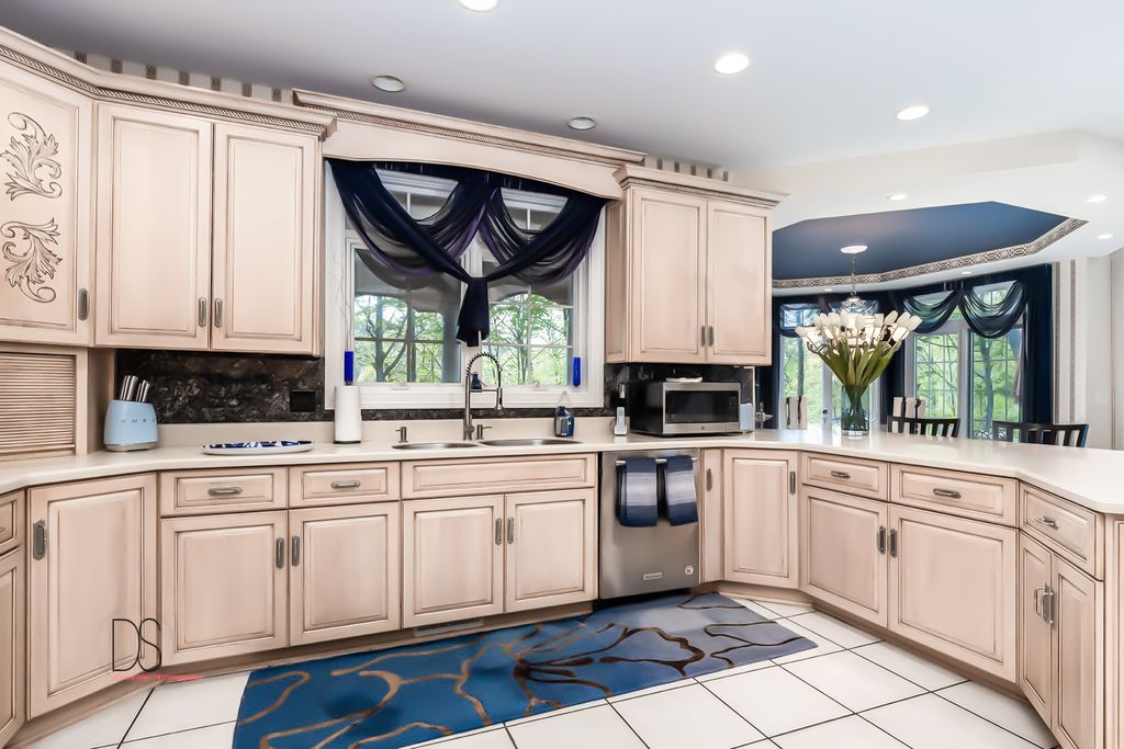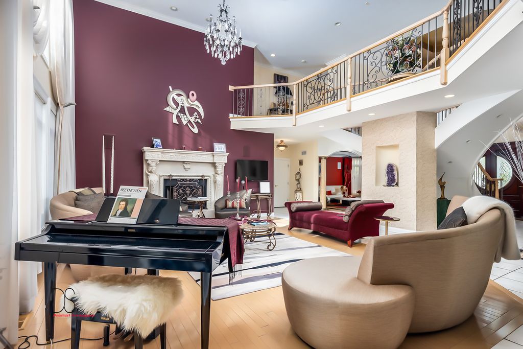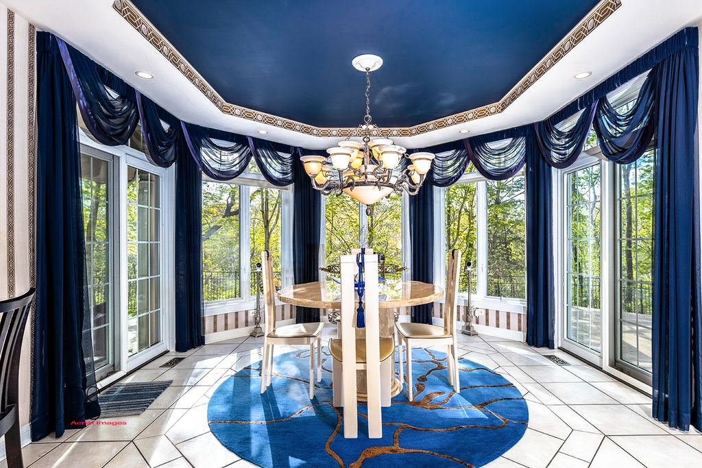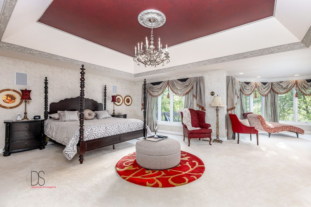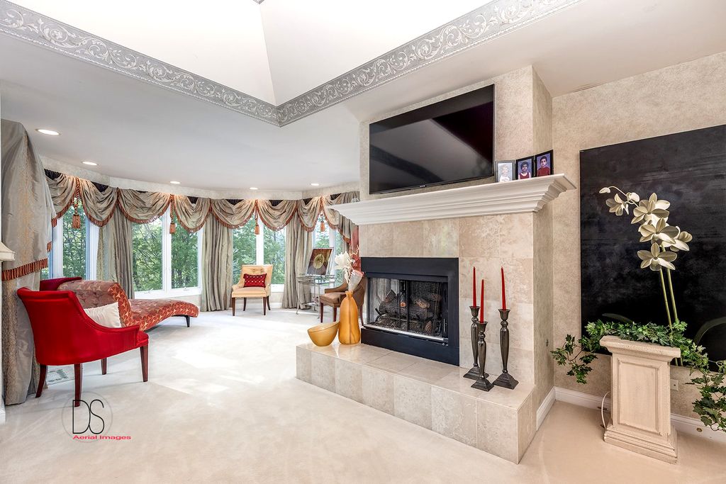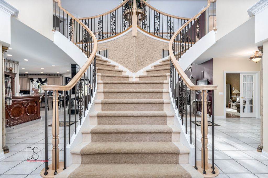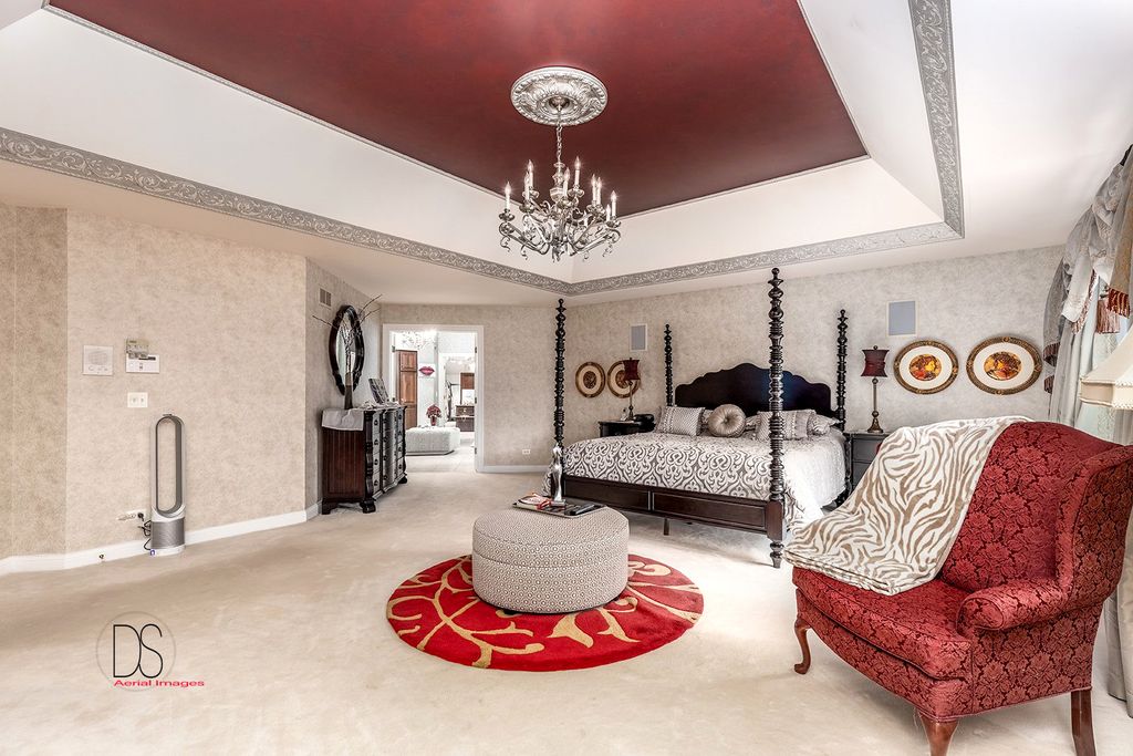 Stunning custom-built home boasting over 5 bedrooms and 5 bathrooms across two stories, nestled on nearly .83 acres of meticulously maintained grounds with mature trees within the prestigious Oak Ridge Golf course development. This prime location is conveniently close to Utica's dining and shopping venues, the entrance of Starved Rock State Park, and major highways for commuters. Upon entry through the impressive 2-story foyer, you're greeted by an open, double curved staircase and a spacious open floor plan. Flanking the foyer are the formal dining and living rooms, leading to the main floor family room featuring a wet bar and a custom fireplace with an imported mantel. Imported chandeliers with remotes and custom window coverings add to the elegance of this home. The eat-in cook's kitchen is a chef's delight, boasting glazed maple cabinetry, upscale stainless steel appliances, hard surface countertops, and a granite backsplash. Adjacent is a breakfast room which leads to yard and wooded views, walk-in pantry, powder room, and laundry room. A main floor bedroom with a private, full bathroom completes the main level. Upstairs, you'll find two bedrooms with a Jack and Jill bathroom, a junior suite with a walk-in closet and private full bathroom, and a one-of-a-kind primary suite featuring a private balcony, fireplace, and sitting area. The luxurious primary bathroom boasts a chandelier, cherry cabinetry, double sinks, skylights, an elegant soaking tub, and a multi-person walk-in shower. The primary suite also features an expansive walk-in closet with custom organizers, an office area, and an in-suite laundry area. The lower level is beautifully finished with additional quality features including a recreation room, exercise room, additional wet bar, an additional bedroom or office, built-in wine cellar, and a game room with a pool table. A 4-car attached garage provides ample space for vehicles and storage. The private backyard oasis backs up to woods for a serene retreat and features a multi-level terrace, a built-in gas grill and bar with cabinetry, perfect for outdoor living and entertaining. The fenced-in rear and side yard add privacy and security.