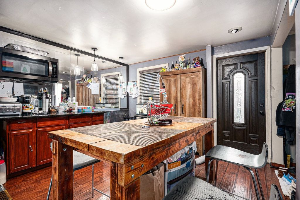 Explore the 3D tour of this beautifully updated 2-bedroom, 1-bath half duplex located in the highly desirable Boulevard Manor neighborhood. The bright, welcoming kitchen features stainless steel appliances, granite countertops, a large bay window, and stylish tilework. The adjoining dining room includes built-in cabinetry and a convenient bar area, offering excellent storage and an ideal setup for entertaining. The second level features two generously sized bedrooms and a full bathroom. Additional living space awaits in the fully finished basement, complete with ceramic tile flooring - perfect for a recreation room, home office, or workout area. Step outside to a meticulously maintained backyard with a new concrete patio, ideal for outdoor gatherings, play, or quiet relaxation. A 1.5-car garage provides easy parking, along with additional parking space, on the peaceful, tree-lined street. Recent updates include a newer Lennox HVAC system. This charming home delivers comfort, thoughtful updates, and an exceptional location.