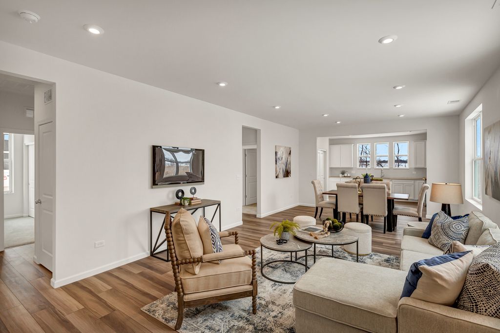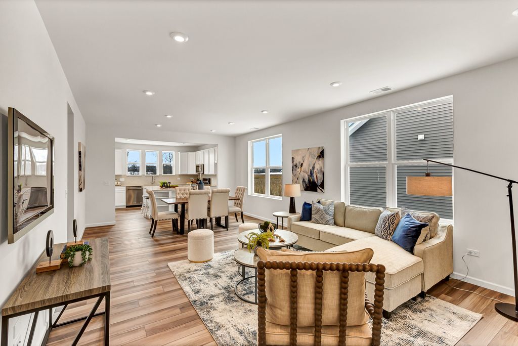 WELCOME TO BRIARGATE AN EXCITING AGE 55+ COMMUNITY IN LINDENHURST! Briargate offers easy living in a low-maintenance clubhouse community with access to walking trails and the local forest preserve. Golf courses, shopping and dining are all within a short drive. This Passport ranch features new home construction with a spacious open layout. Your great room, dining area and kitchen all flow together. Enjoy your morning coffee in the bright airy sunroom. Picture yourself preparing meals in your chef's kitchen with 42" white cabinets with soft close drawers and doors, SS appliances, and a large island with pendant lights. You have Quartz counters and a tile backsplash plus brushed nickel finishes. Your owner's suite is tucked away to provide the privacy you want and features a nice luxury bath with double bowl vanity and quartz counter tops and a large, tiled shower with glass doors. Both baths have comfort height vanities. Your laundry room is furnished with upper cabinets. You also have a 2-car garage with plenty of storage. Your flex room can be used as a home office or 3rd bedroom. We include an unmatched transferable warranty. Your fully sodded homesite is professionally landscaped. Homesite 1. Virtual tours are available, please call for link. MARCH CLOSE! Photos of similar home shown with some options and finishes not available at this price.