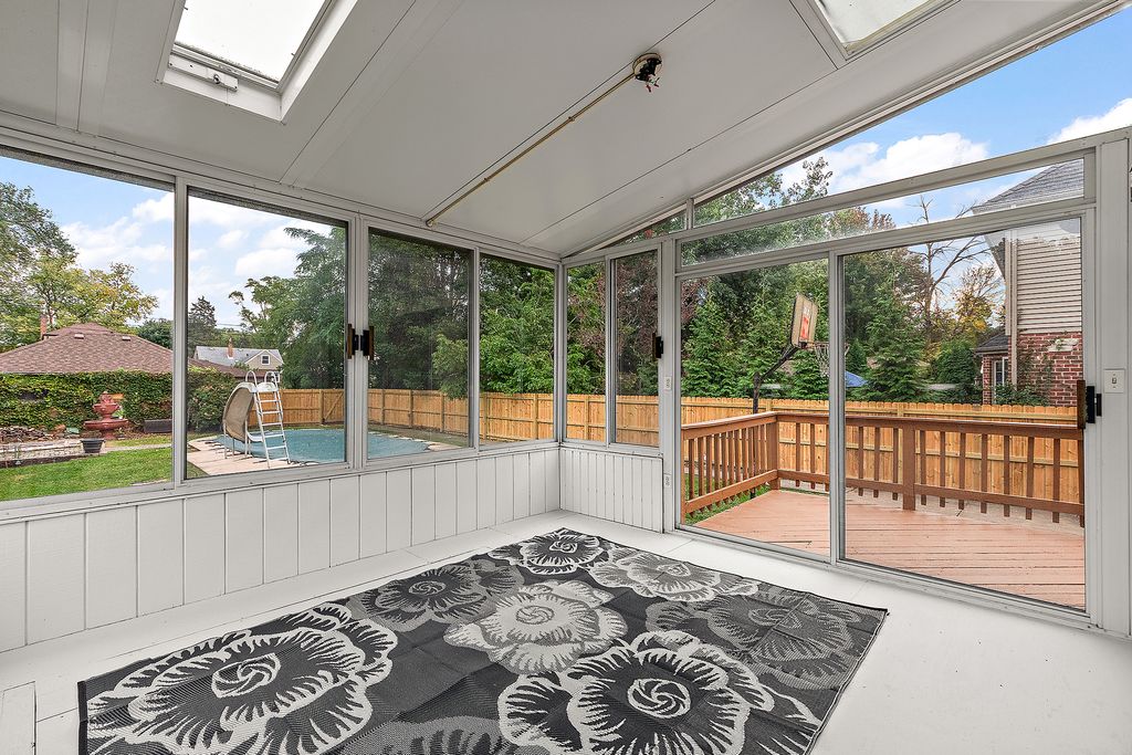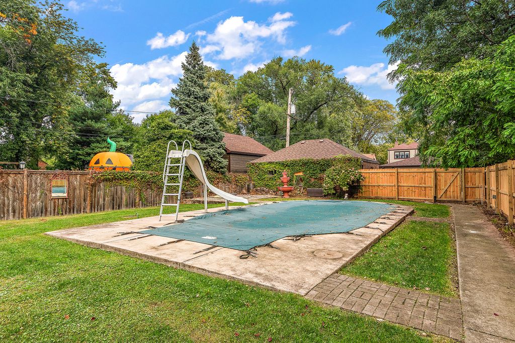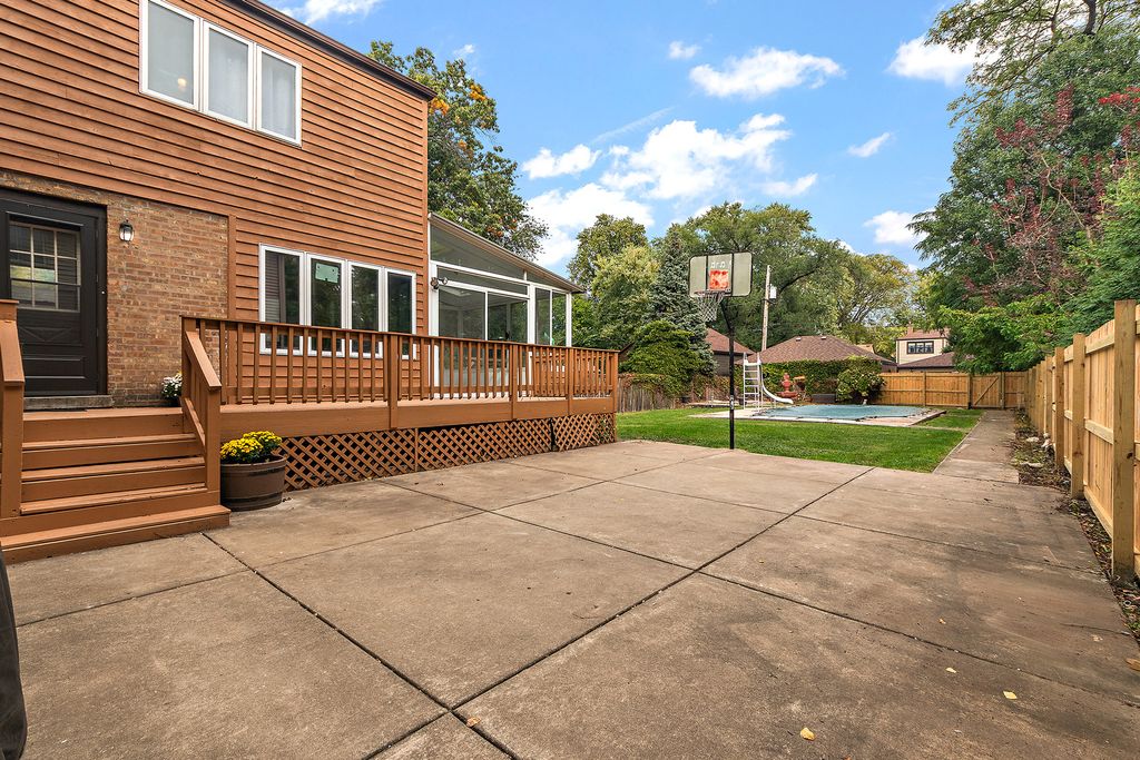 Welcome to this exceptional home nestled on a picturesque, tree-lined street in Oak Lawn's coveted Little Beverly neighborhood-known for its warm community feel and Blue Ribbon schools. This spacious residence offers 3-4 bedrooms and 2.5 baths, blending timeless character with modern comfort. The bright, expansive living room features a beautiful brick fireplace and gleaming hardwood floors that flow throughout the main and second levels. Enjoy a formal dining room and large eat-in kitchen ideal for family gatherings. The inviting family room opens to a sunroom, deck, and stunning backyard retreat. Work from home in your dedicated office, and enjoy the finished walk-out basement with recreation room and full bath. The impressive fenced yard includes two patios, a deck, basketball hoop, and sparkling in-ground pool-perfect for entertaining or relaxing. Additional highlights include a 3-car brick garage with two extra parking spaces. Prime location near Metra, parks, library, schools, hospital, downtown Oak Lawn's shops and restaurants, and easy access to I-294. Come view today-this could be your HOME!