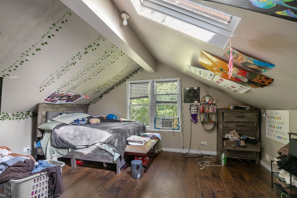 This beautiful bungalow features 4 generously sized bedrooms and 3 full bathrooms. Most rooms feature 10-foot ceilings, rich hardwood flooring, and elegant 6-inch trim. The central living room invites cozy evenings with its charming brick wood-burning fireplace, exposed wood beams, and matching hardwood floors. Love to cook? The sun-filled kitchen offers plenty of natural light-perfect for creating and entertaining. There's 3 bedrooms plus an office and 2 full bathrooms on the first floor and upstairs, there's a loft, 5th bedroom and bathroom. Step outside to relax on the welcoming front deck, or host gatherings on the spacious rear patio, crafted with flagstone and concrete, and enclosed by a privacy fence. Additional highlights include a 2+ car garage and.4 acres- all just down the street from the serene lakefront! Sold As-Is.