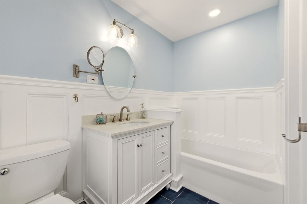 Amazingly spacious Cape Cod set on a 1/3-acre lot in a coveted walk-to location for Oak Elementary, HMS, and Hinsdale Central. A large, light-filled foyer offers a warm welcome for guests. The beautiful living room features a sunny picture window and flows seamlessly into the gracious dining room-perfect for entertaining. The refreshed kitchen boasts extended counters, added cabinetry, updated stainless steel appliances, decorative backsplash, cutting-board countertops, and a breakfast island. A cozy hearth room with brick fireplace opens through sliding doors to the backyard deck, creating an inviting space for everyday living. The refreshed primary suite includes a stunning modern bath with a gorgeous aqua-tiled shower and separate soaking tub. Four additional oversized bedrooms with hardwood flooring-some accented by charming dormers-share a brand-new hall bath with fresh tile, updated fixtures, and vanity. The newer finished basement provides flexible play and recreation space. Additional highlights include a two-car attached garage, wood deck for summer enjoyment, and low taxes while enjoying all Hinsdale amenities. A truly wonderful home for any family.