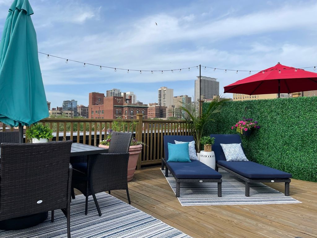 Situated on tree-lined Oakdale Avenue in East Lakeview, this top-floor 3-bedroom, 2-bathroom condo truly has it all: elevator access, 2 private outdoor areas with 2,000 square feet of indoor and outdoor space (including a rooftop terrace!), garage parking, and incredible all-day natural light thanks to southern exposure and oversized windows throughout. Upon entering, you're immediately greeted by tall ceilings, gleaming hardwood floors, and elegant crown molding. The open-concept layout flows seamlessly into the updated kitchen, featuring quartz countertops, stainless steel appliances, a large center island, and timeless white cabinetry. A window over the sink fills the space with beautiful natural light, while the adjacent dining area is perfectly positioned for both casual meals and effortless entertaining. The living room is a standout with its extra-wide footprint, cozy fireplace, and charming views overlooking Oakdale. Versatile and inviting, it offers endless options for furniture layout and everyday living. All 3 bedrooms are generously sized, including a serene primary suite with a walk-in closet and spa-like bath complete with dual vanity, soaking tub, and glass-enclosed shower. A private balcony off the primary is an ideal spot for morning coffee or an evening glass of wine. The 2nd full bathroom is equally polished, featuring a marble-topped vanity and luxe fixtures. The private rooftop terrace is the crown jewel, offering panoramic views and a peaceful outdoor retreat perfect for relaxing or entertaining. As for the location, it is simply unbeatable. You're just down the block from Mariano's, Starbucks, the lakefront, and the shops and restaurants along Broadway and Clark, with Nettelhorst Elementary and the Wellington CTA stop just minutes away. This home checks every box. Stay awhile!